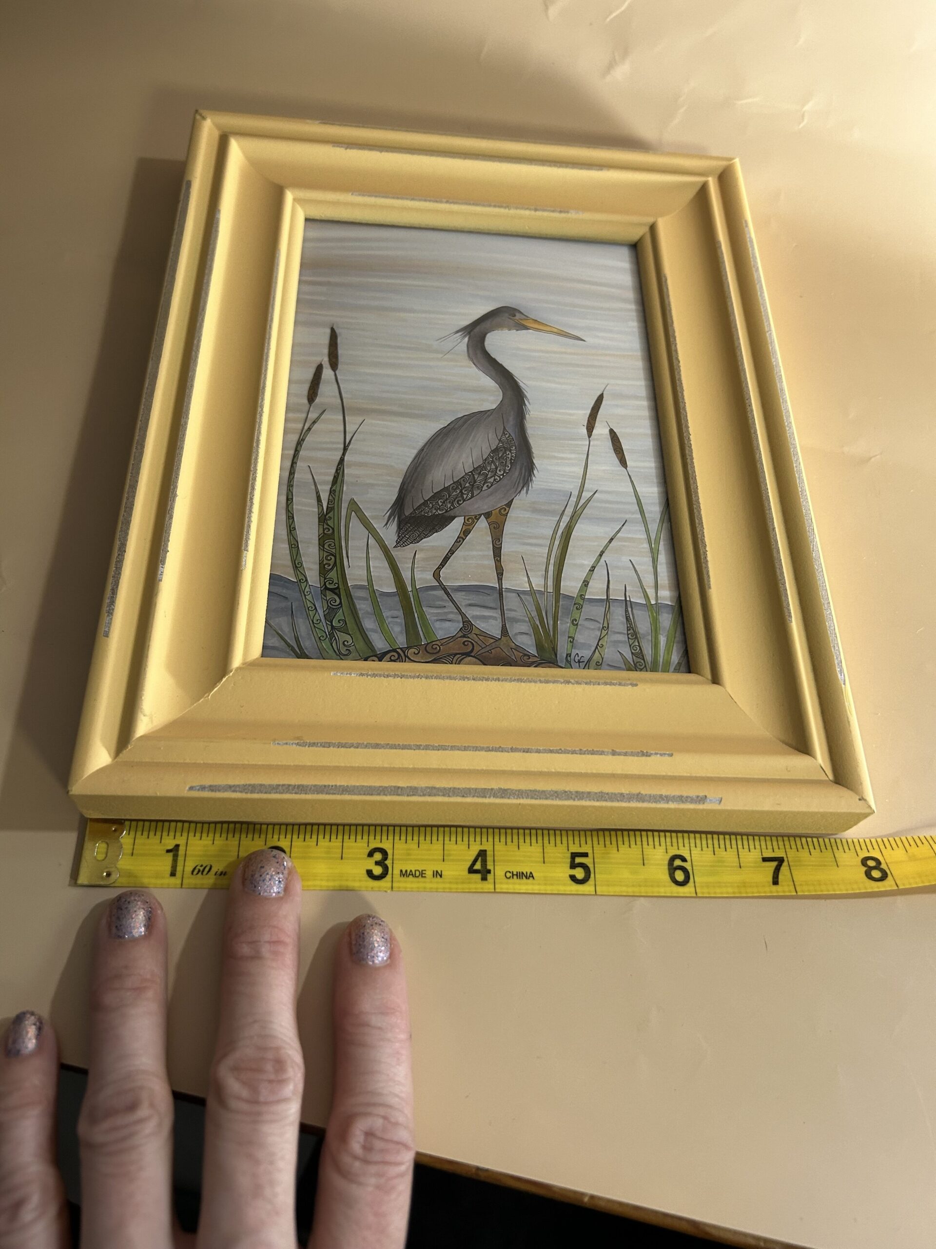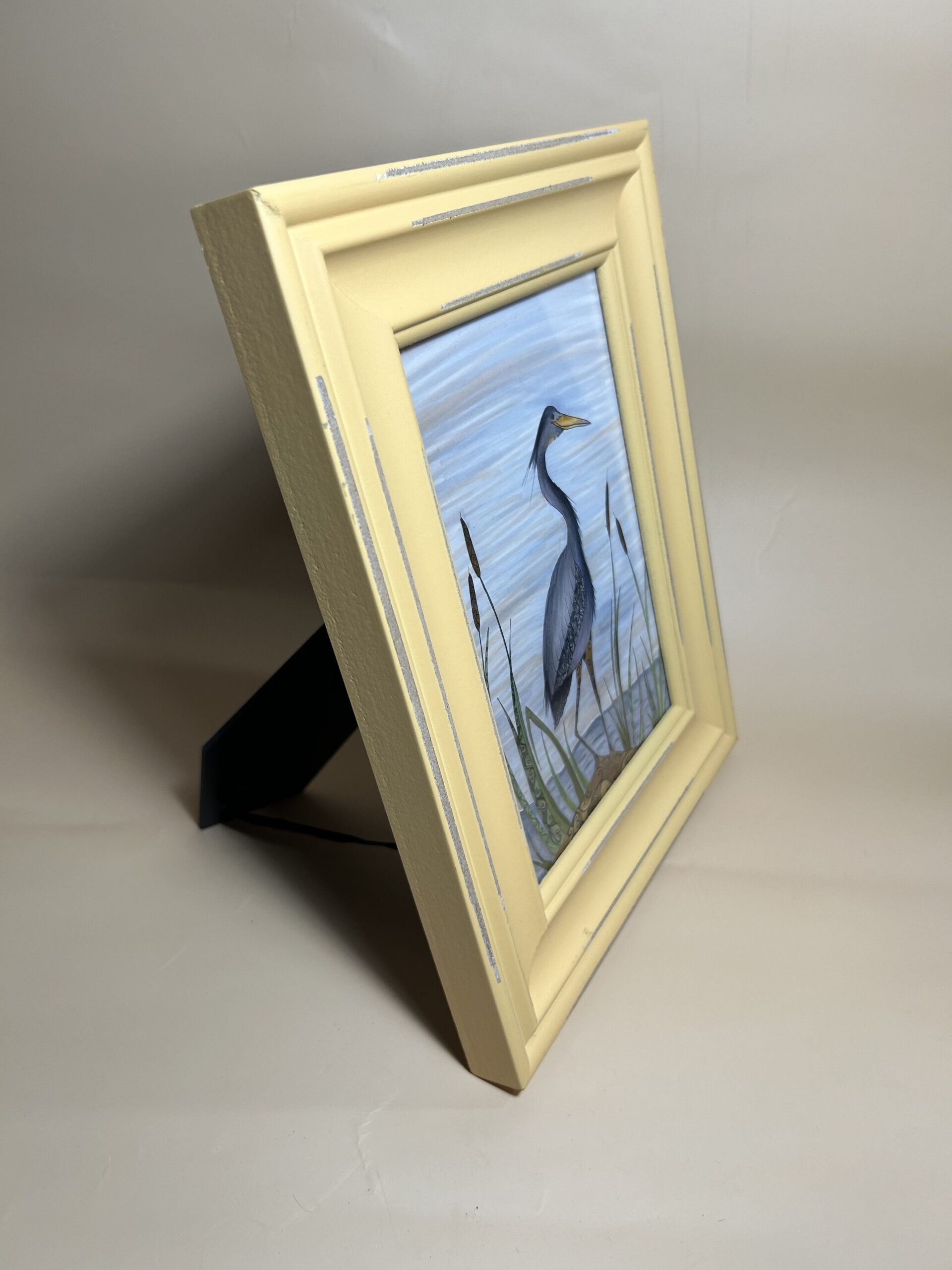 5×7 Art Print, Blue Heron with 8×10 yellow frame