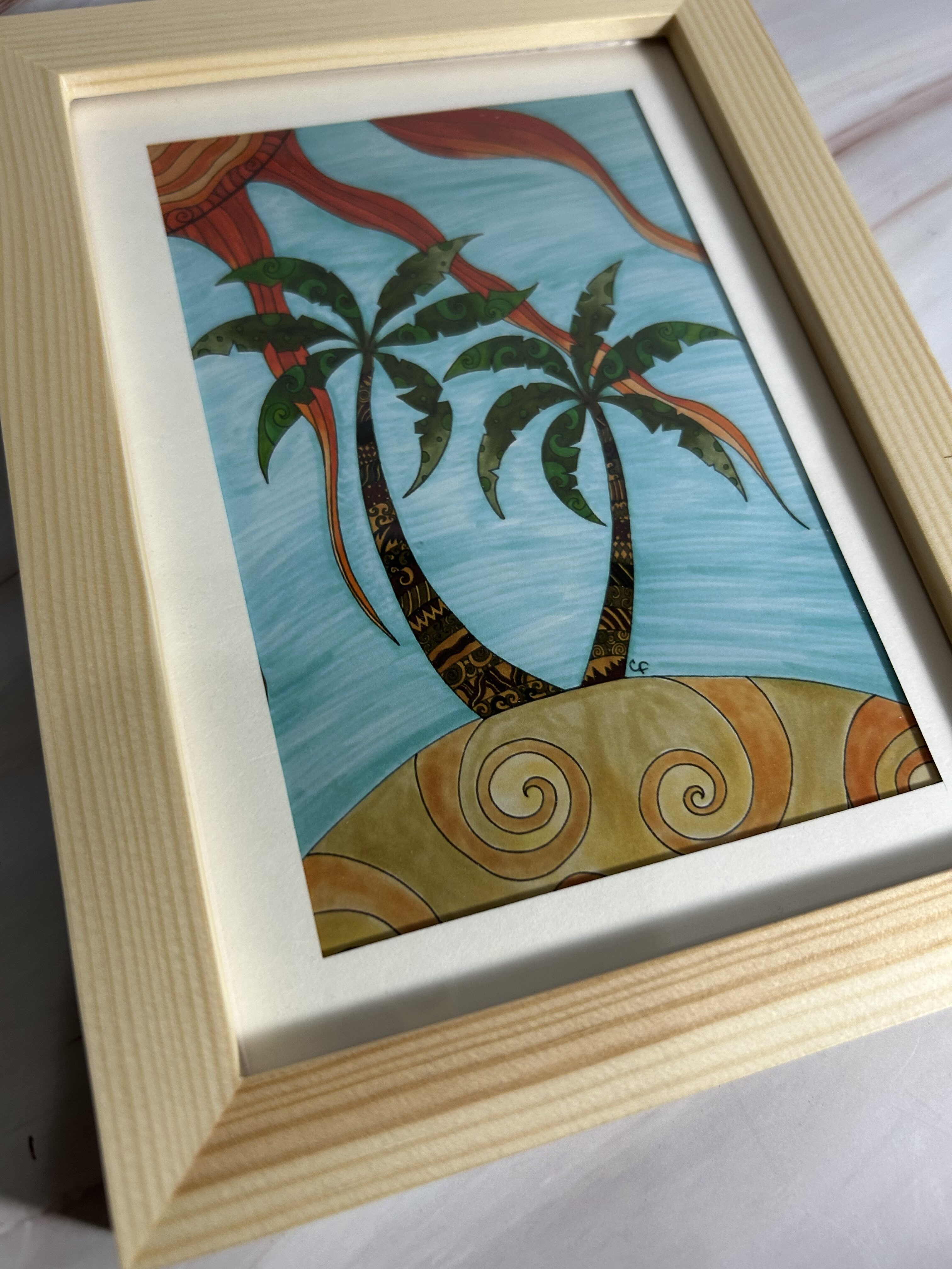 Artwork measures 5″ x 7″ frame measurements are 6″ x 8″