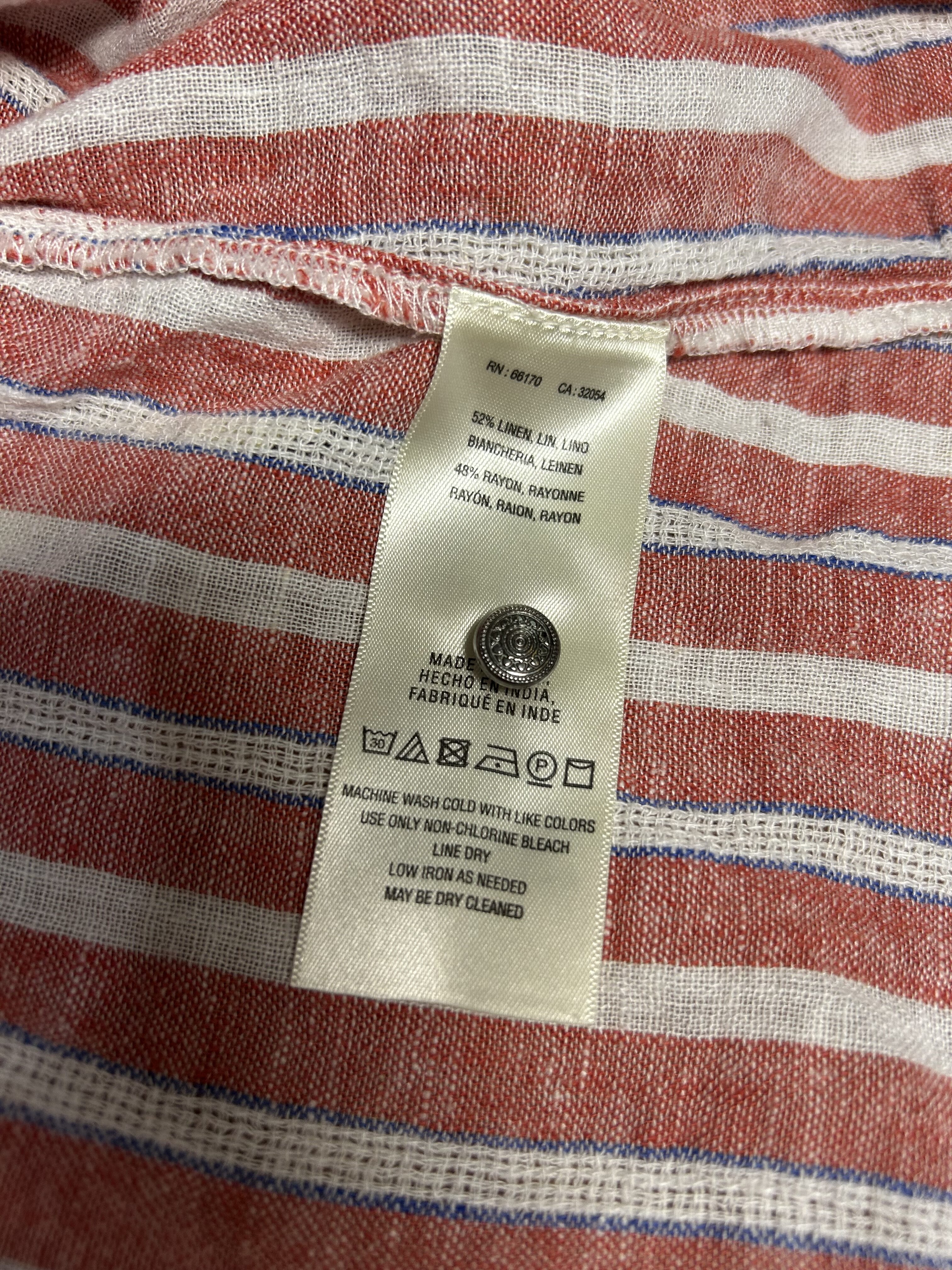 Linen/Rayon blend. Excellent pre owned condition. Please see all photos.