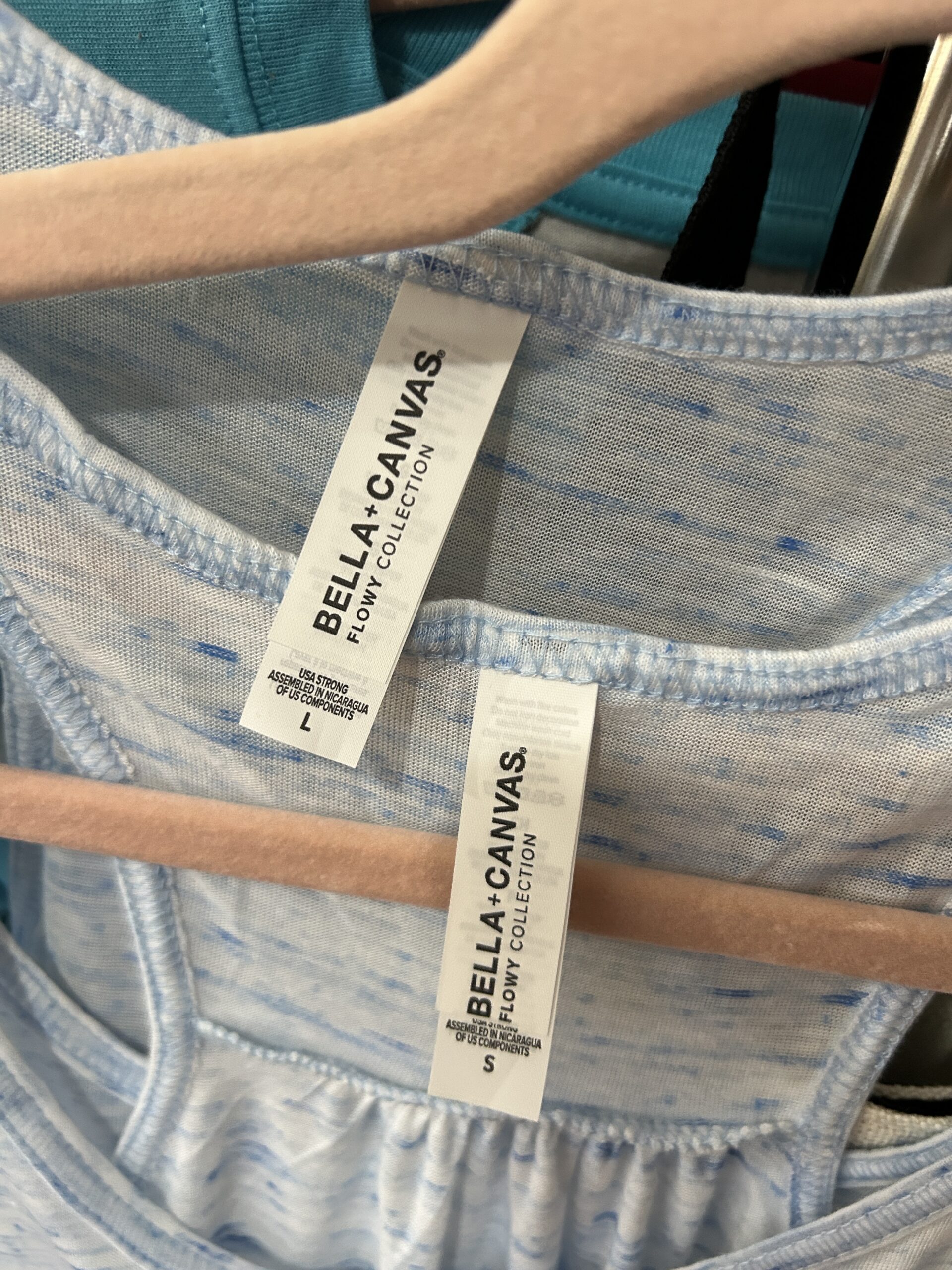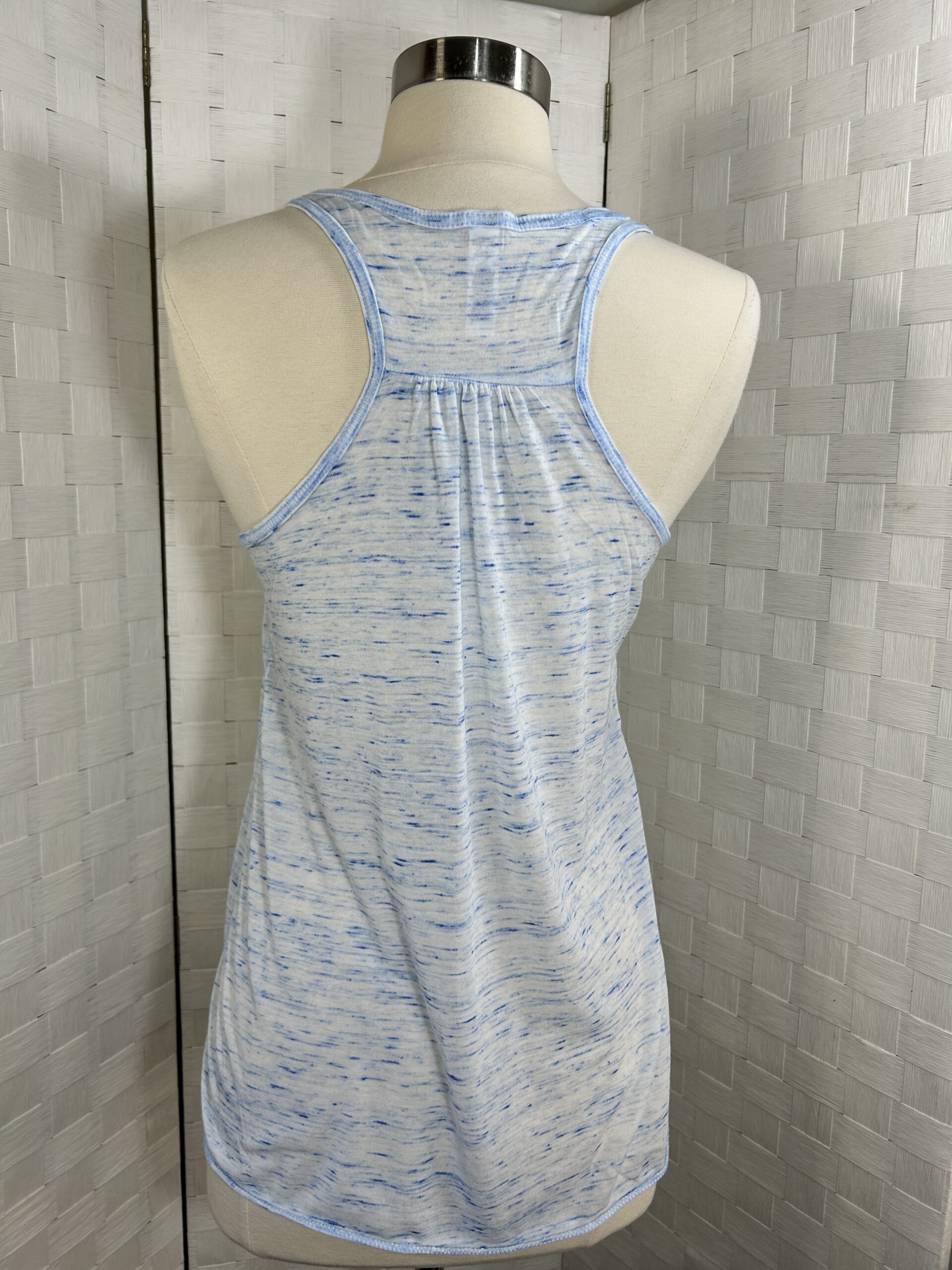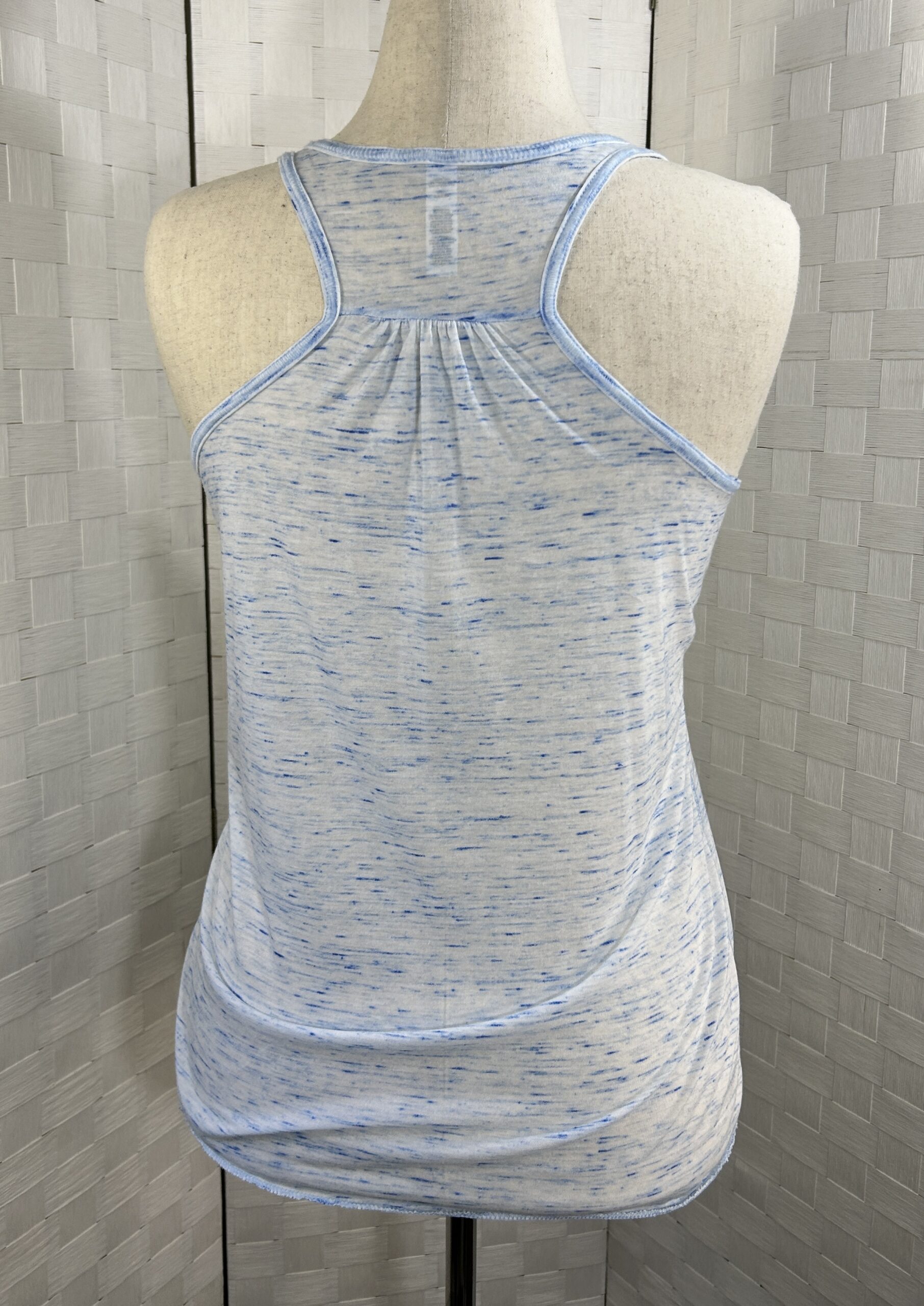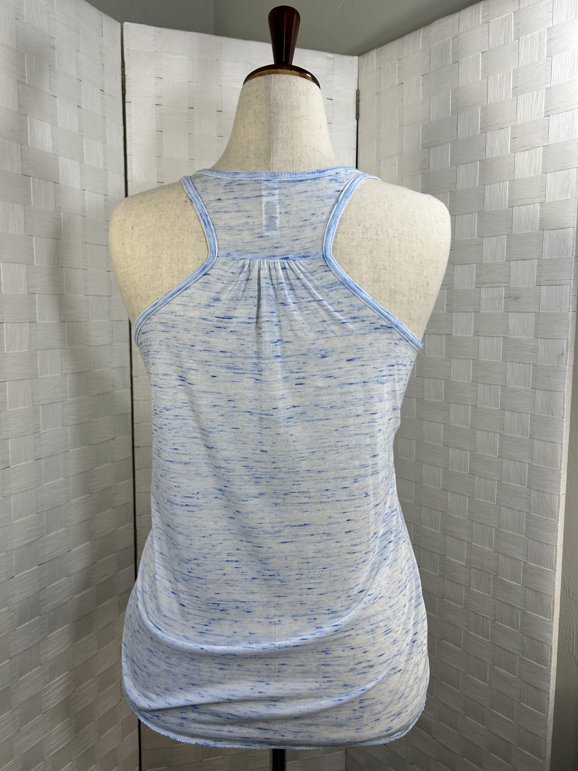 Bella Canvas Flowy racerback tank top- marbled blue and white color with a sublimation print made with my original artwork/design “Easily Distracted by Cats”