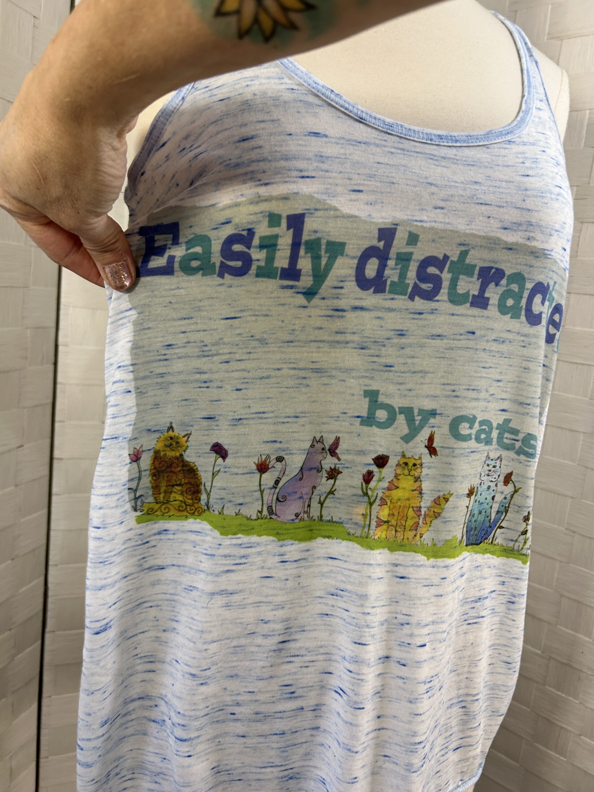 Bella Canvas Flowy tank top “Easily distracted by cats” (S,L)