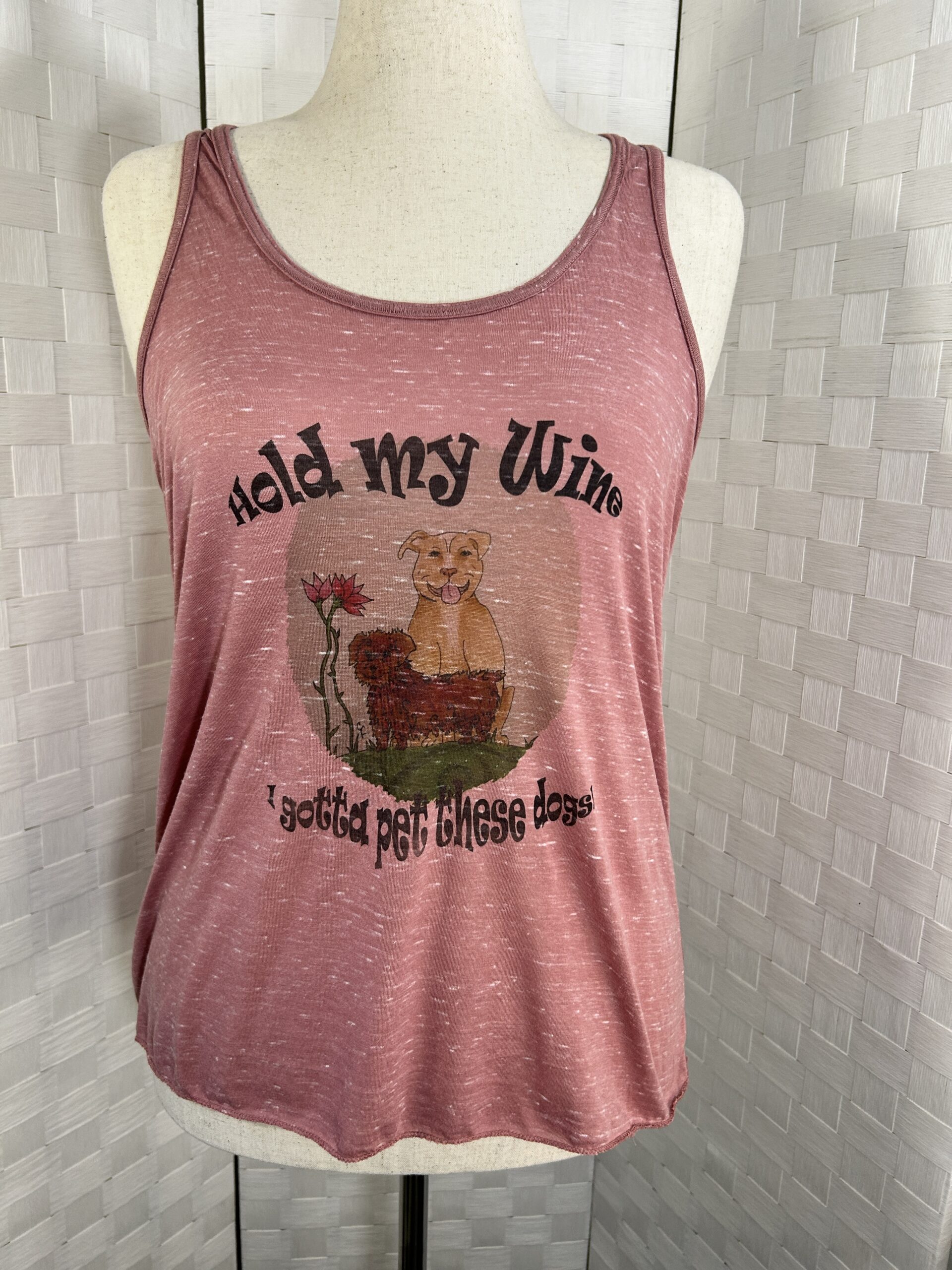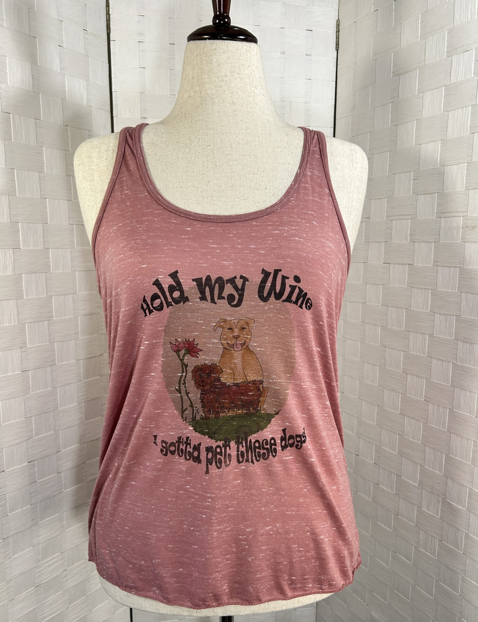 Bella Canvas Flowy tank top “Hold my Wine I gotta pet these dogs” (M,L,XXL)