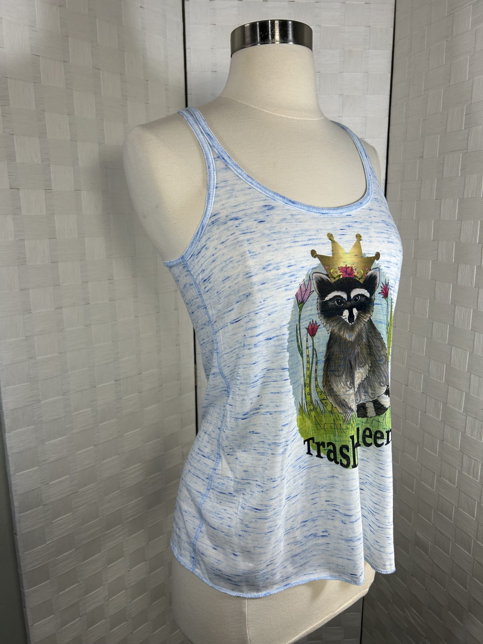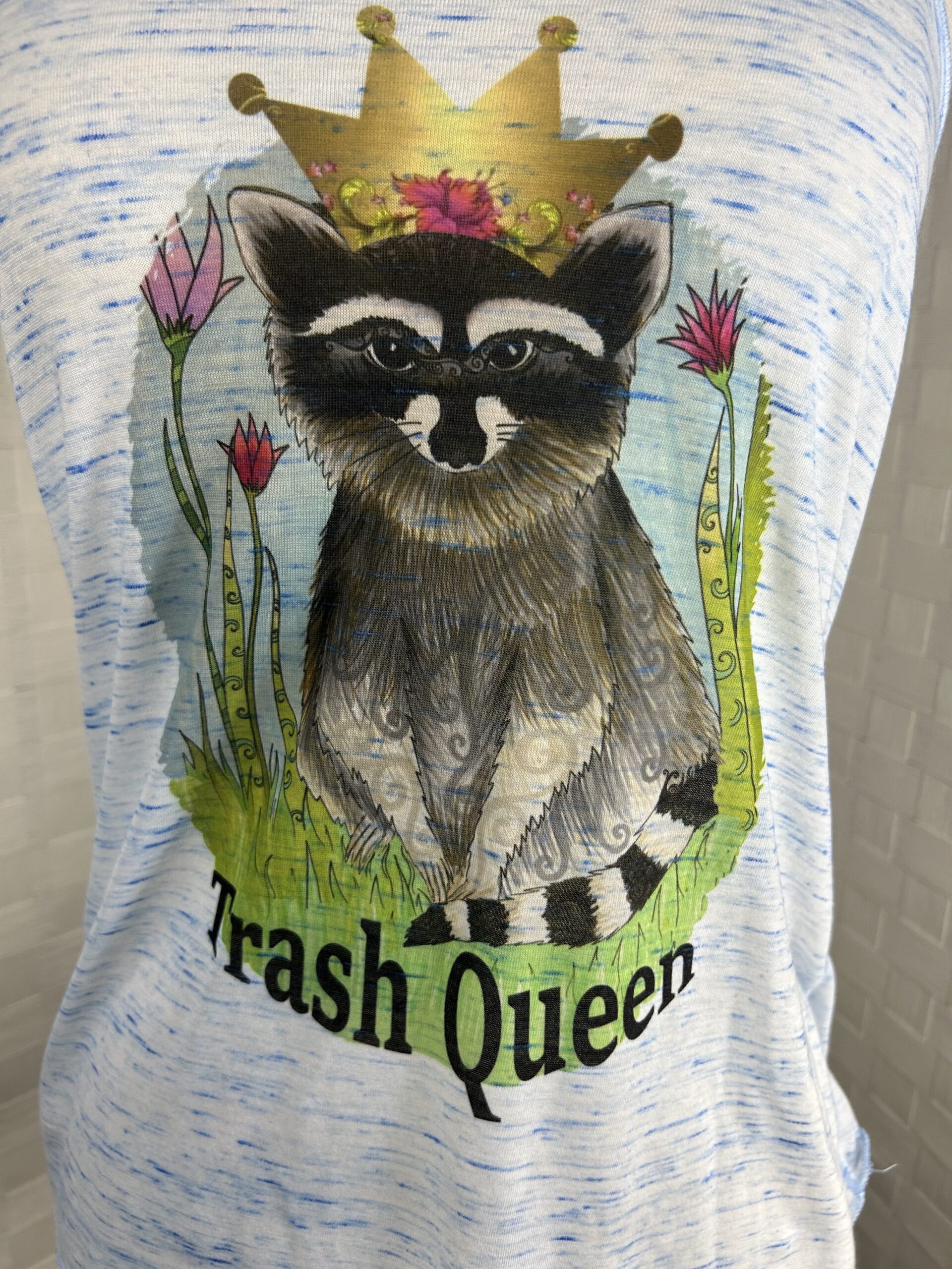 Raccoon print tank top. “Trash Queen”