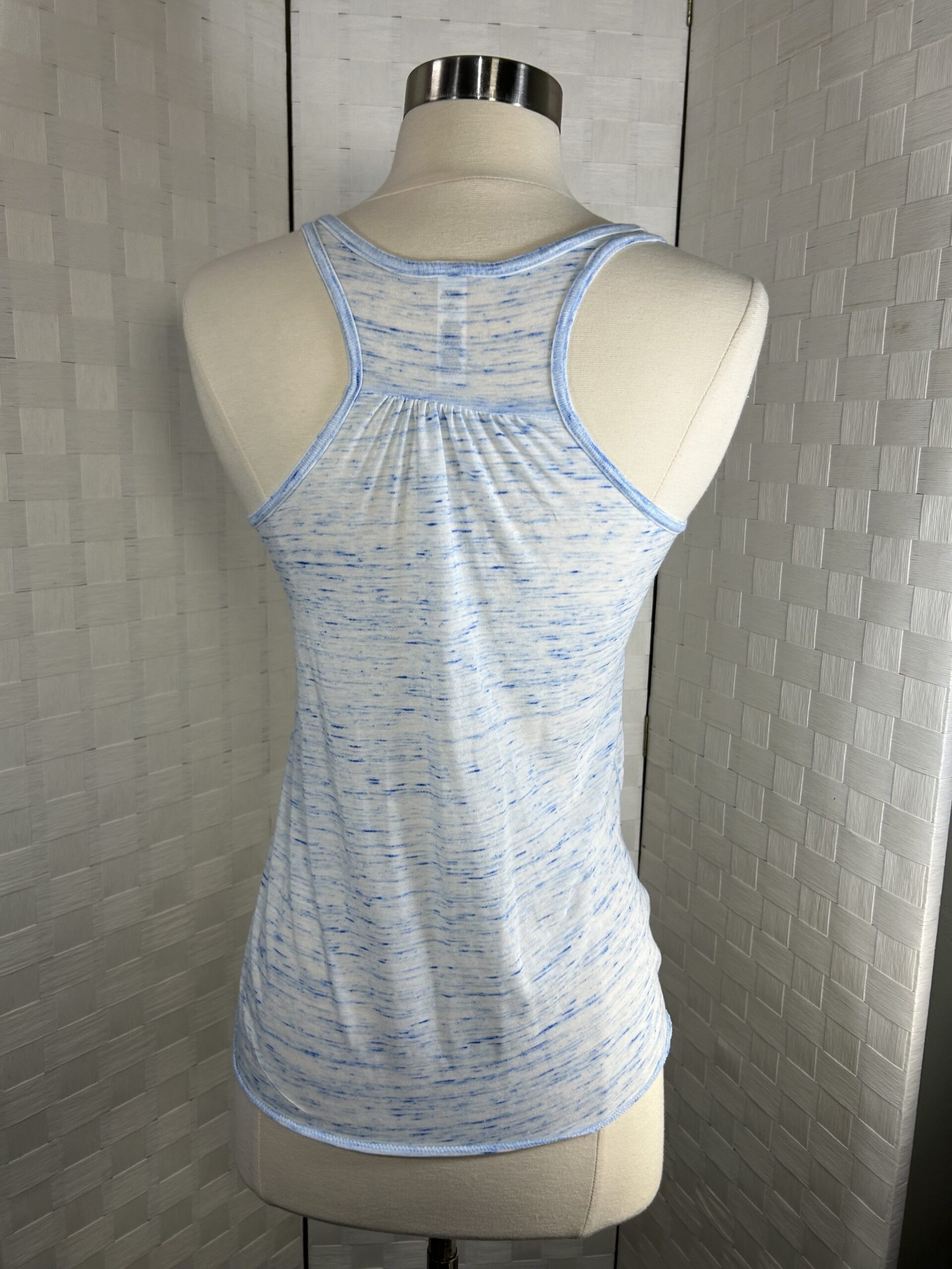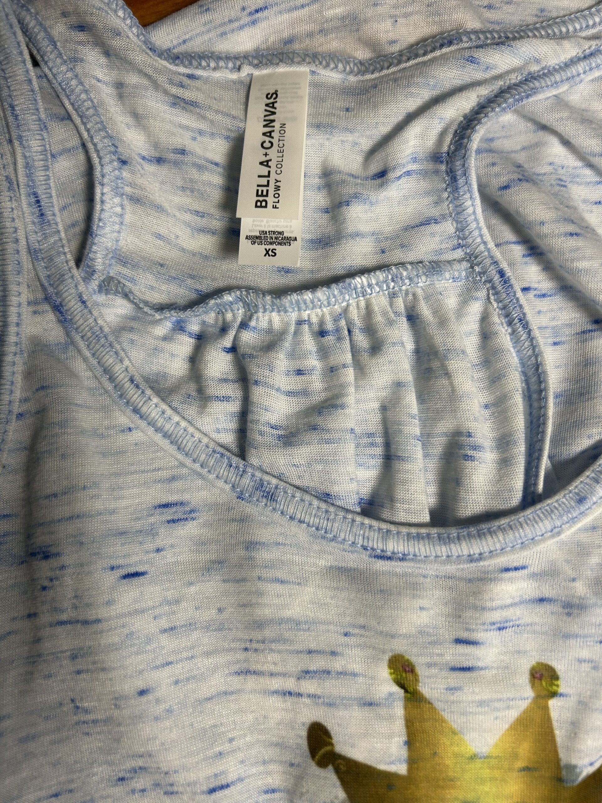 White/blue Bella Canvas flowy style racer back
