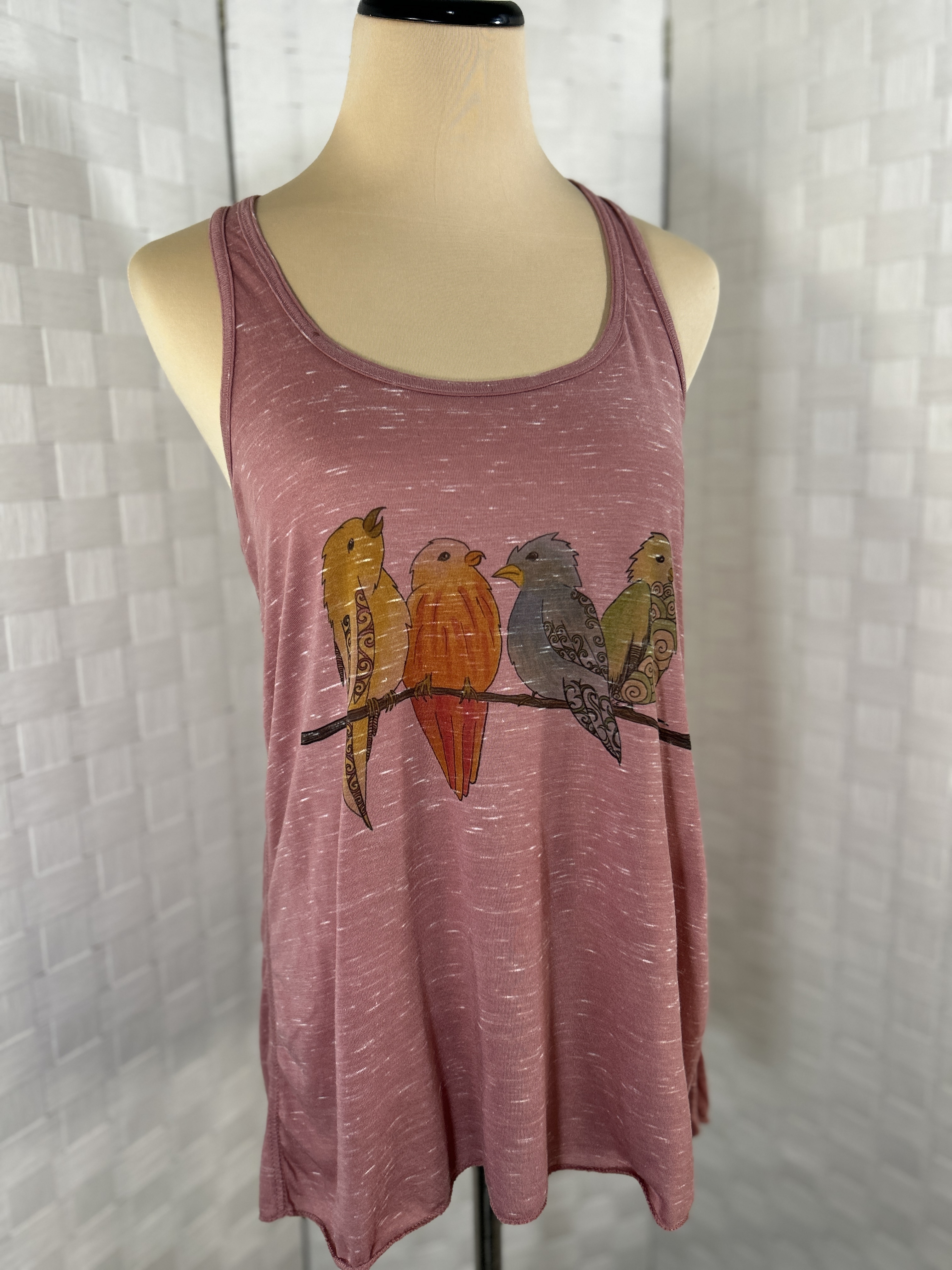 Birds on a branch Bella Canvas flowy racer back tank top (M)