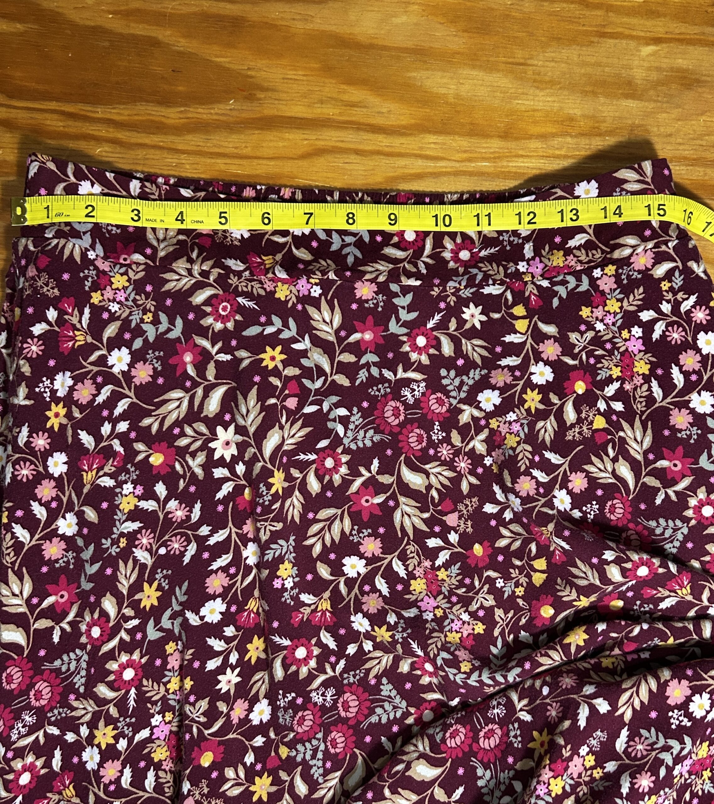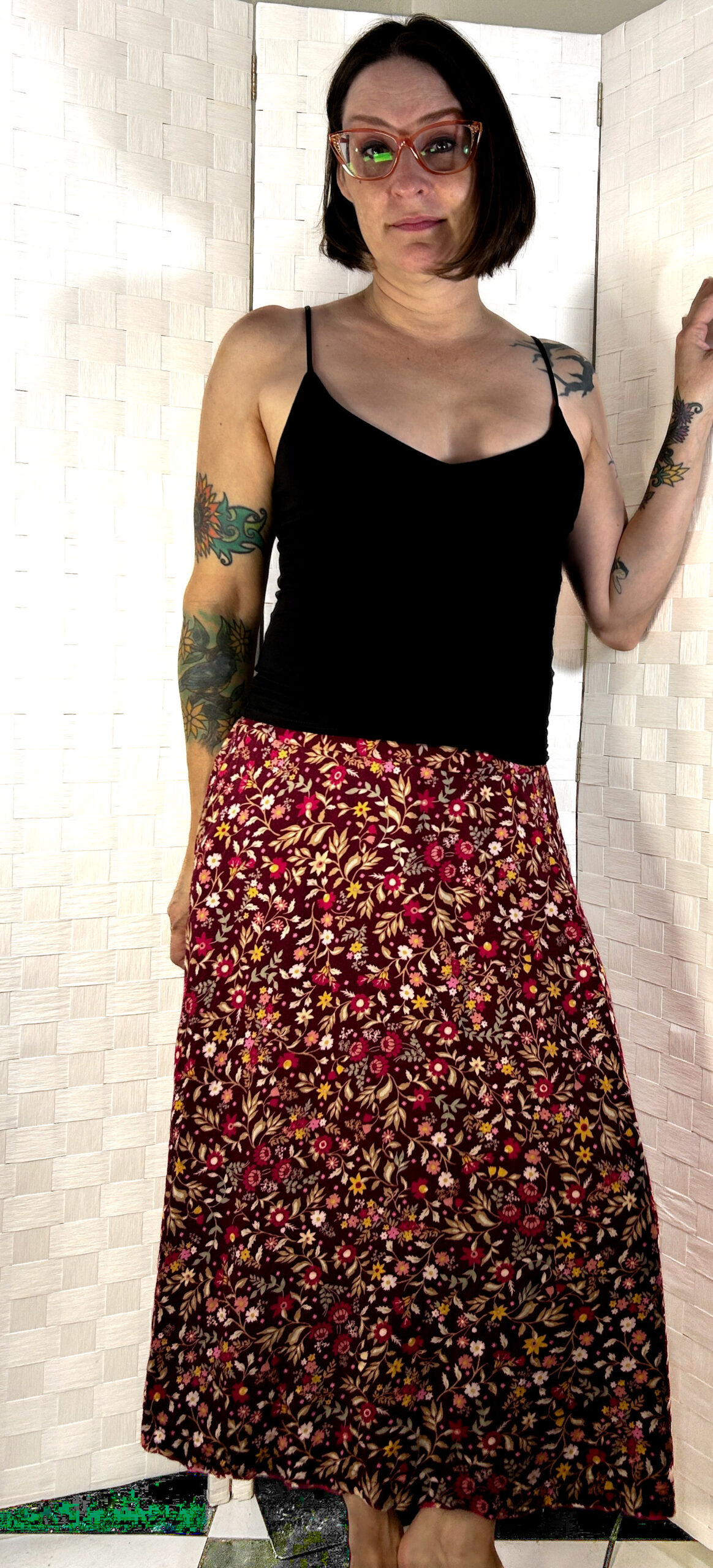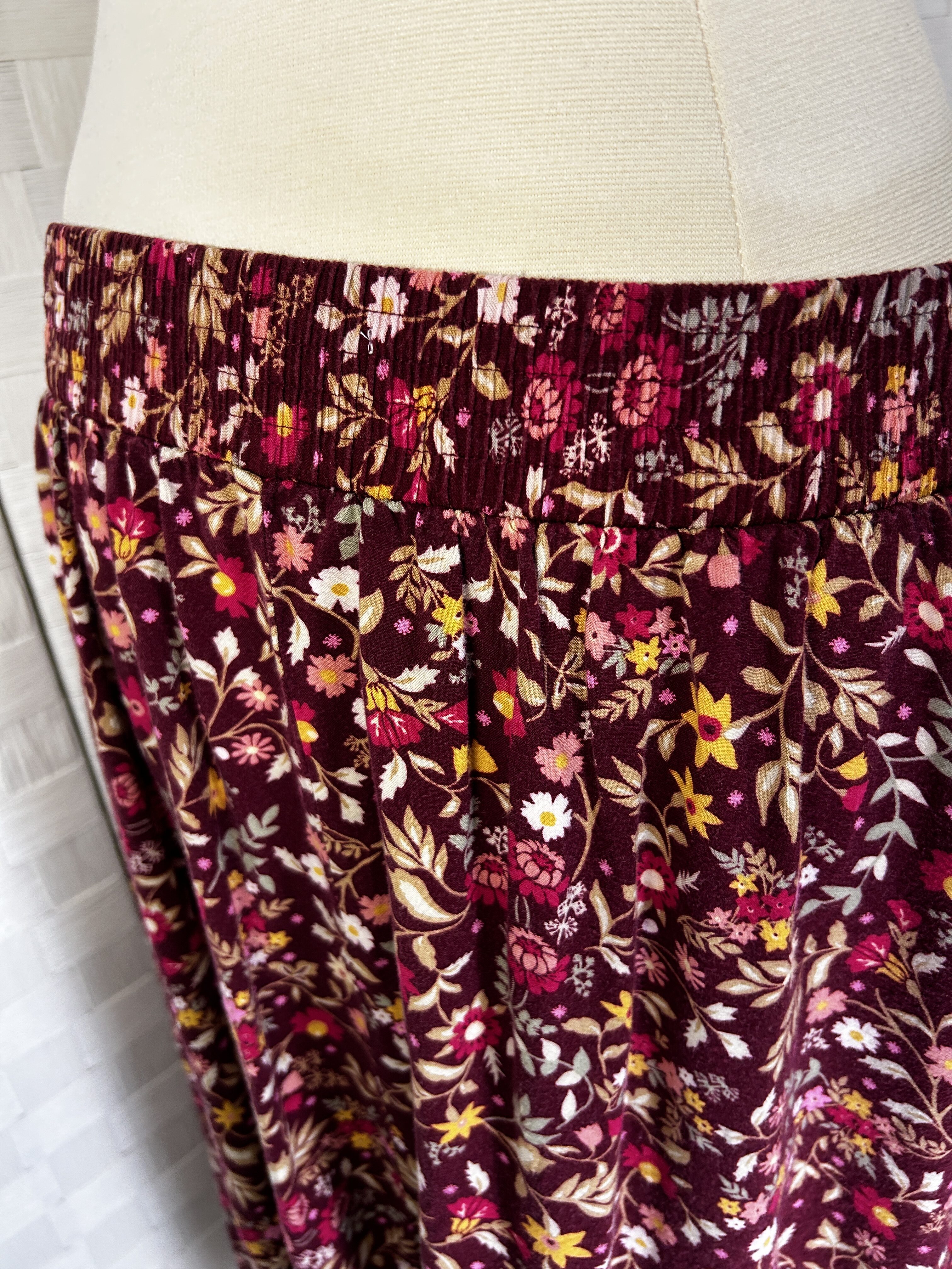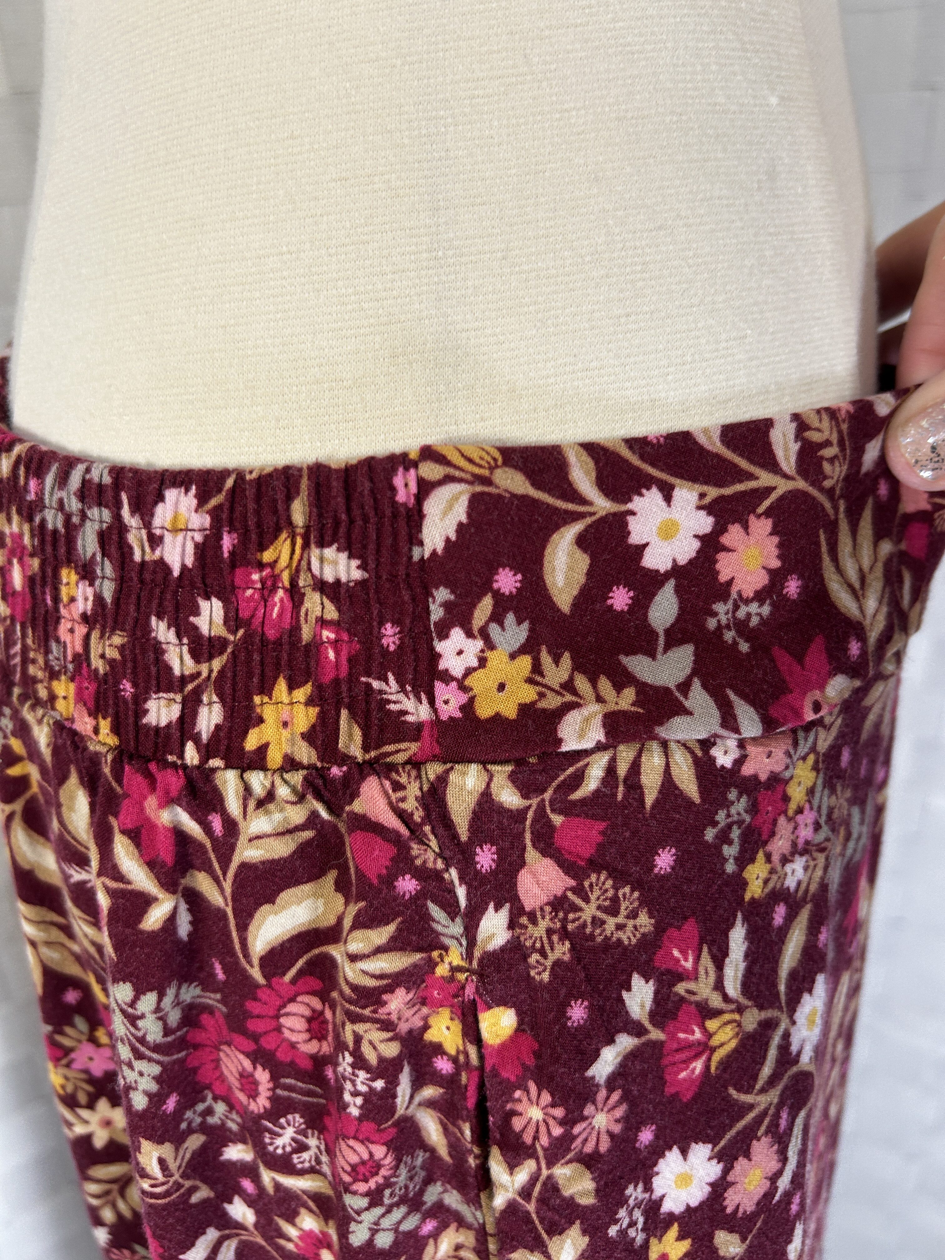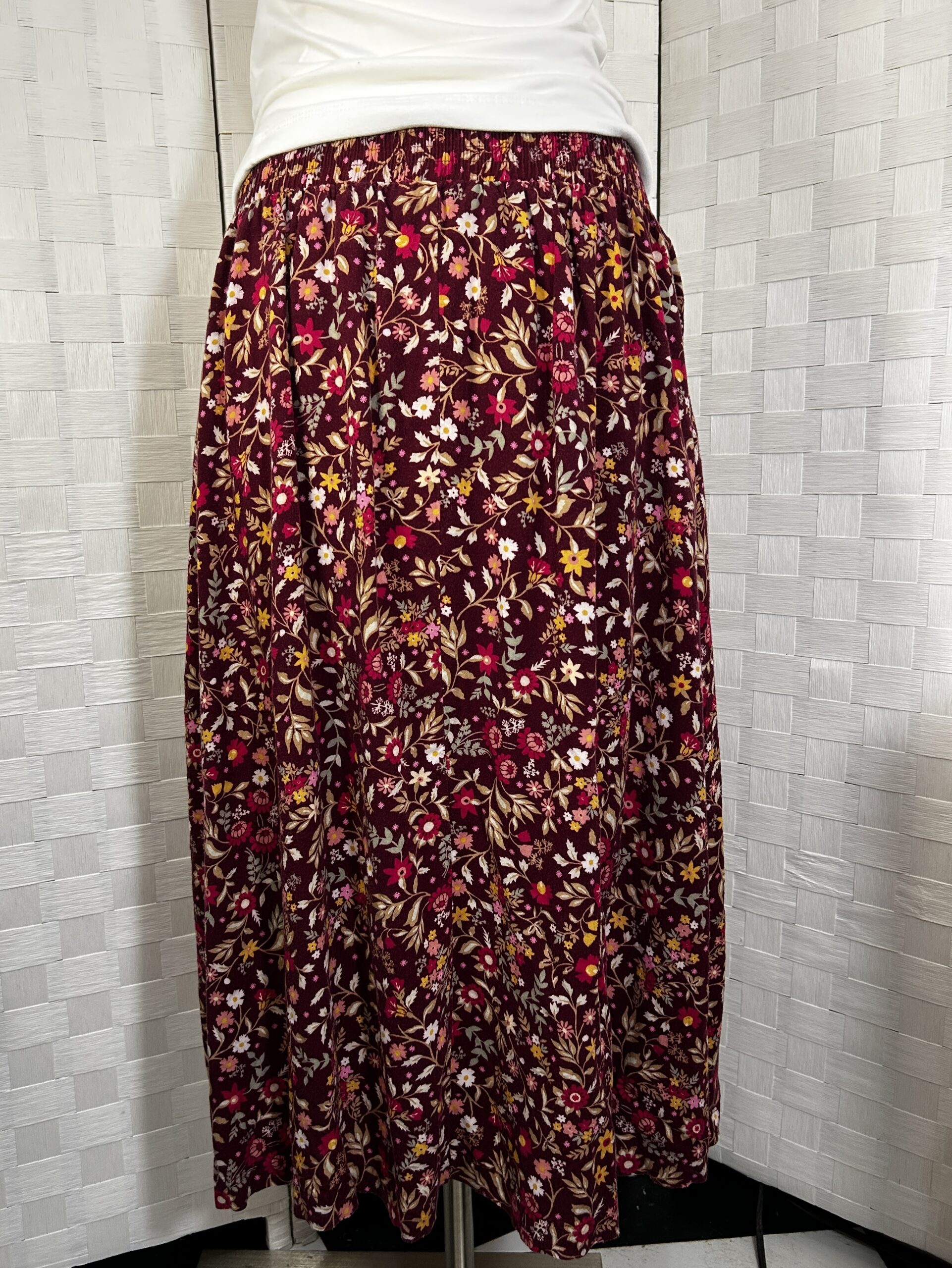 Maroon skirt with pink, white and yellow floral pattern, and it Has POCKETS!!