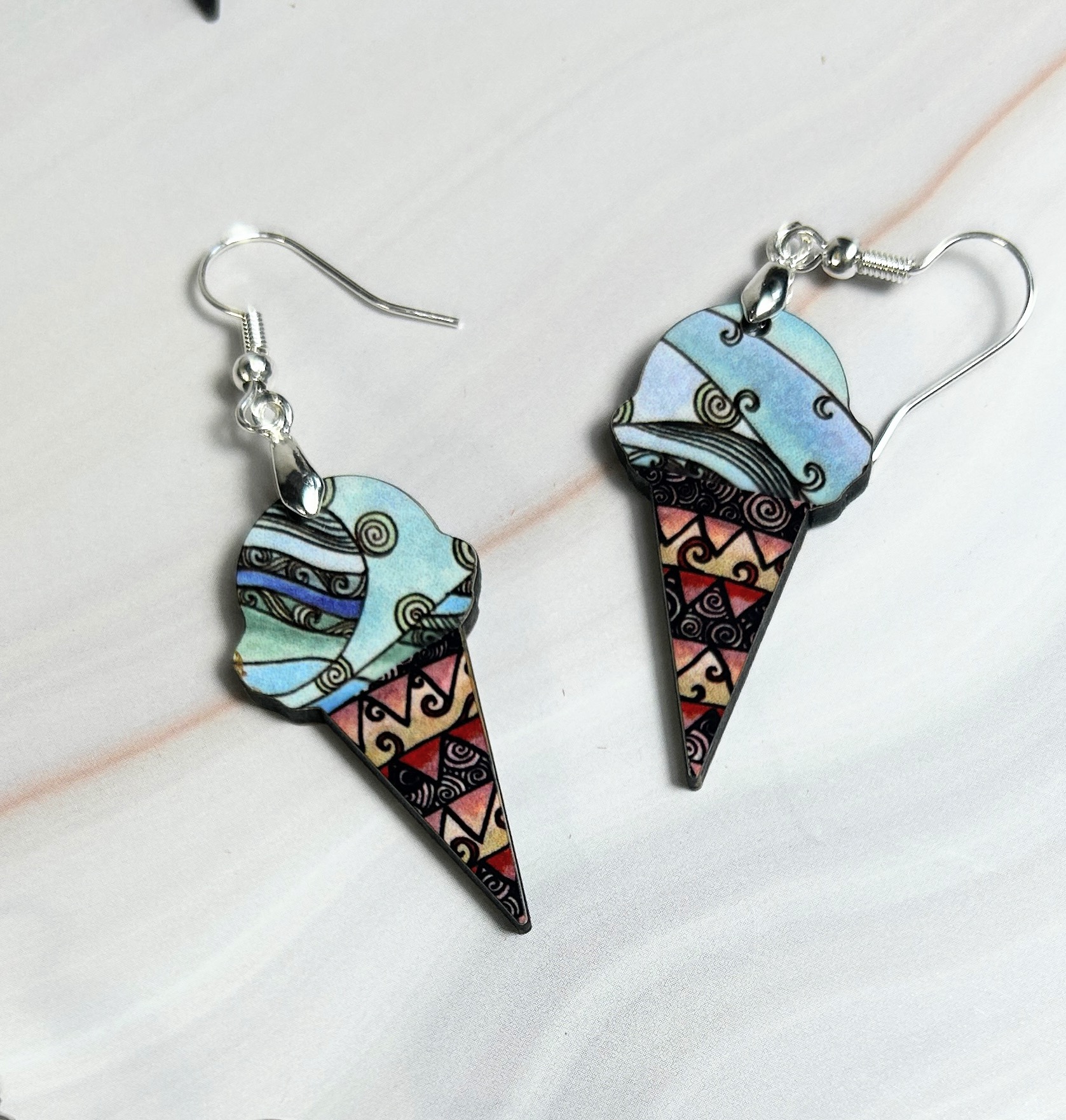 Earrings Ice cream cones, blue