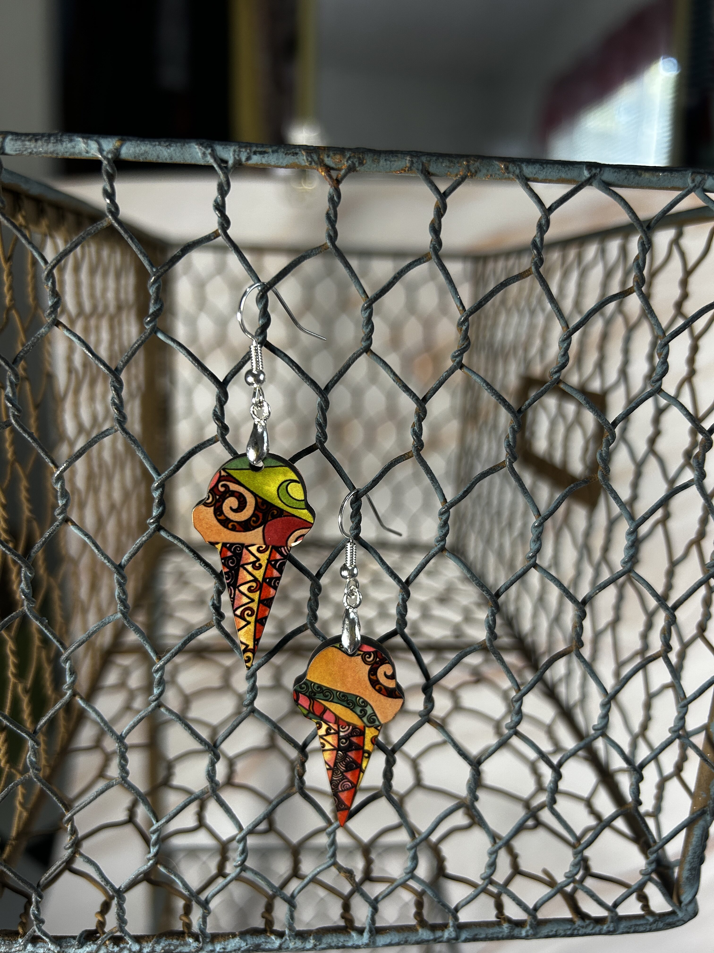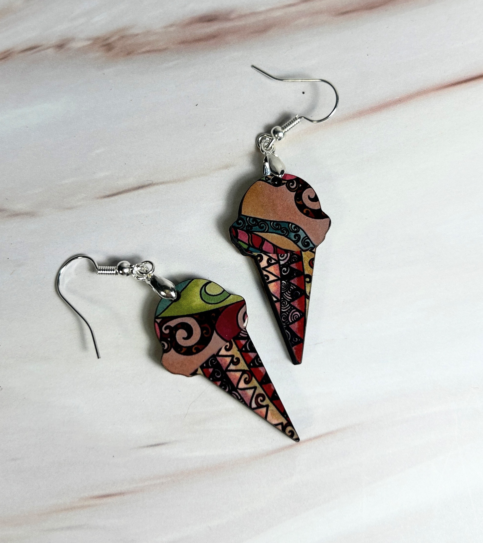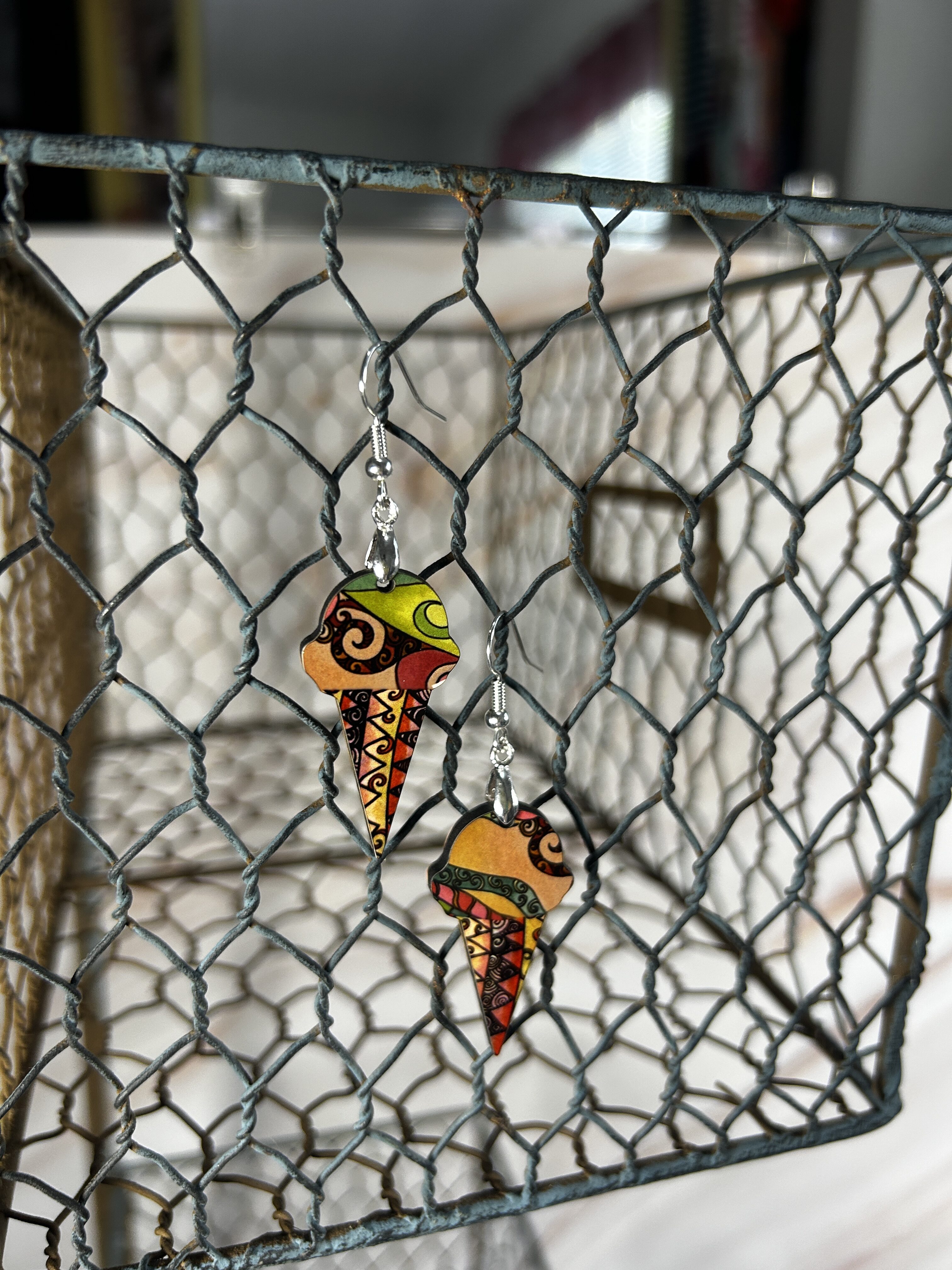 Earrings Ice cream cones, tan and green