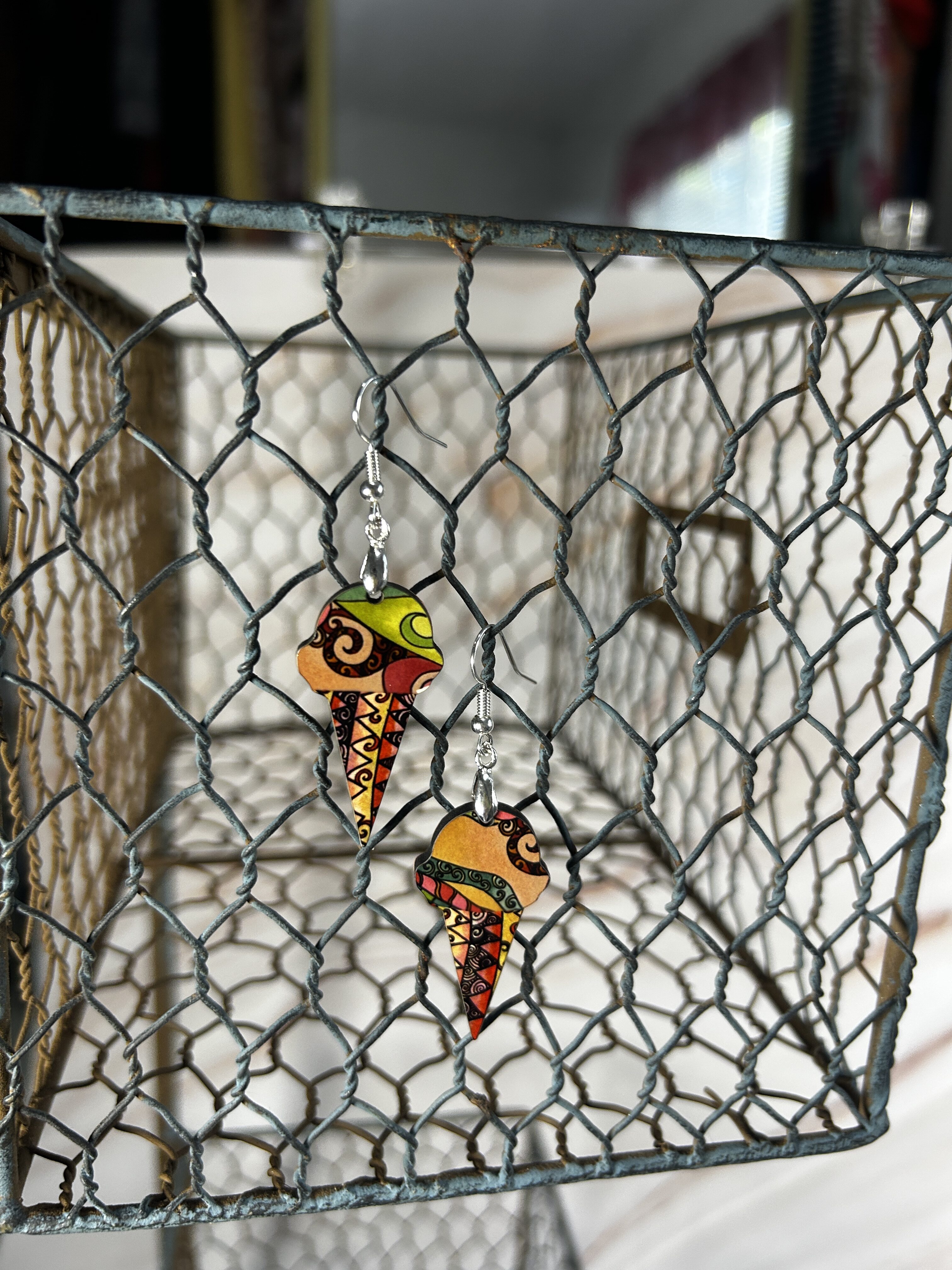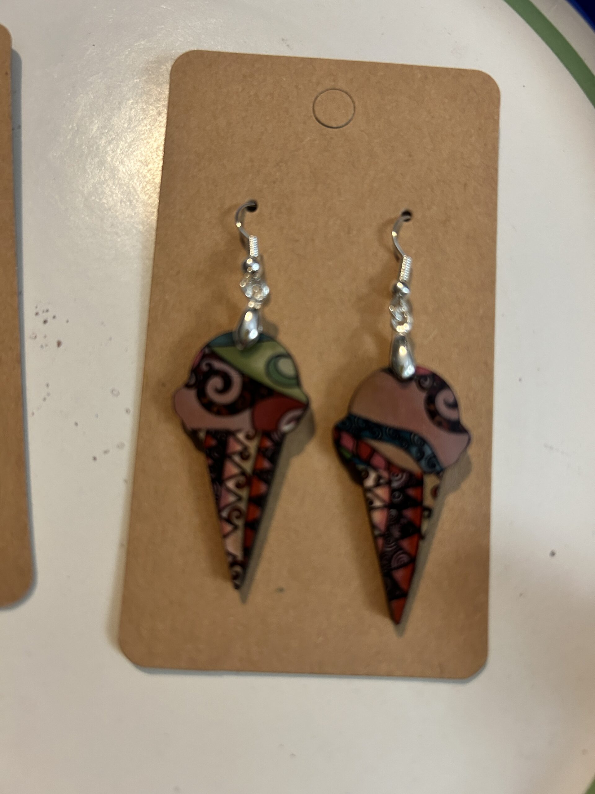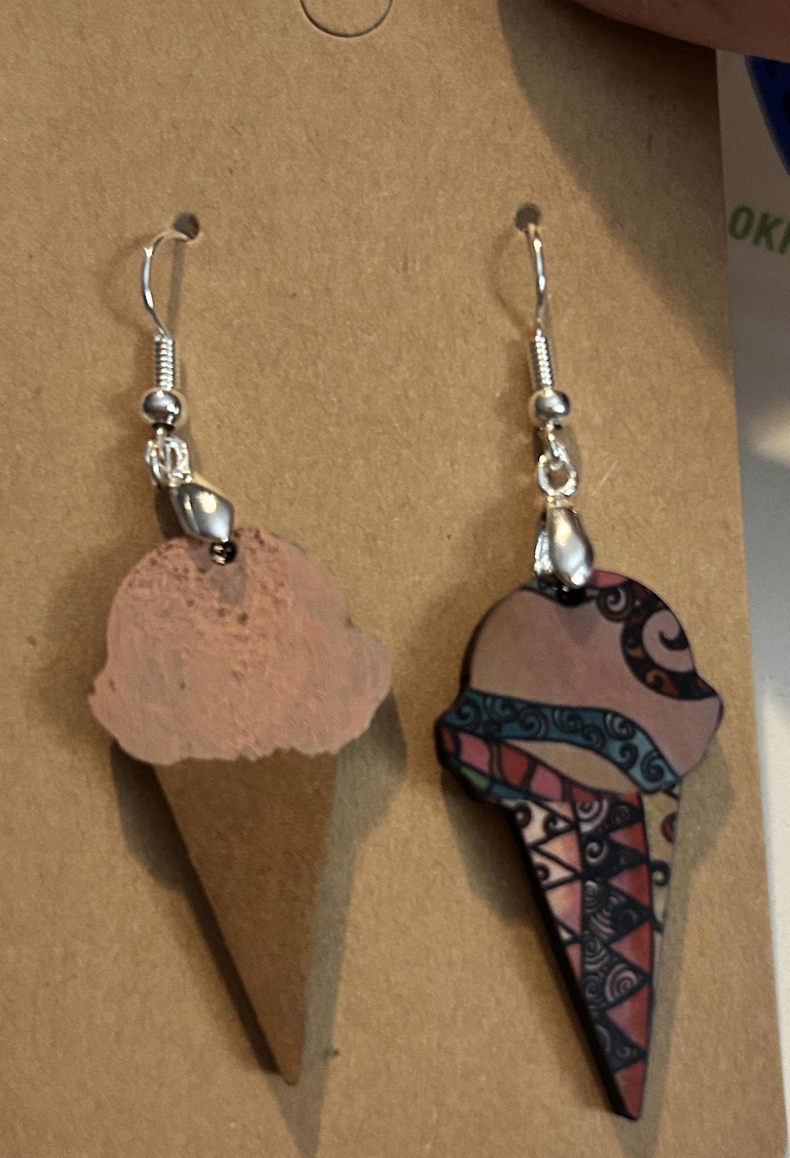 Earrings Ice cream cones, tan, and green