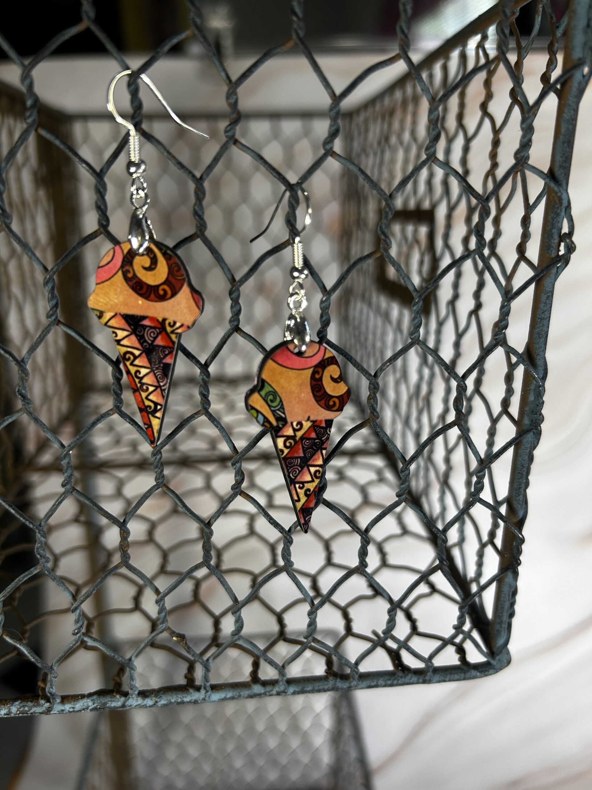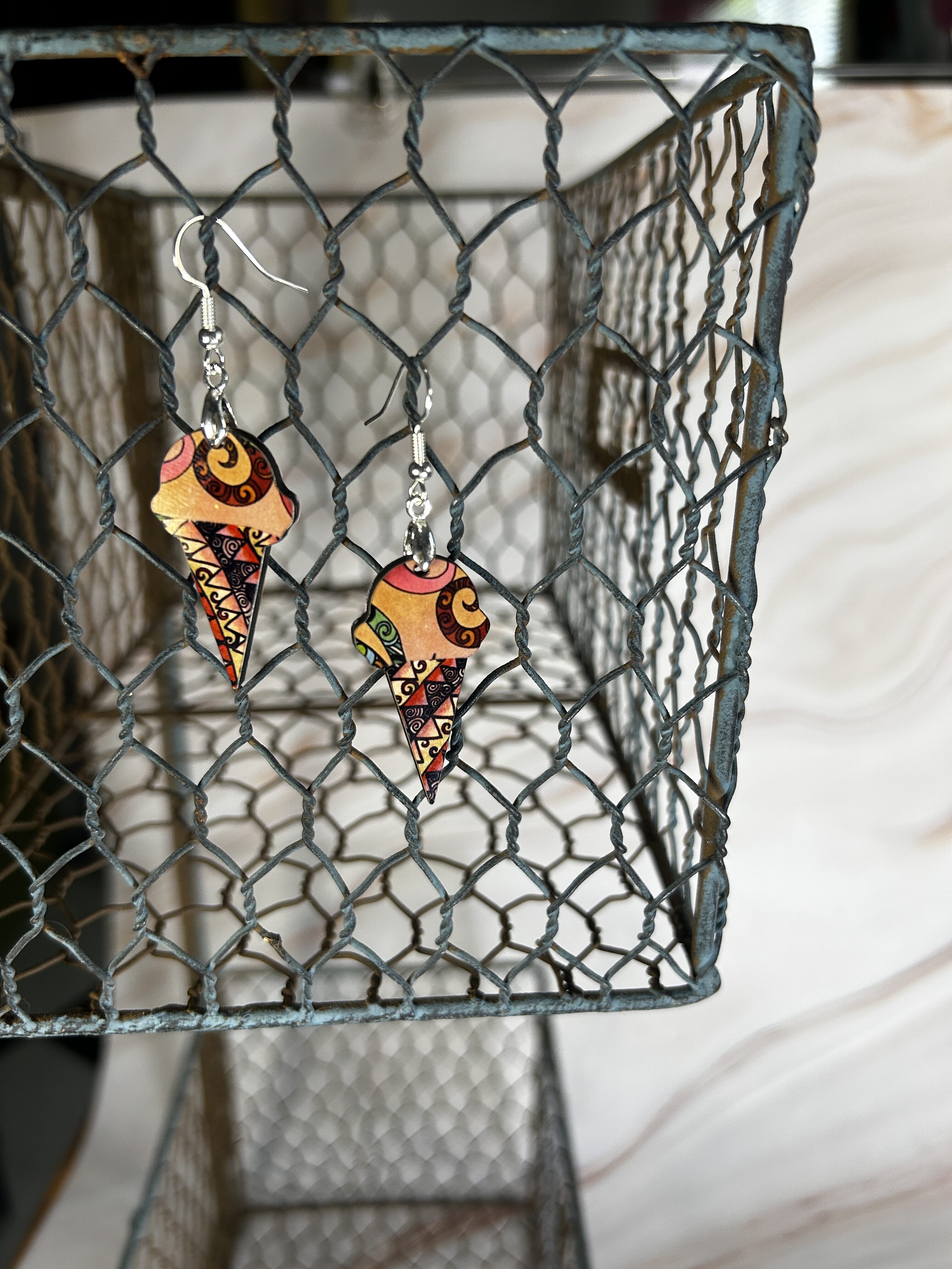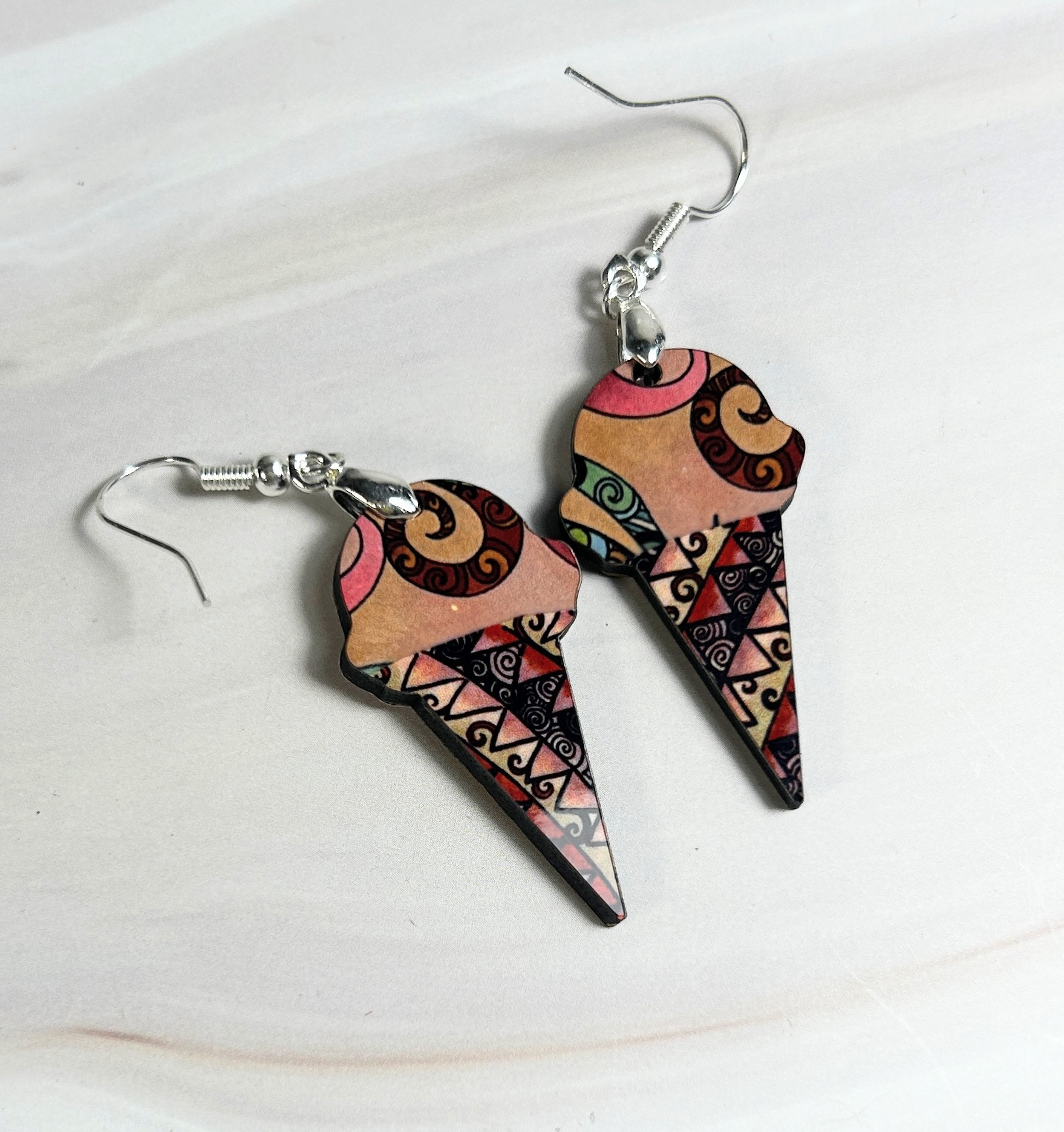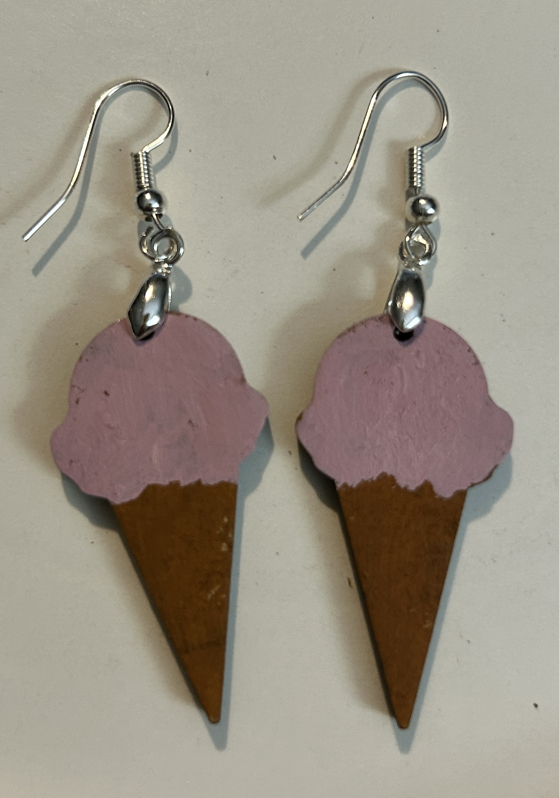 Earrings Ice cream cones, tan pink and green