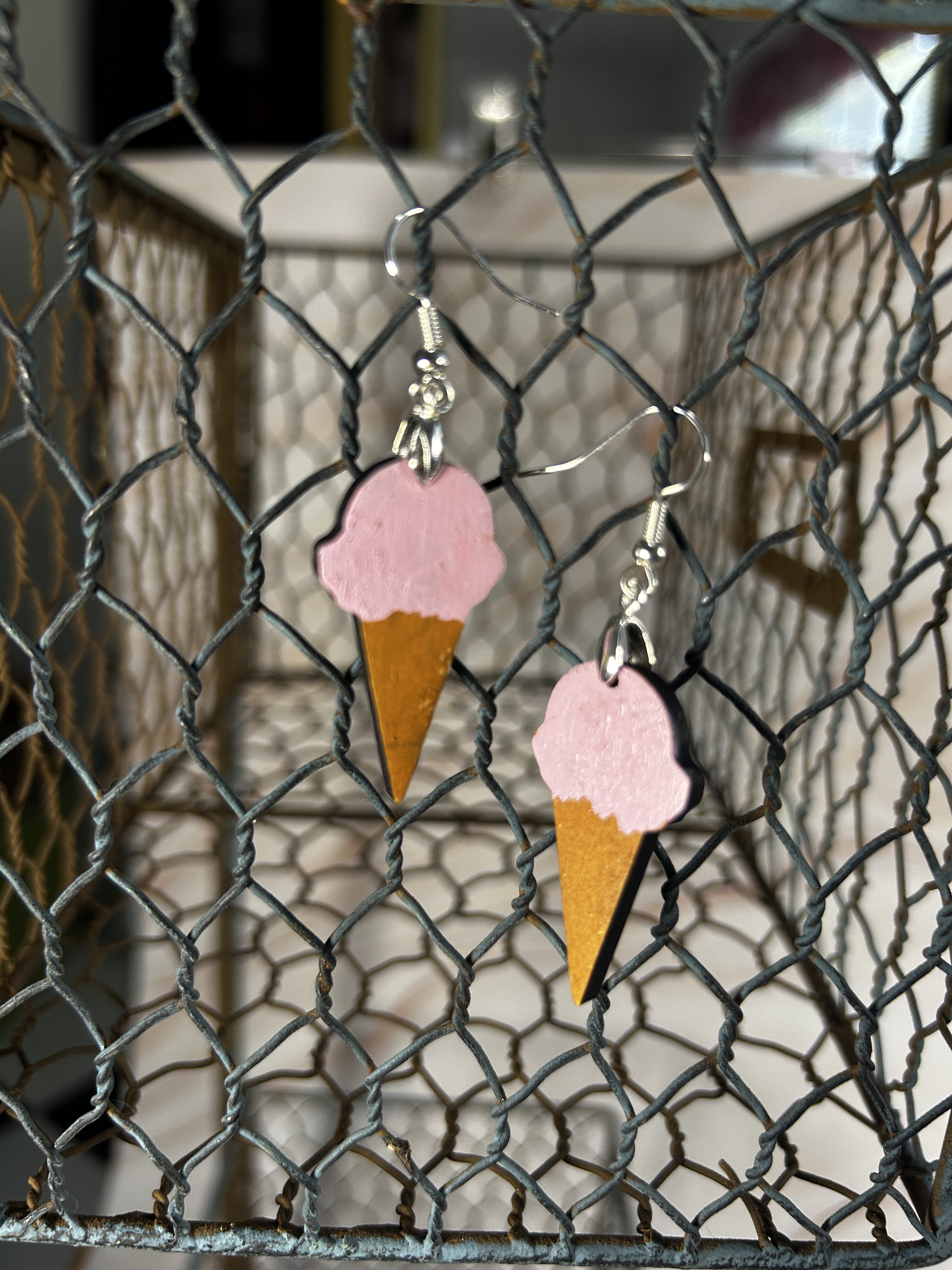 Earrings Ice cream cones, Tan, pink and green