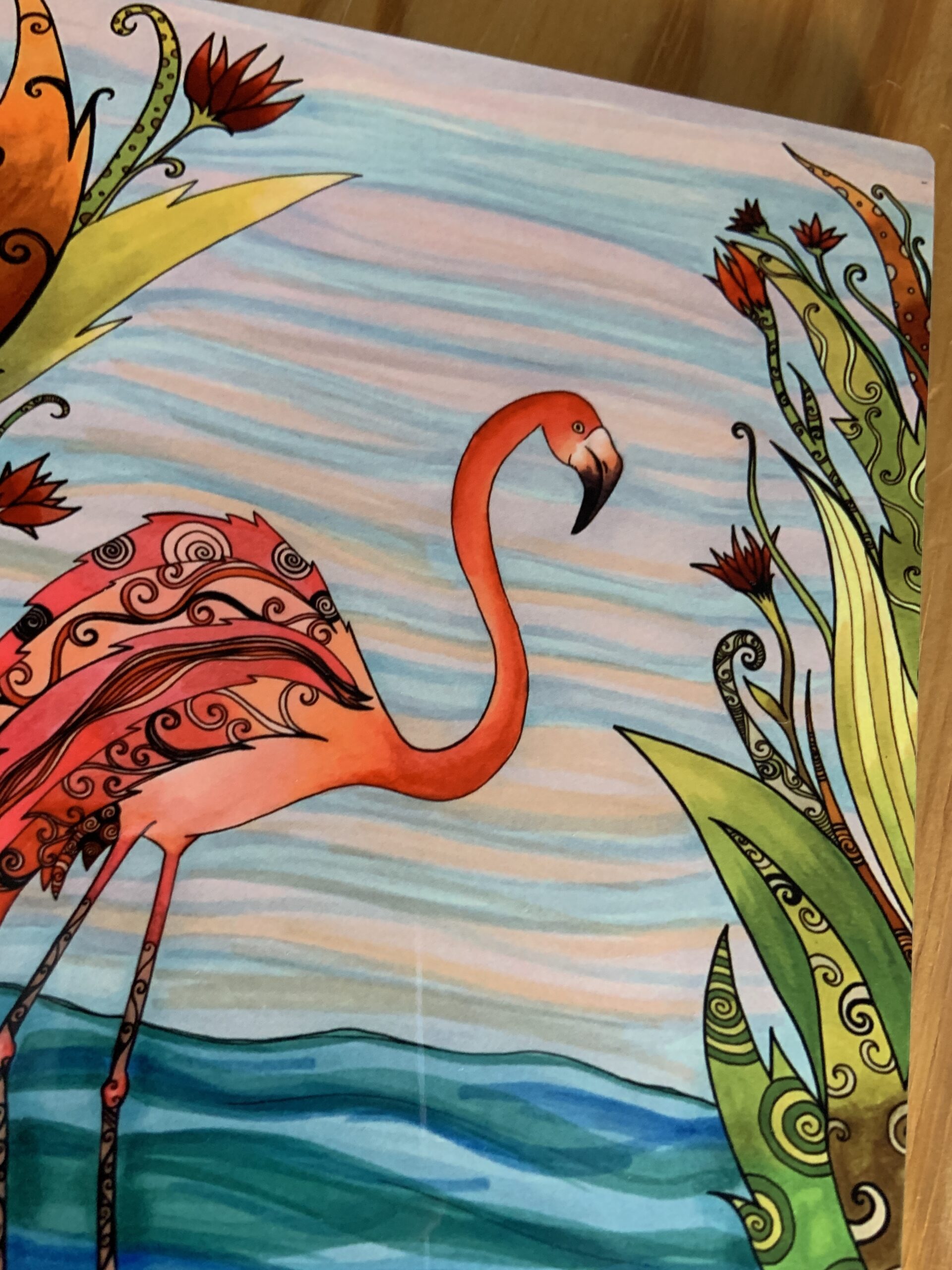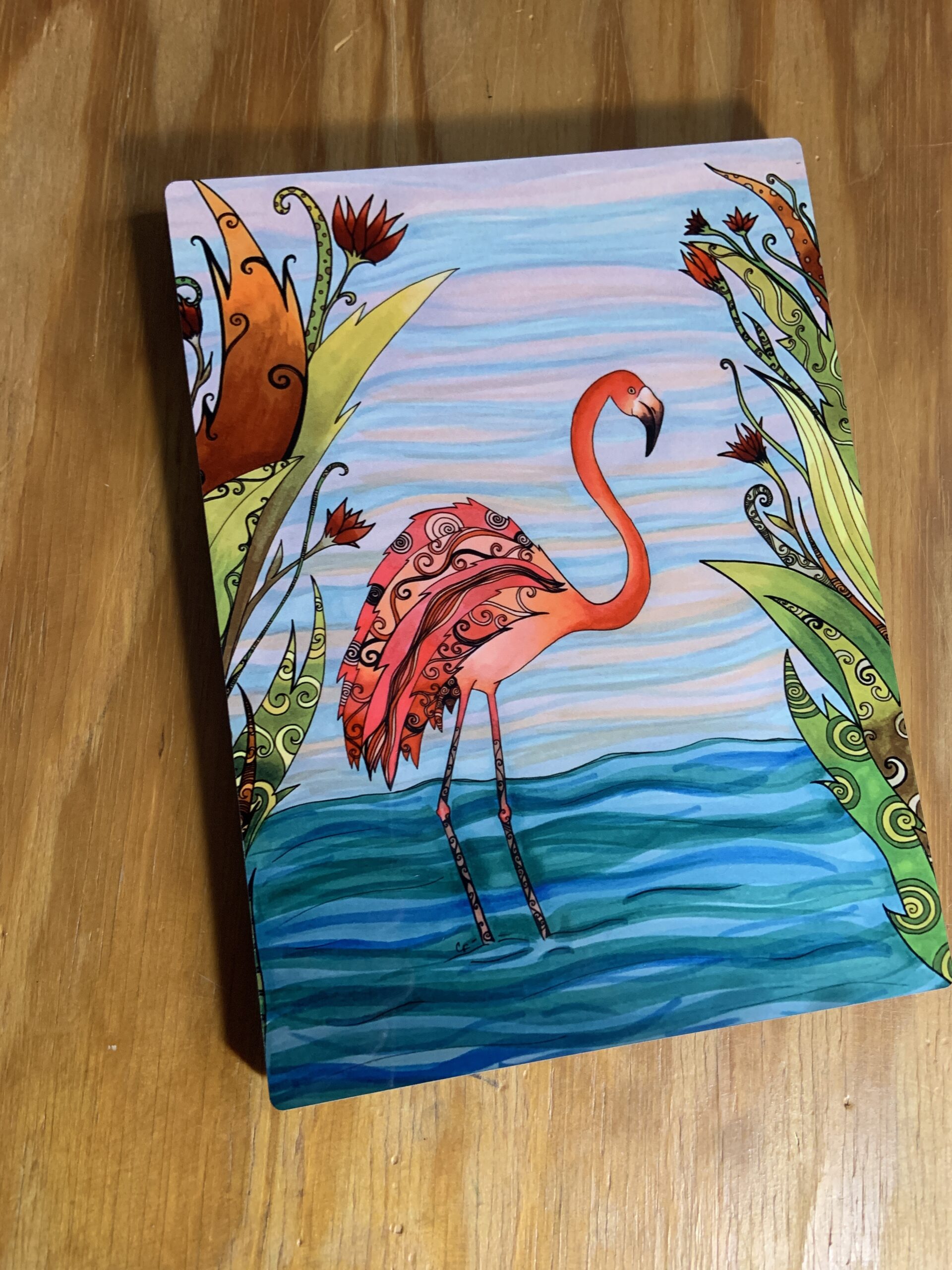 Art print 6×8 hard panel, with reposition-able pad or hanger. Flamingo