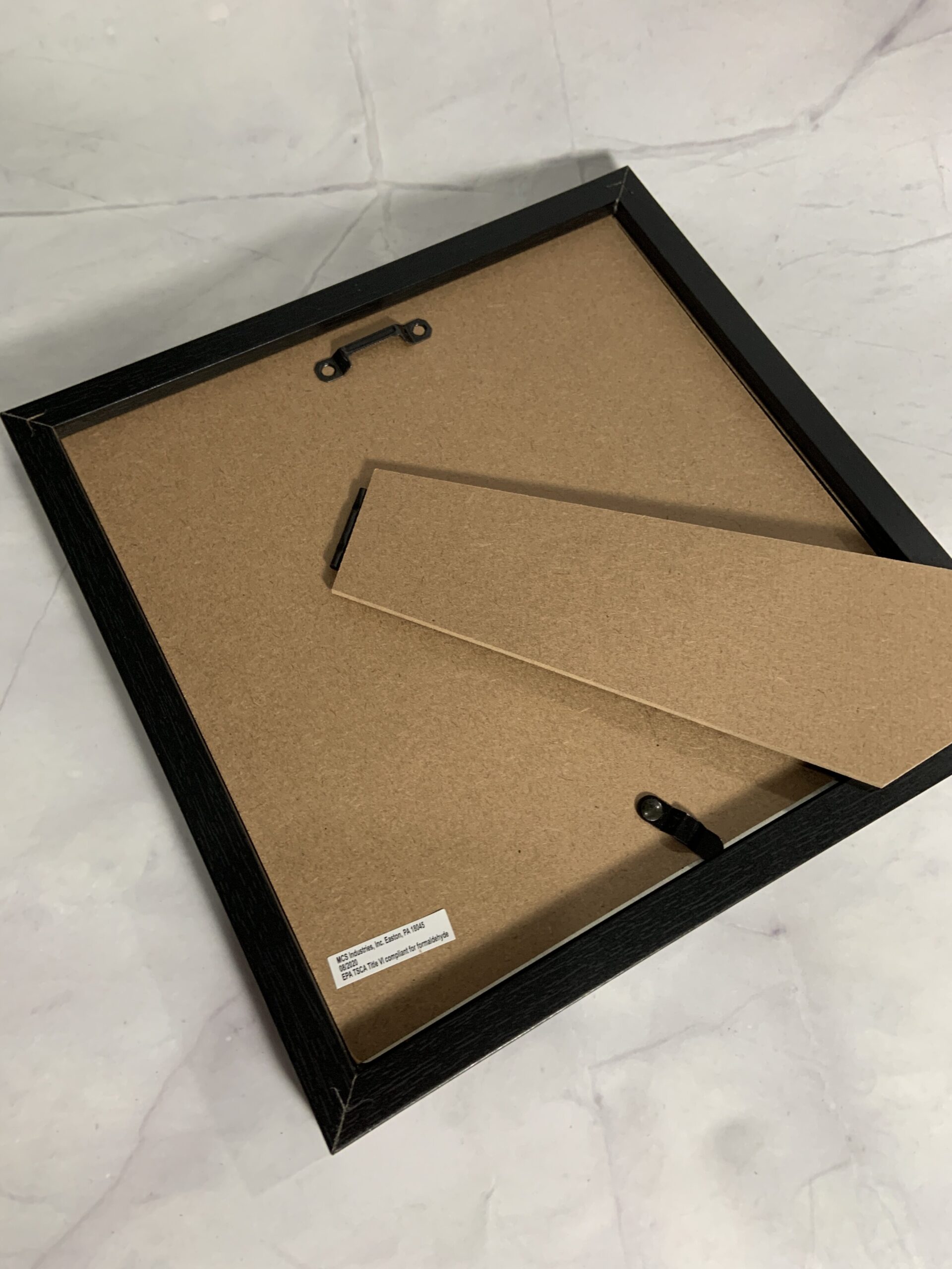 Chromaluxe metal art print, Sandhill Crane 8″ x 8″ square with black wood frame.