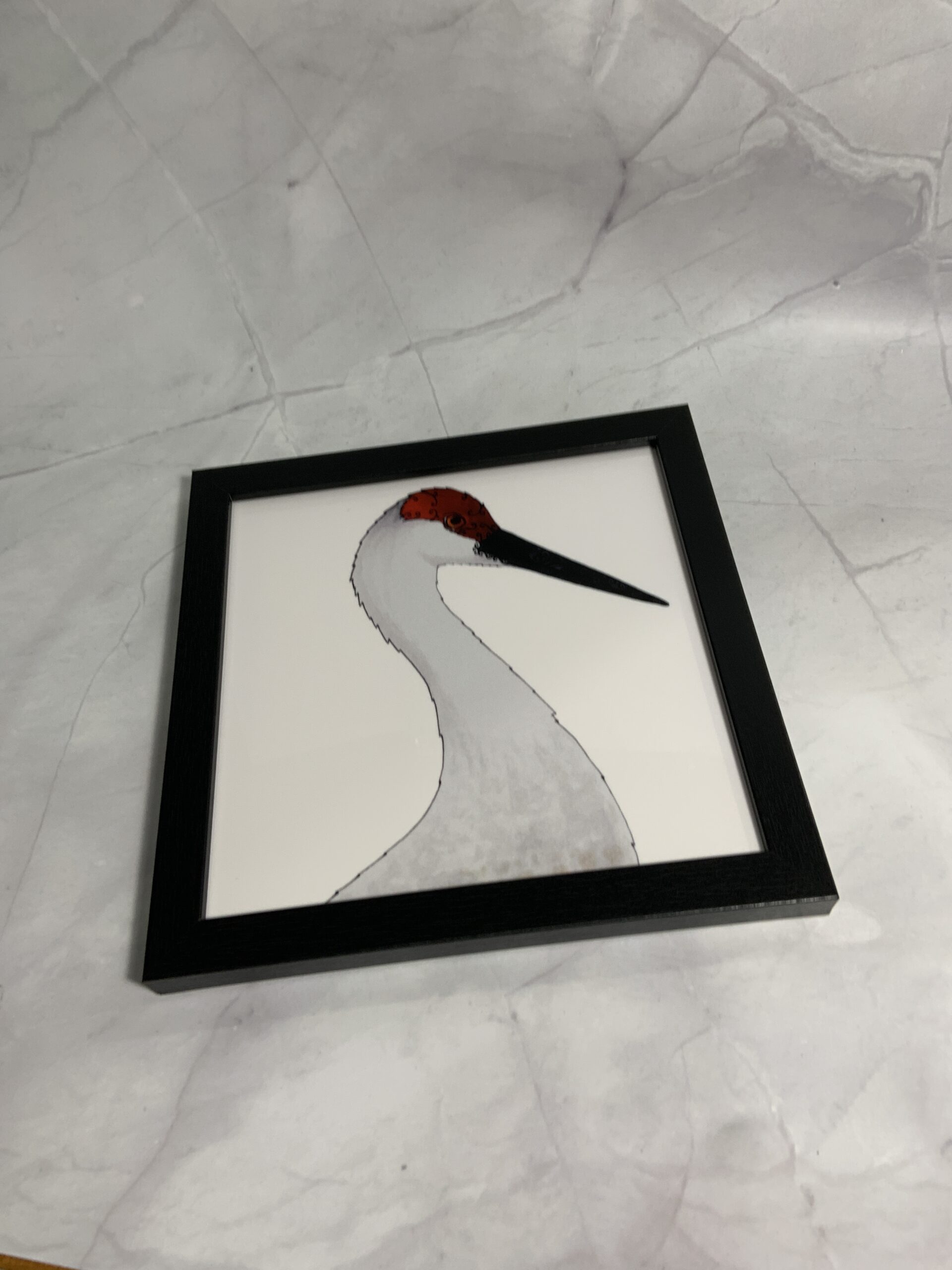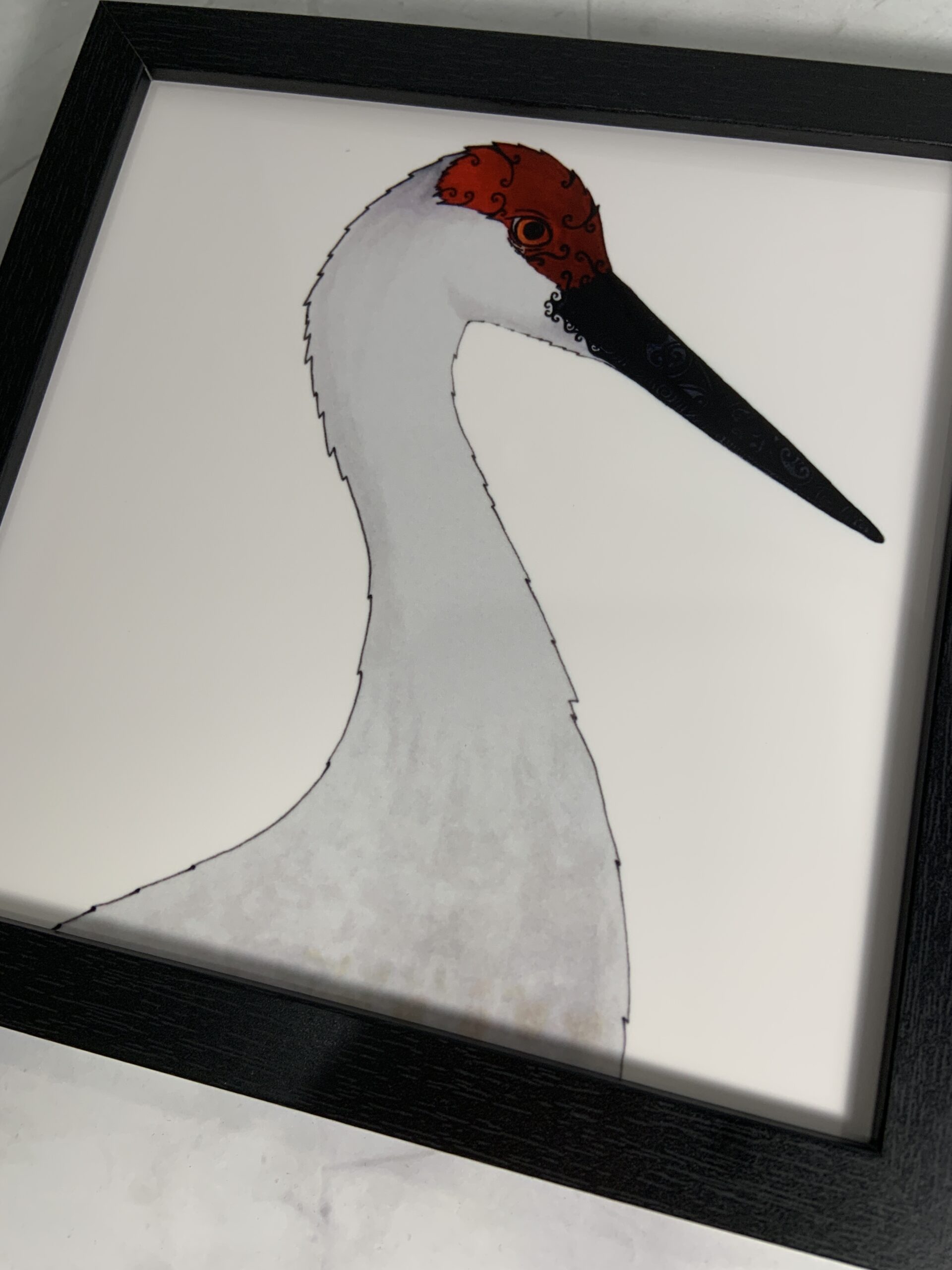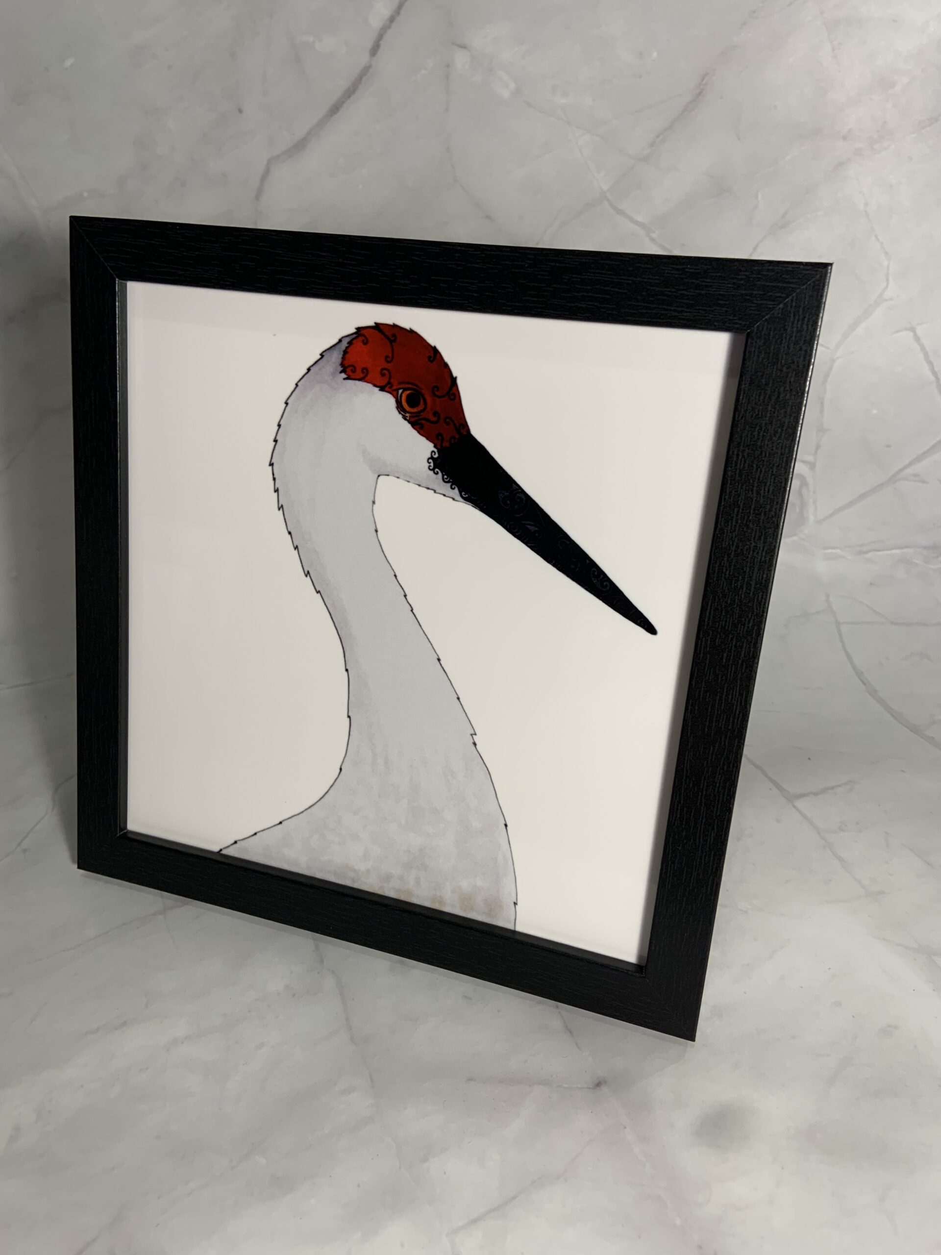 Framed metal art print Sandhill Crane 8″ x 8″ square