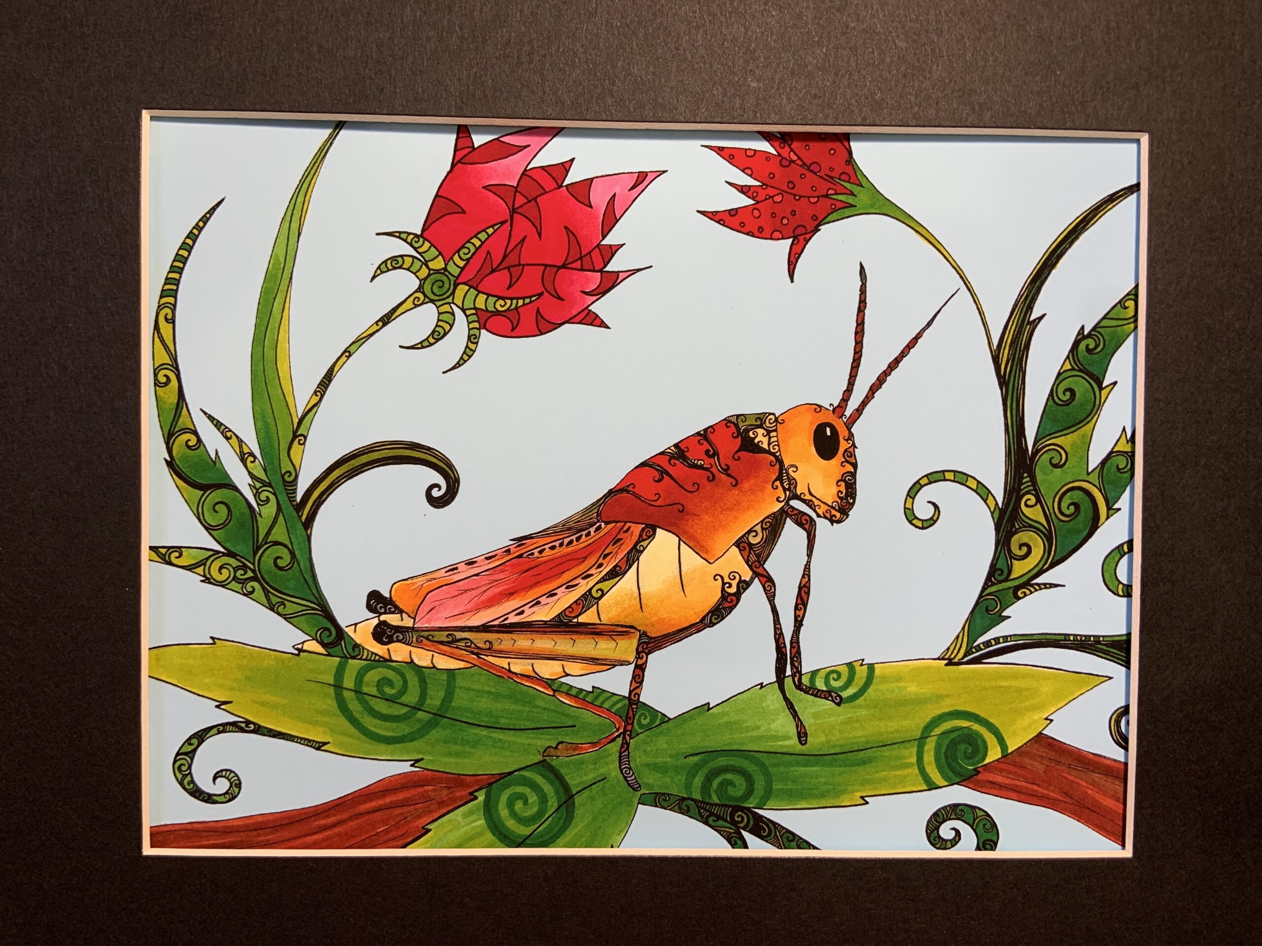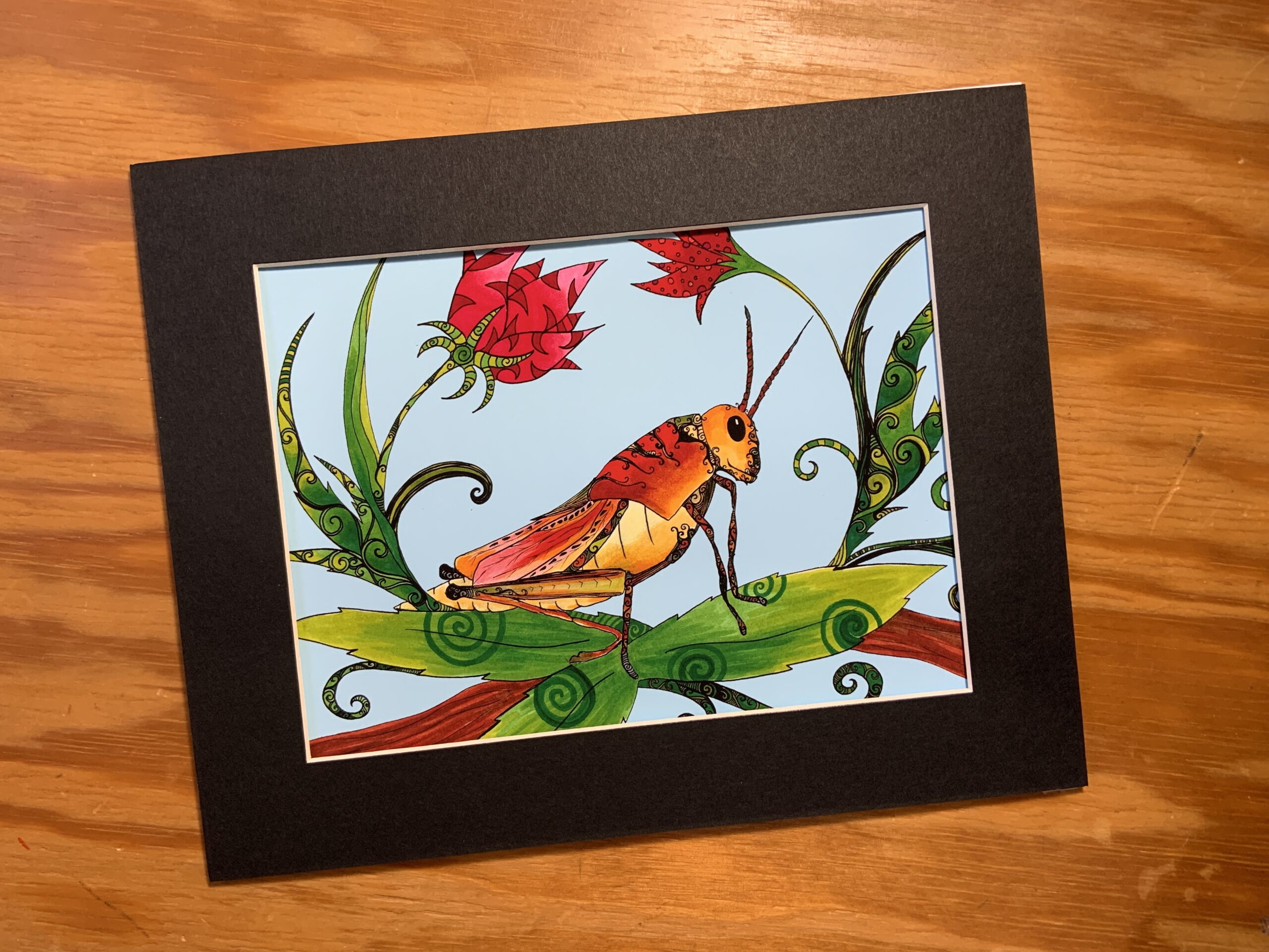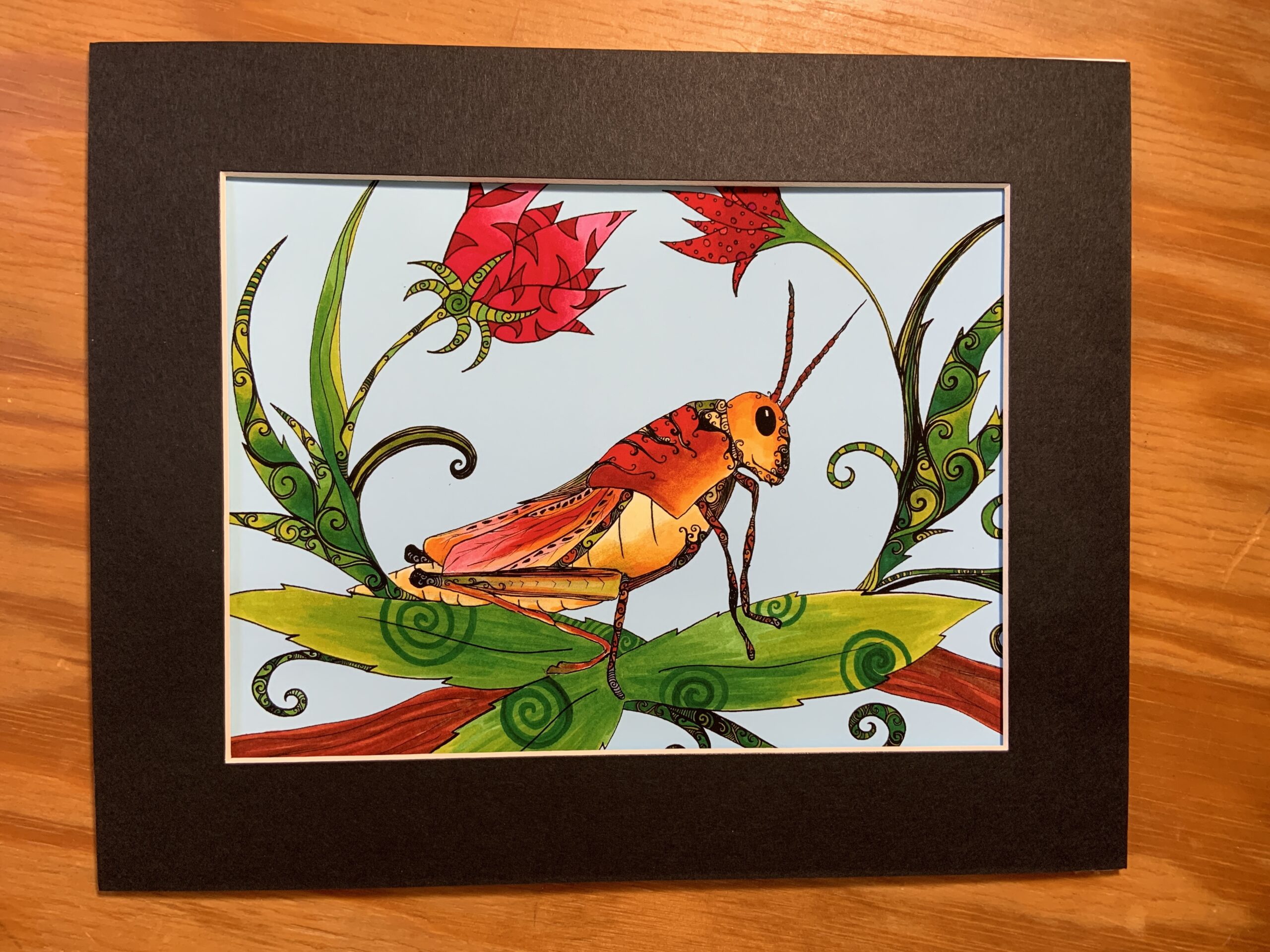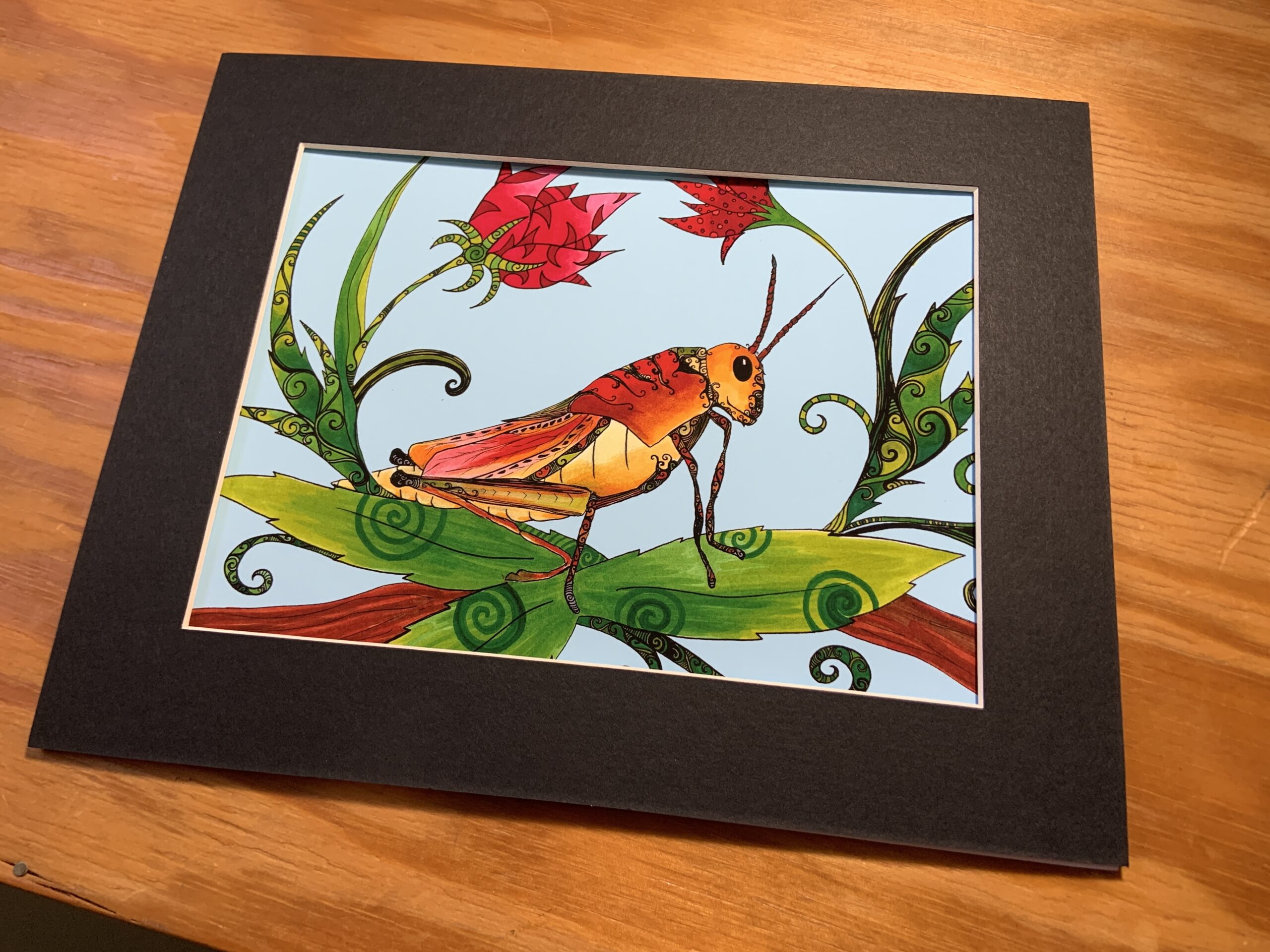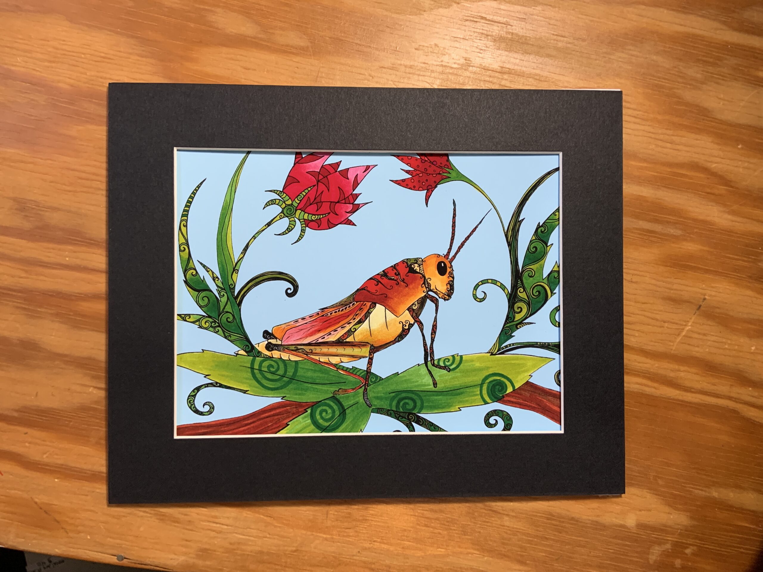 Art print 6×8 print matted to 8×10. Grasshopper