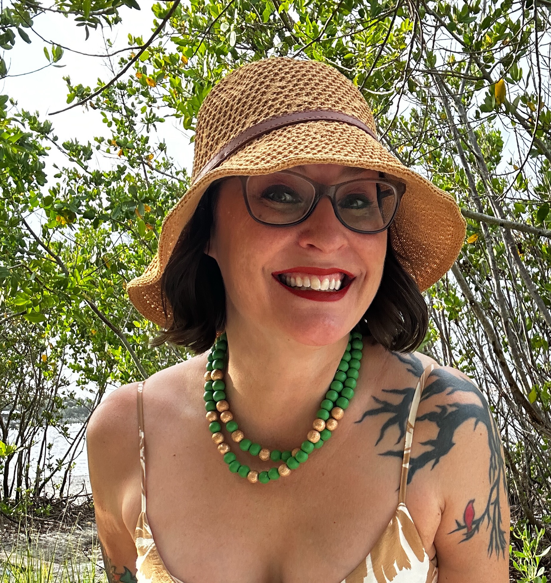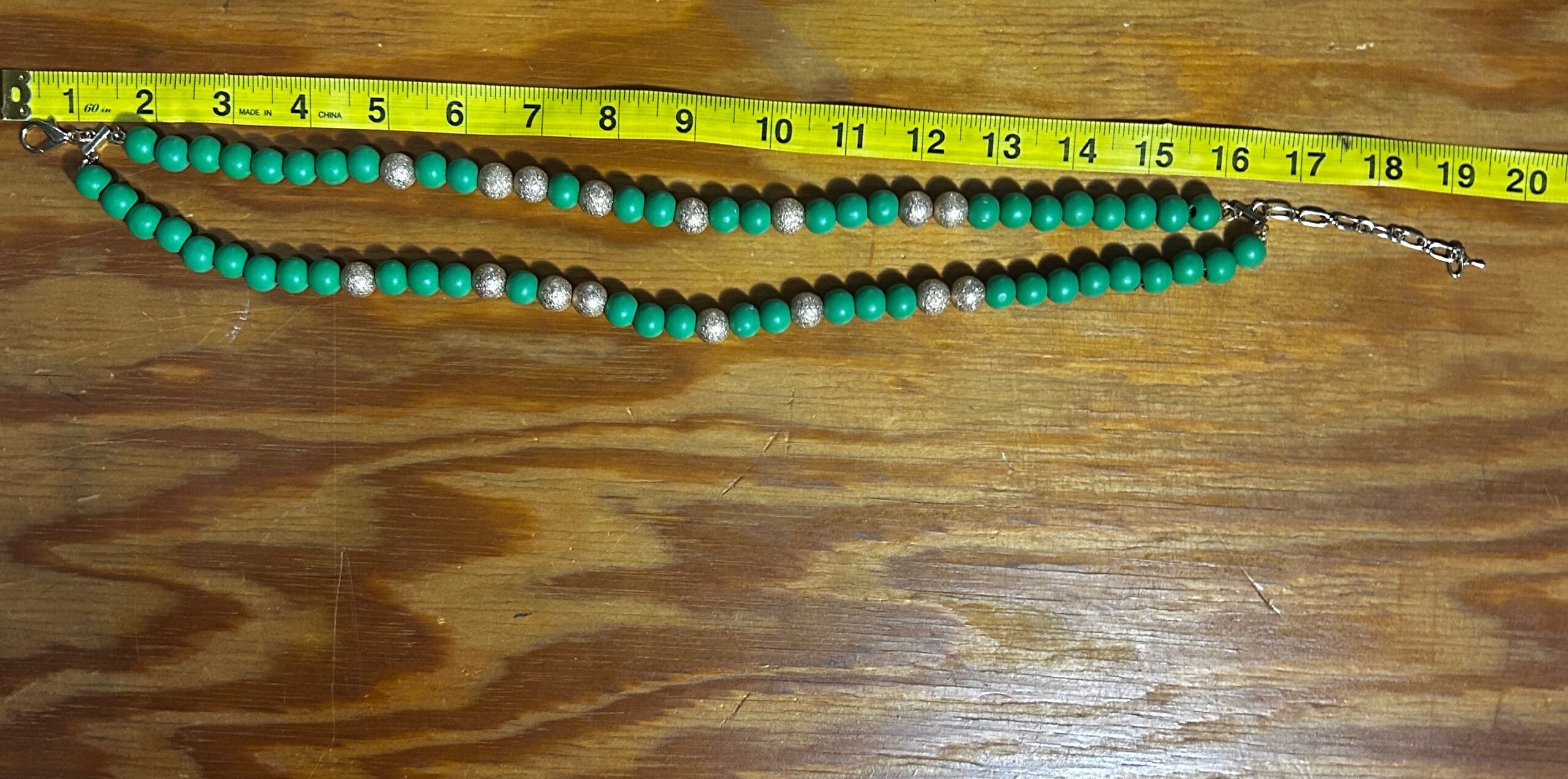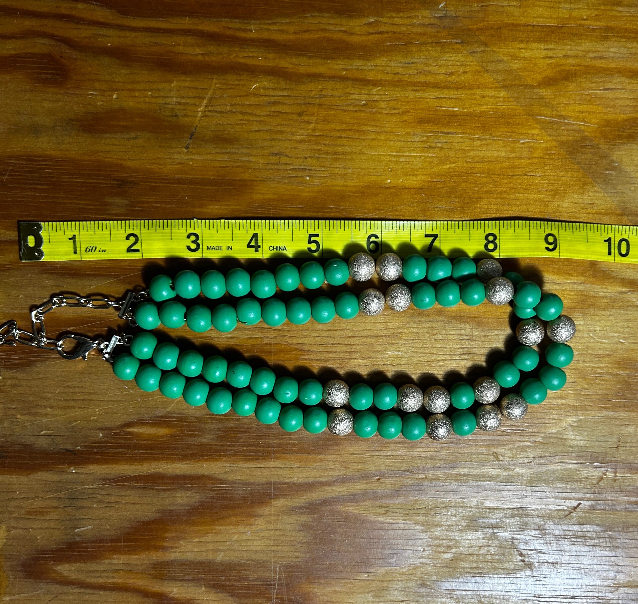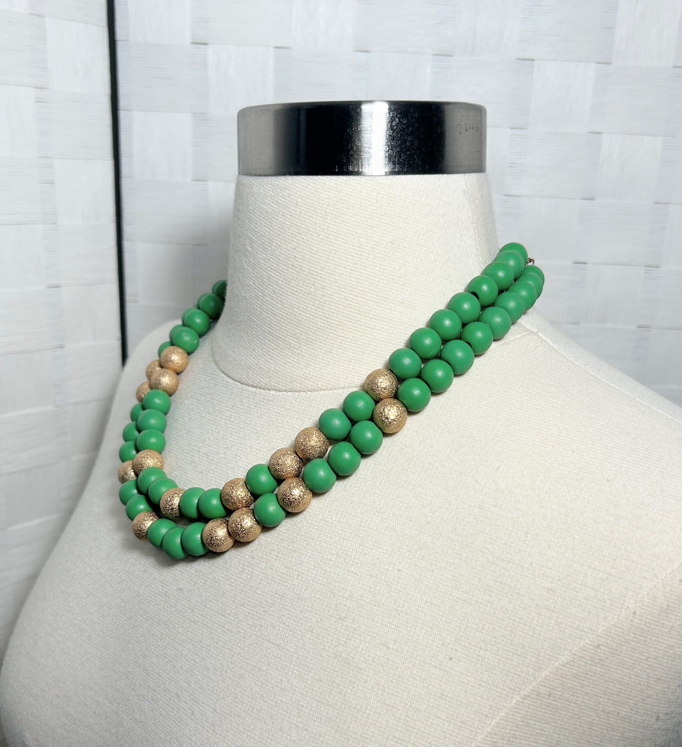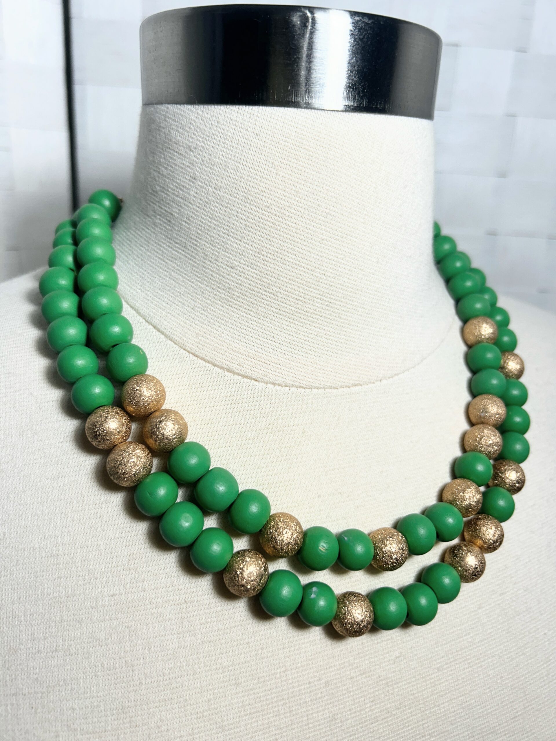 Green and gold double strand beaded necklace