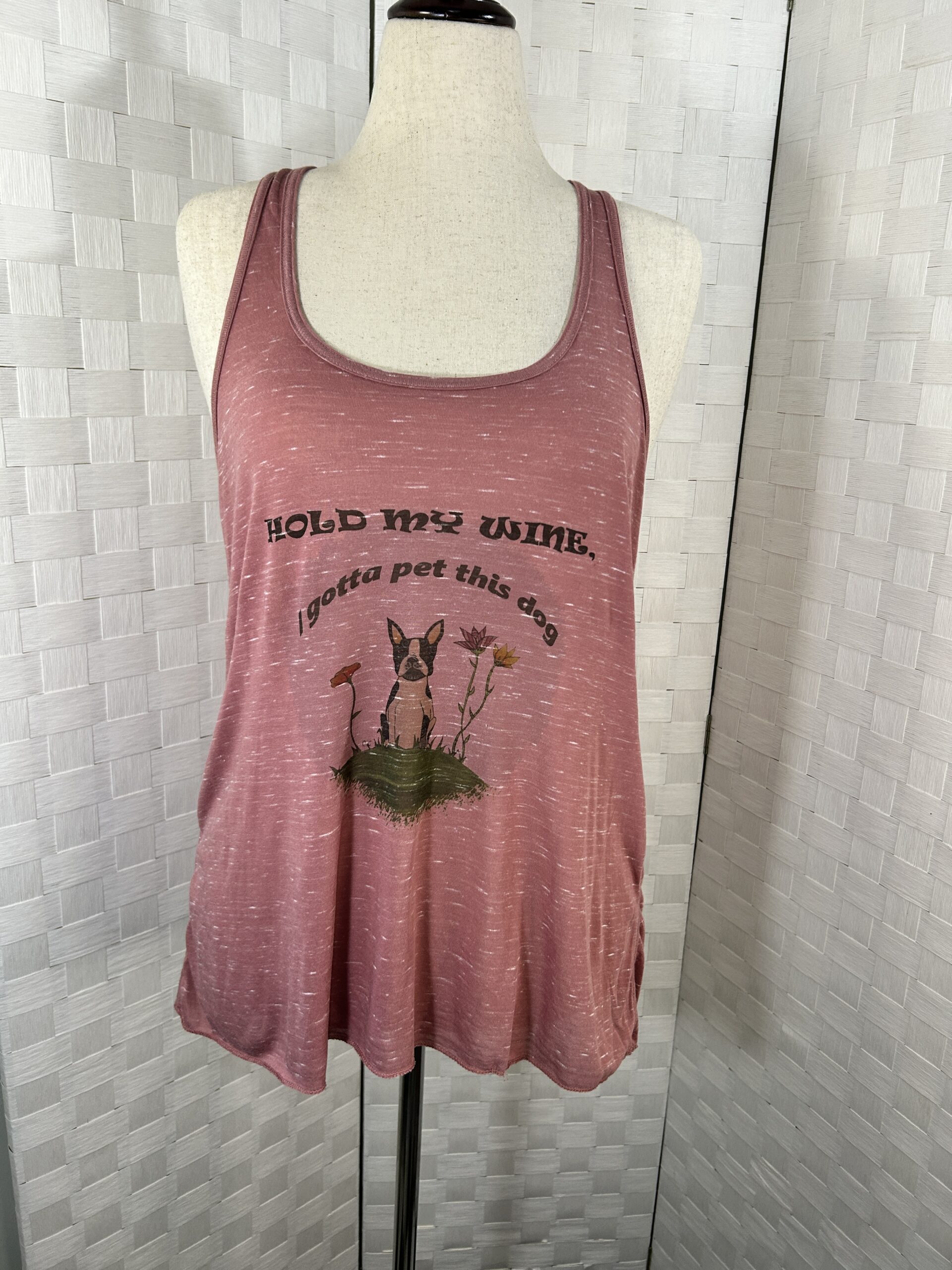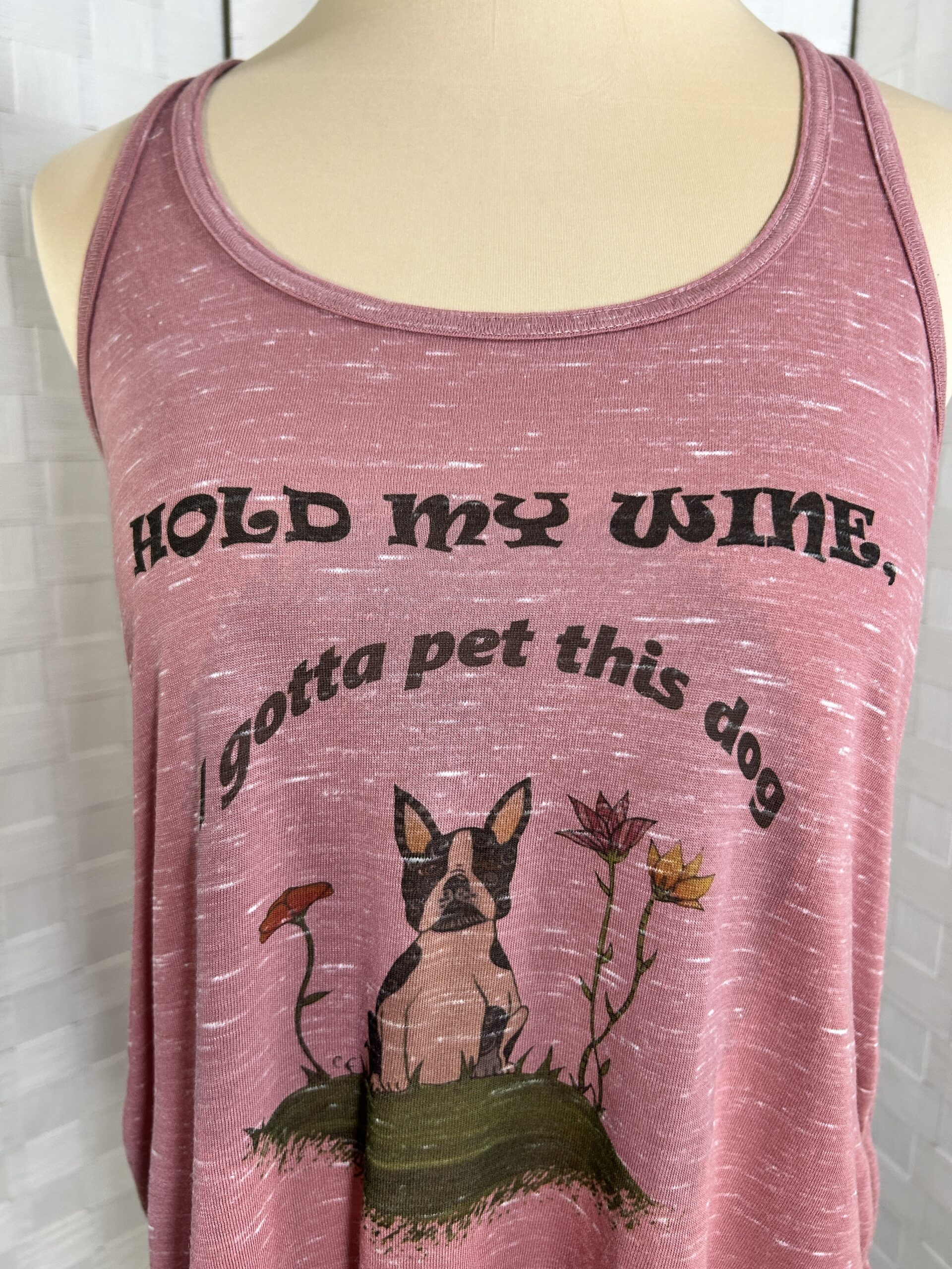 Hold my wine I gotta pet this dog Bella Canvas flowy racer back tank top (S,XL)