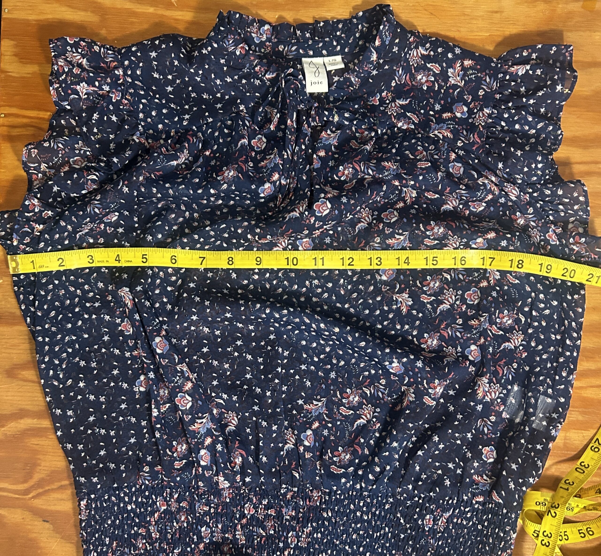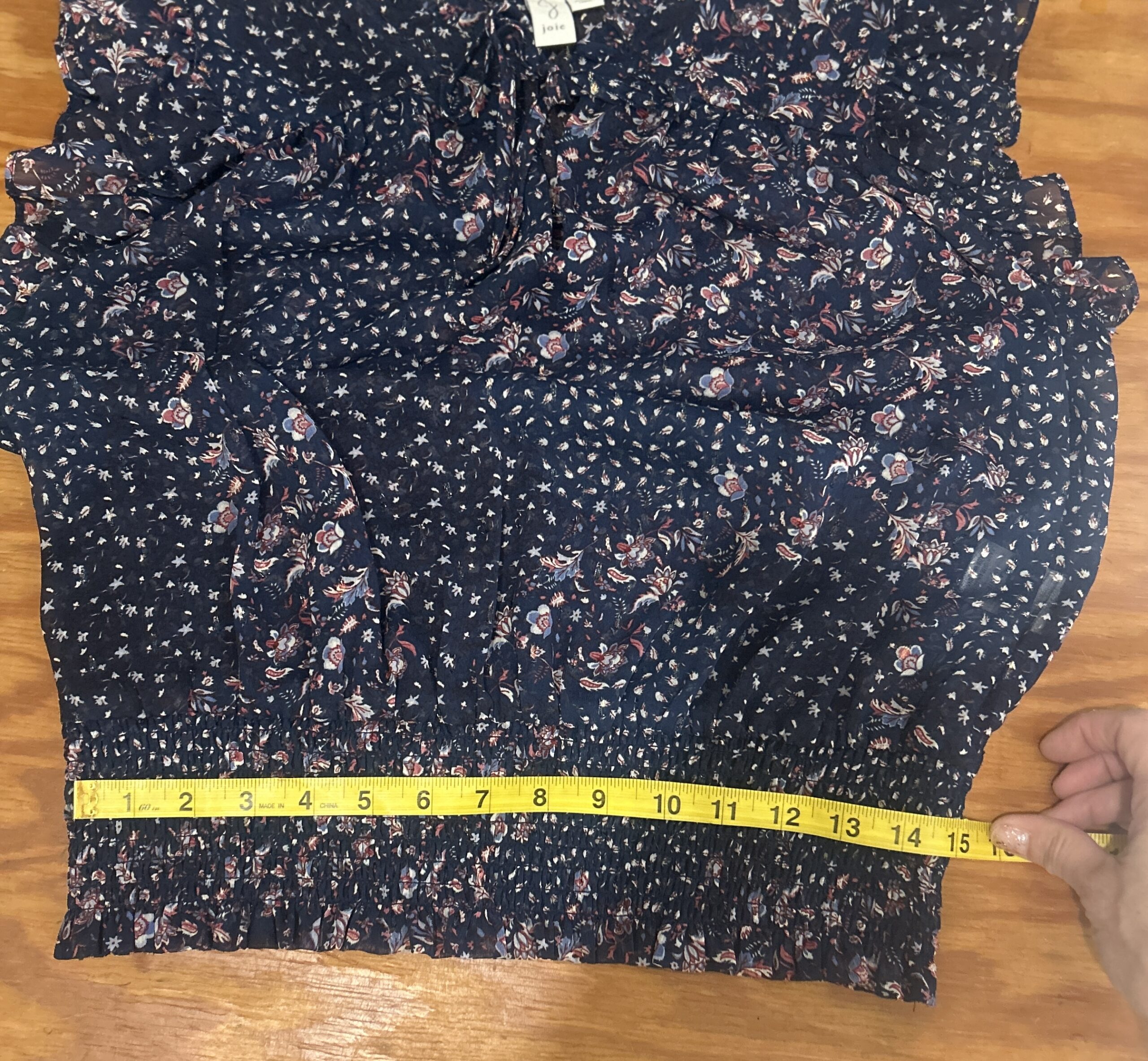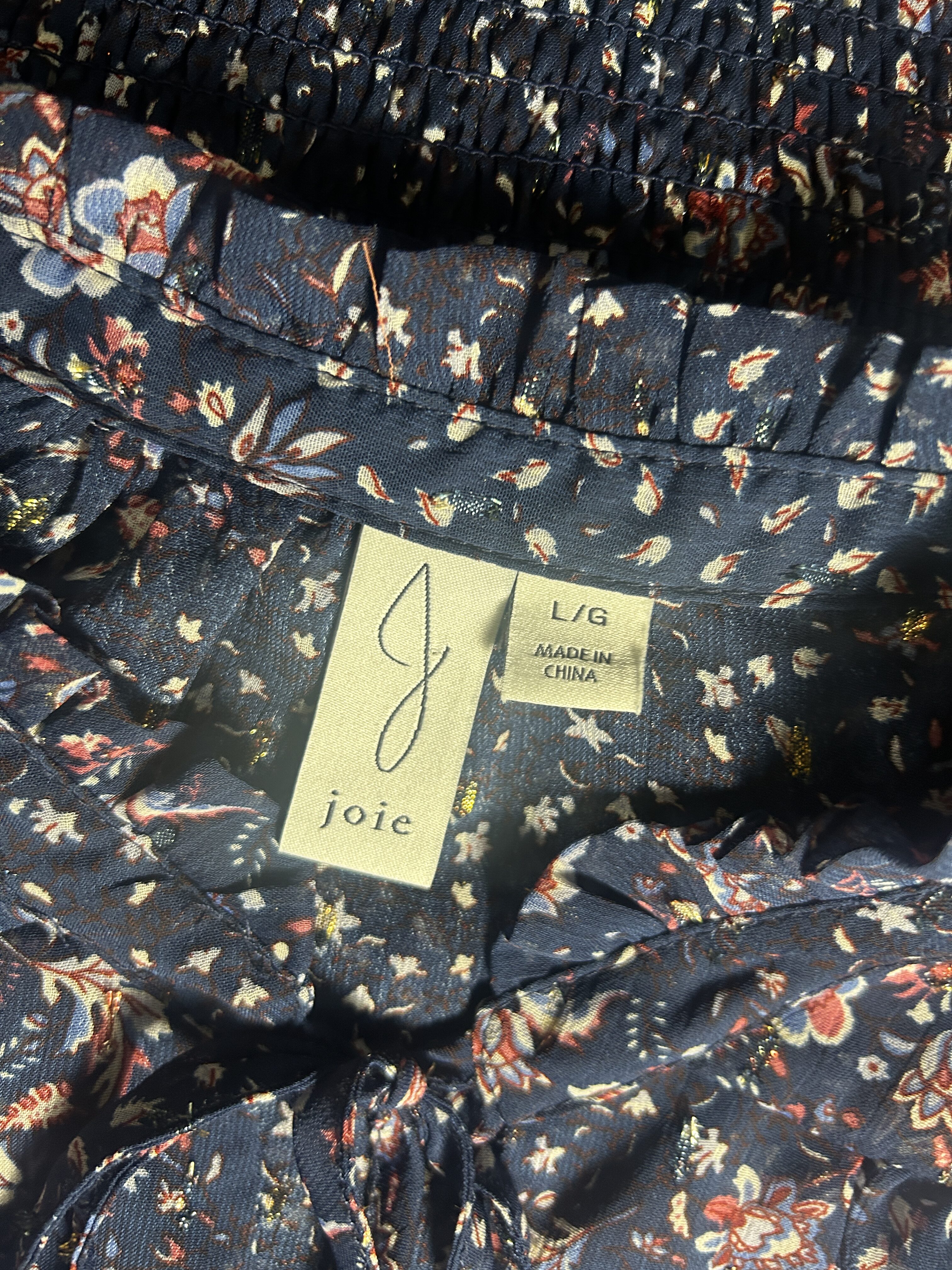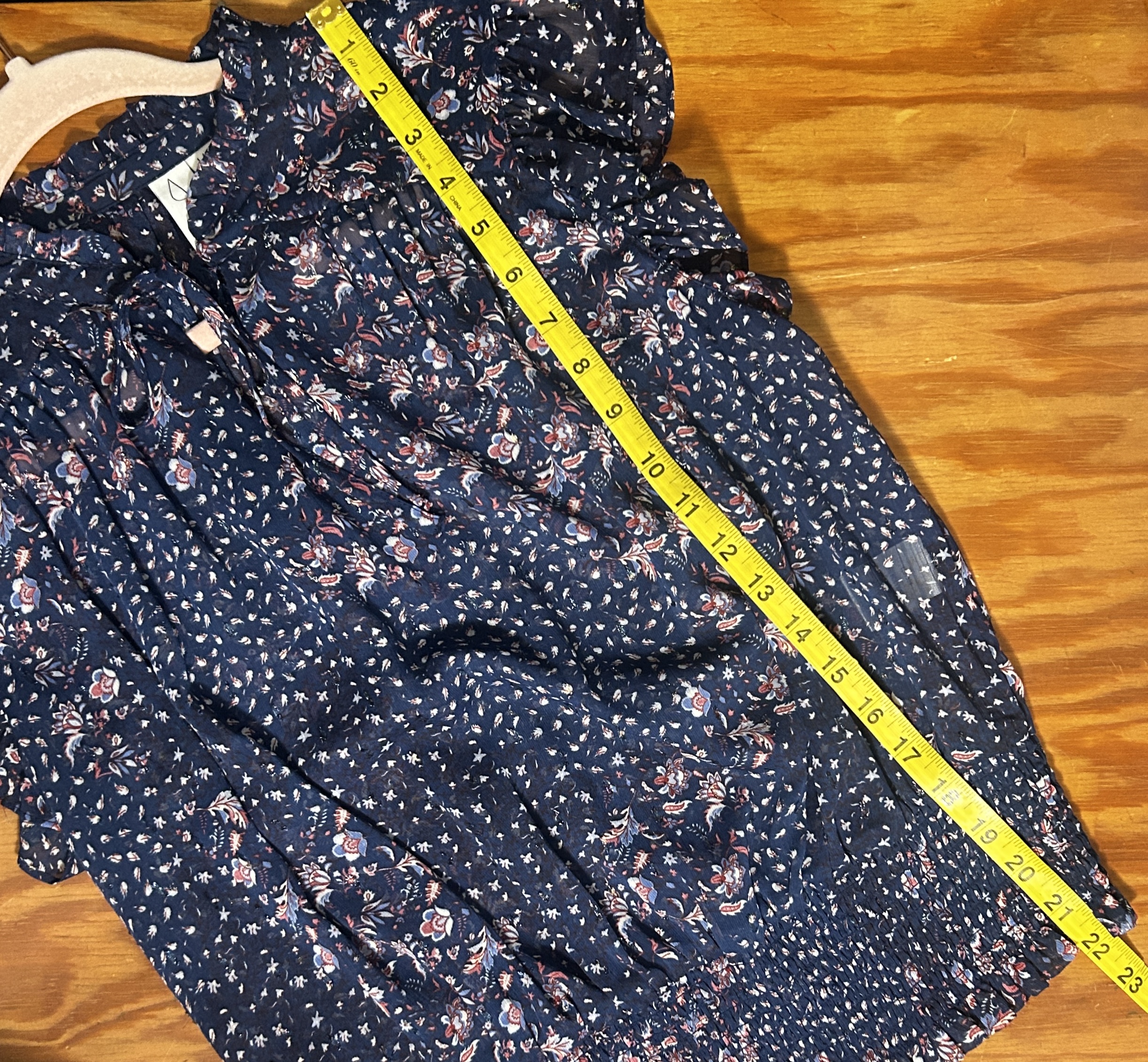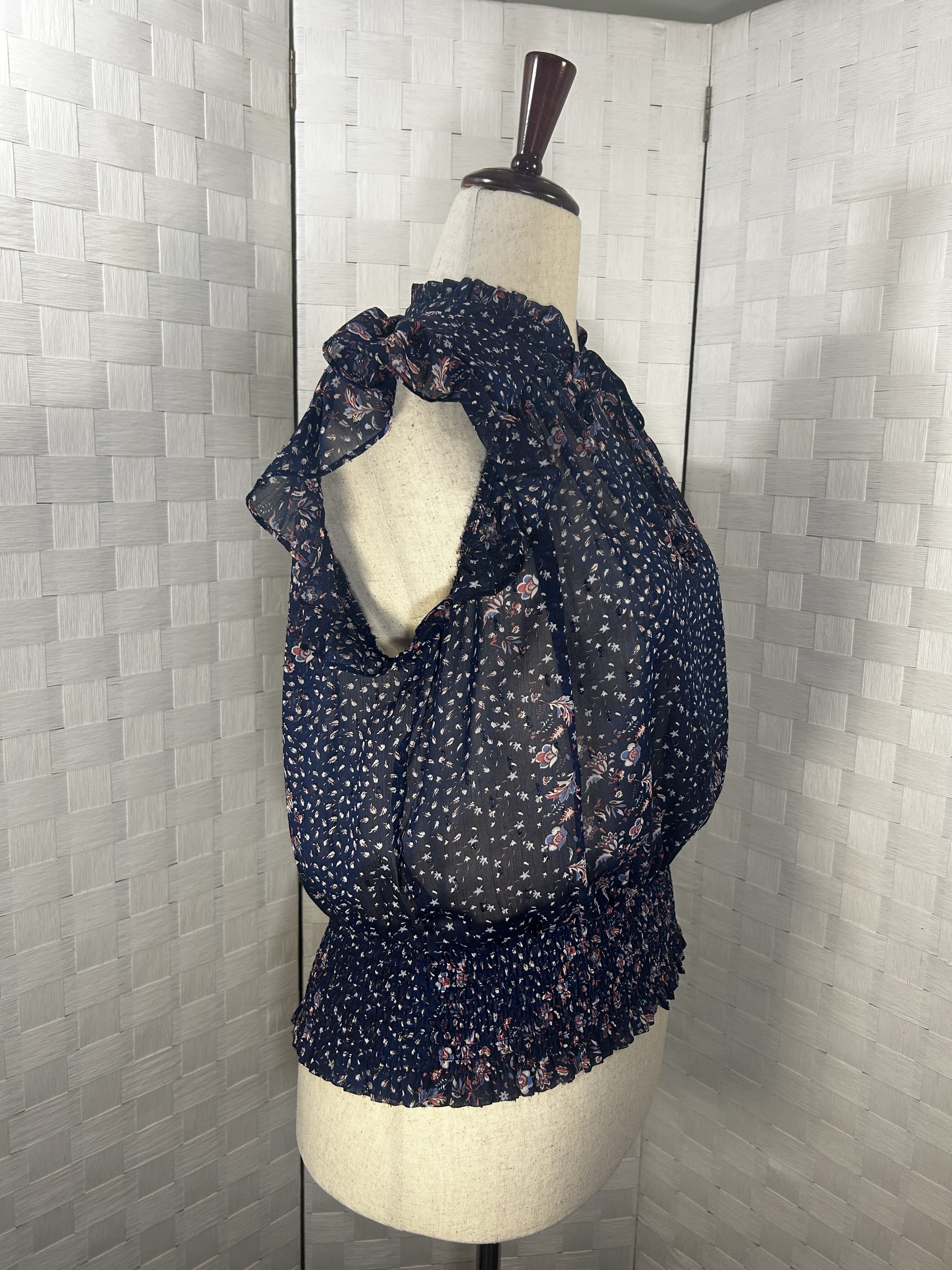 Joie sheer navy floral blouse- Cap ruffle sleeves (L)