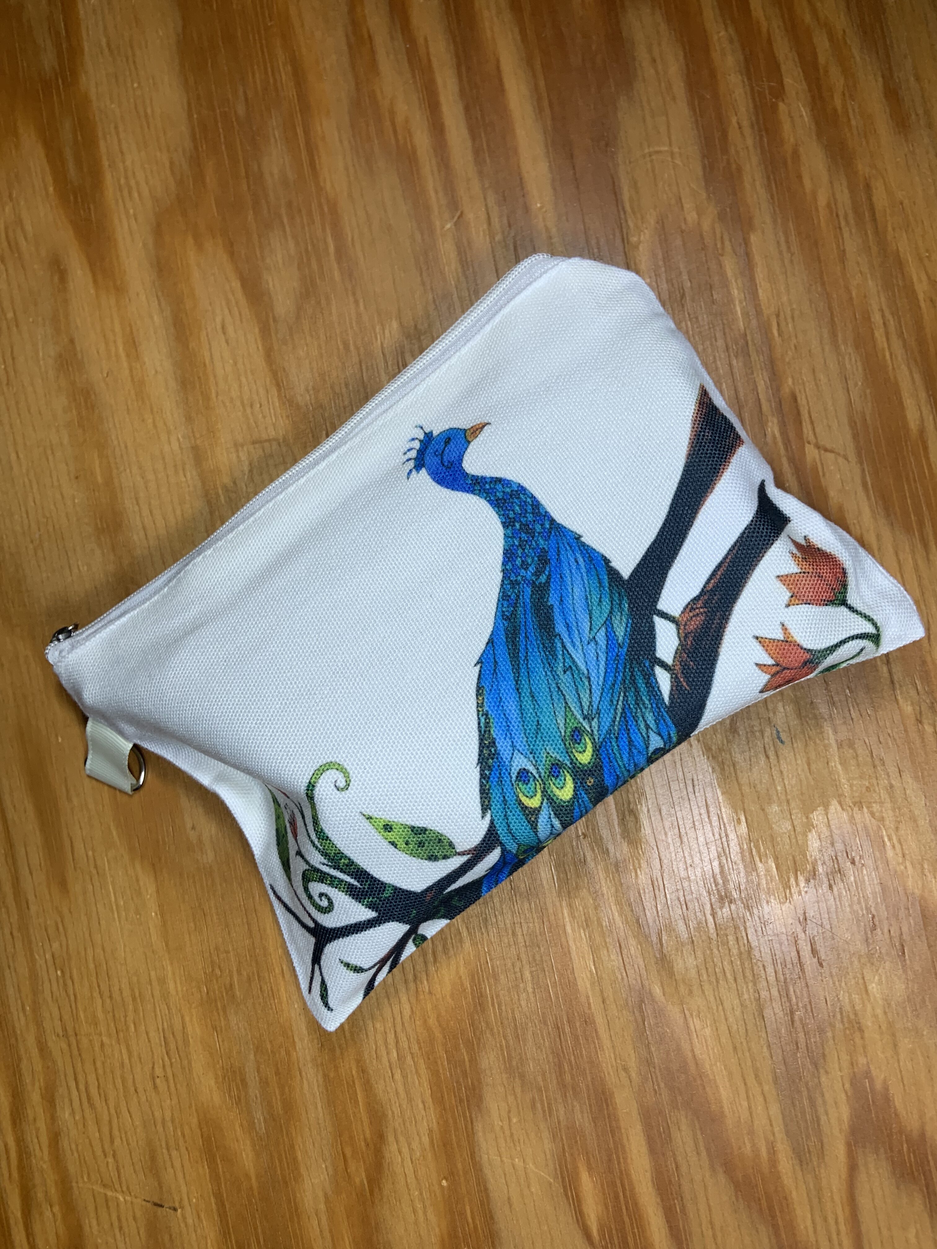 Makeup bag, small zippered bag, peacock