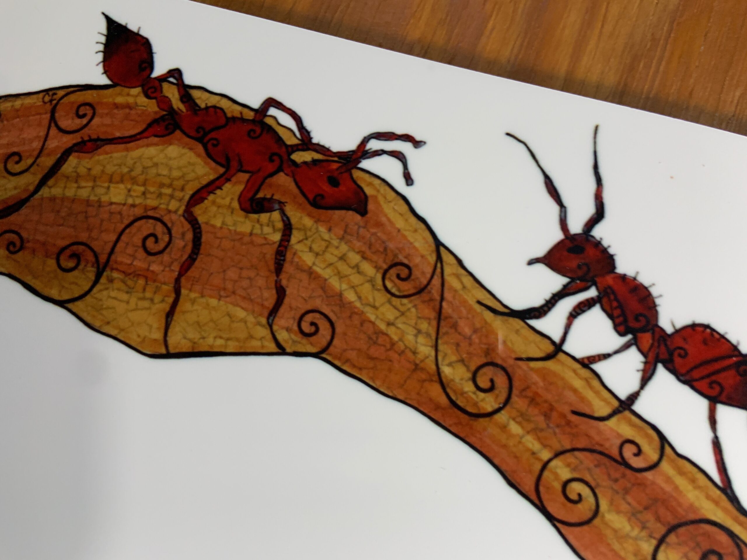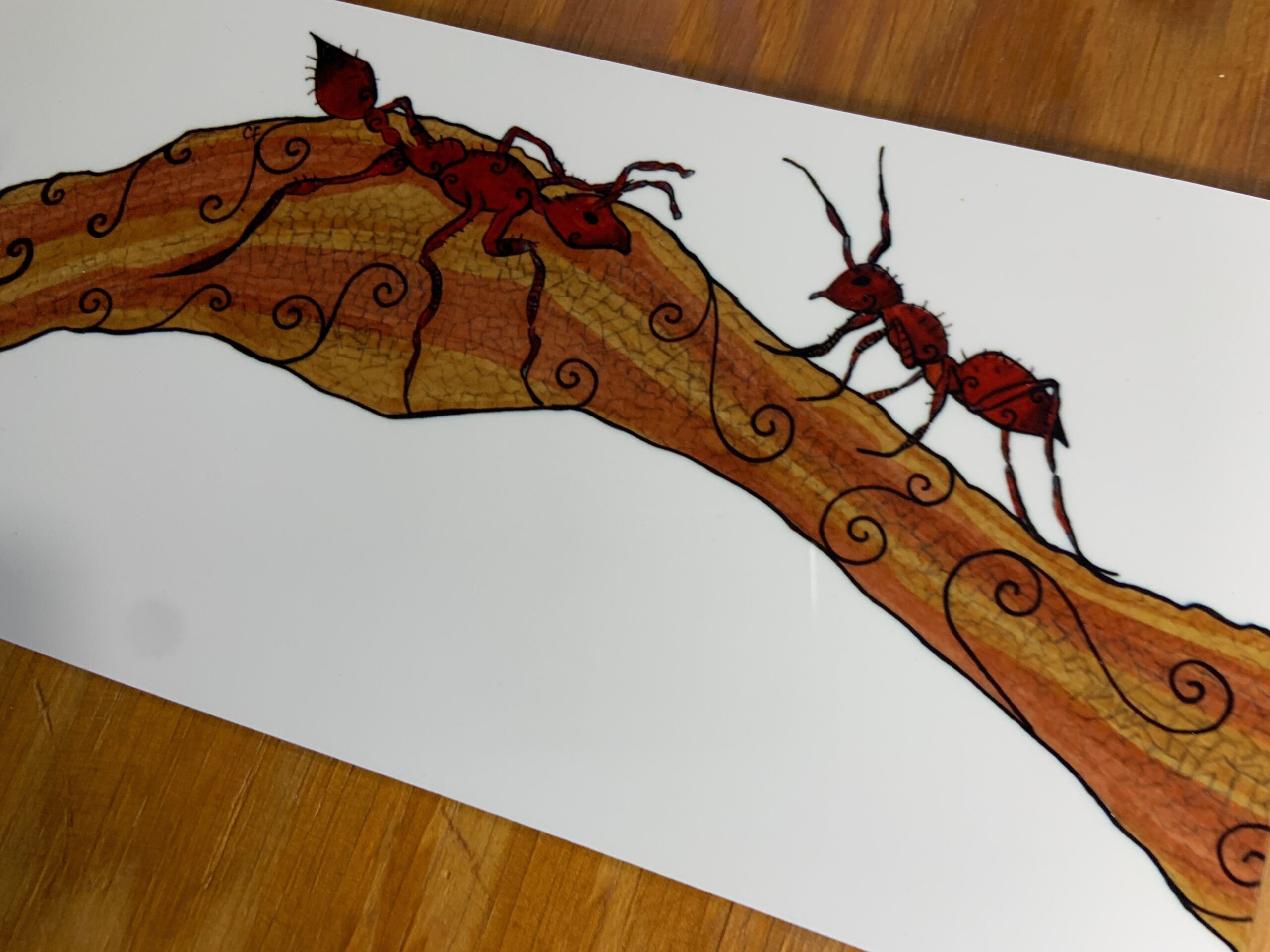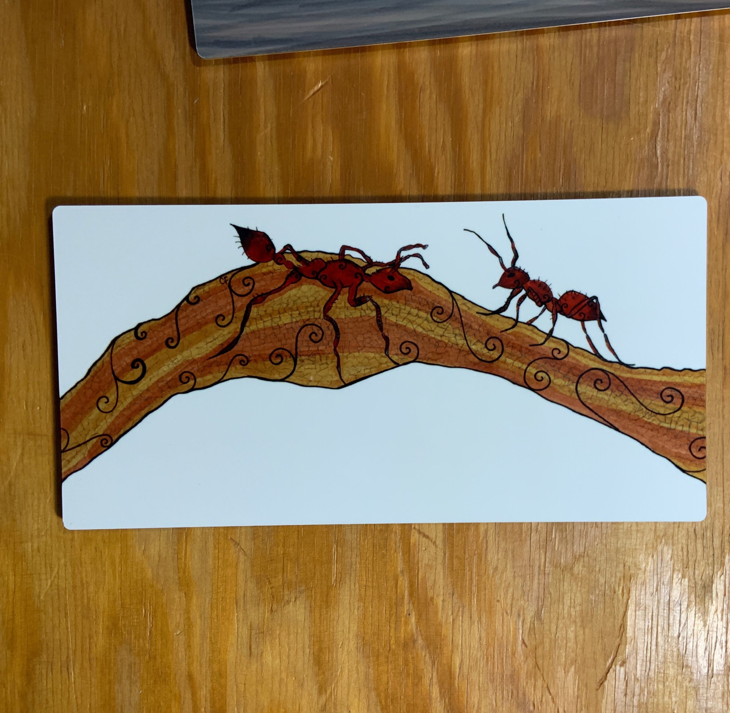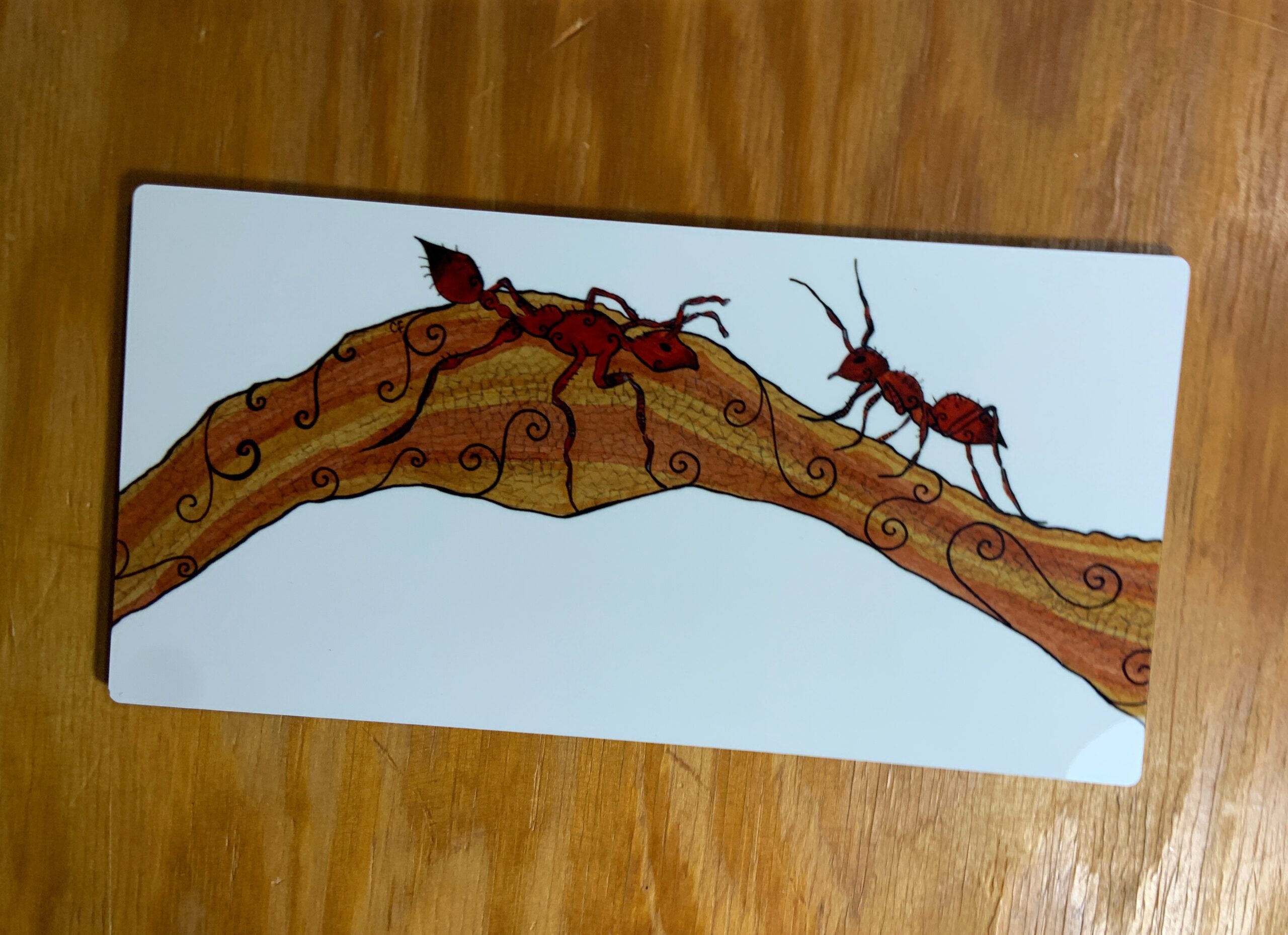 Metal art print with fire ants 5″ x 10″ rectangle