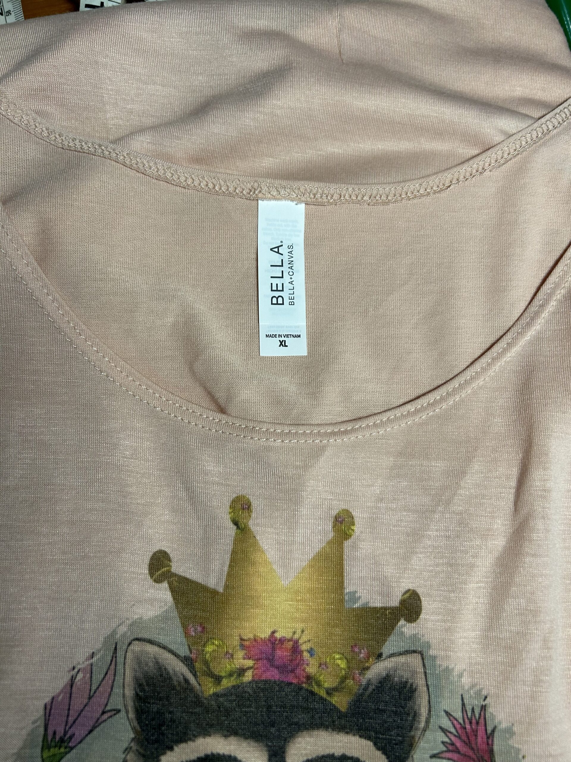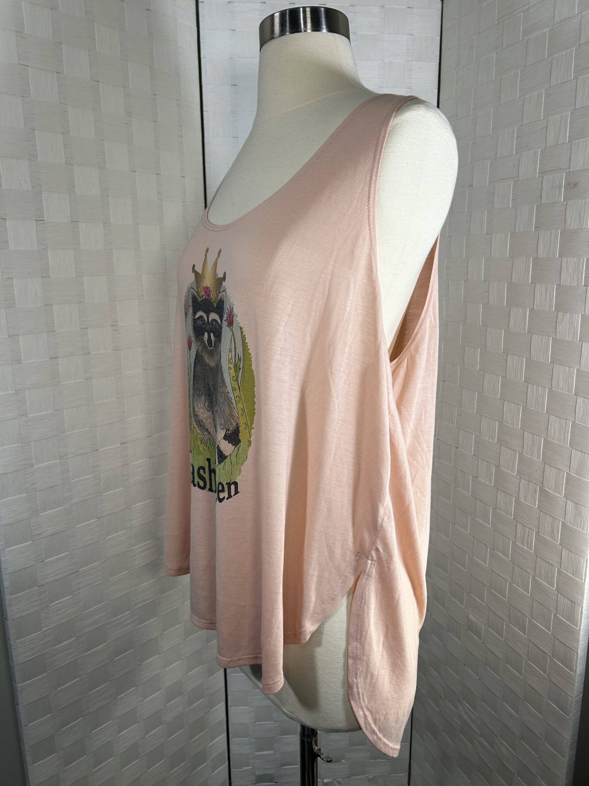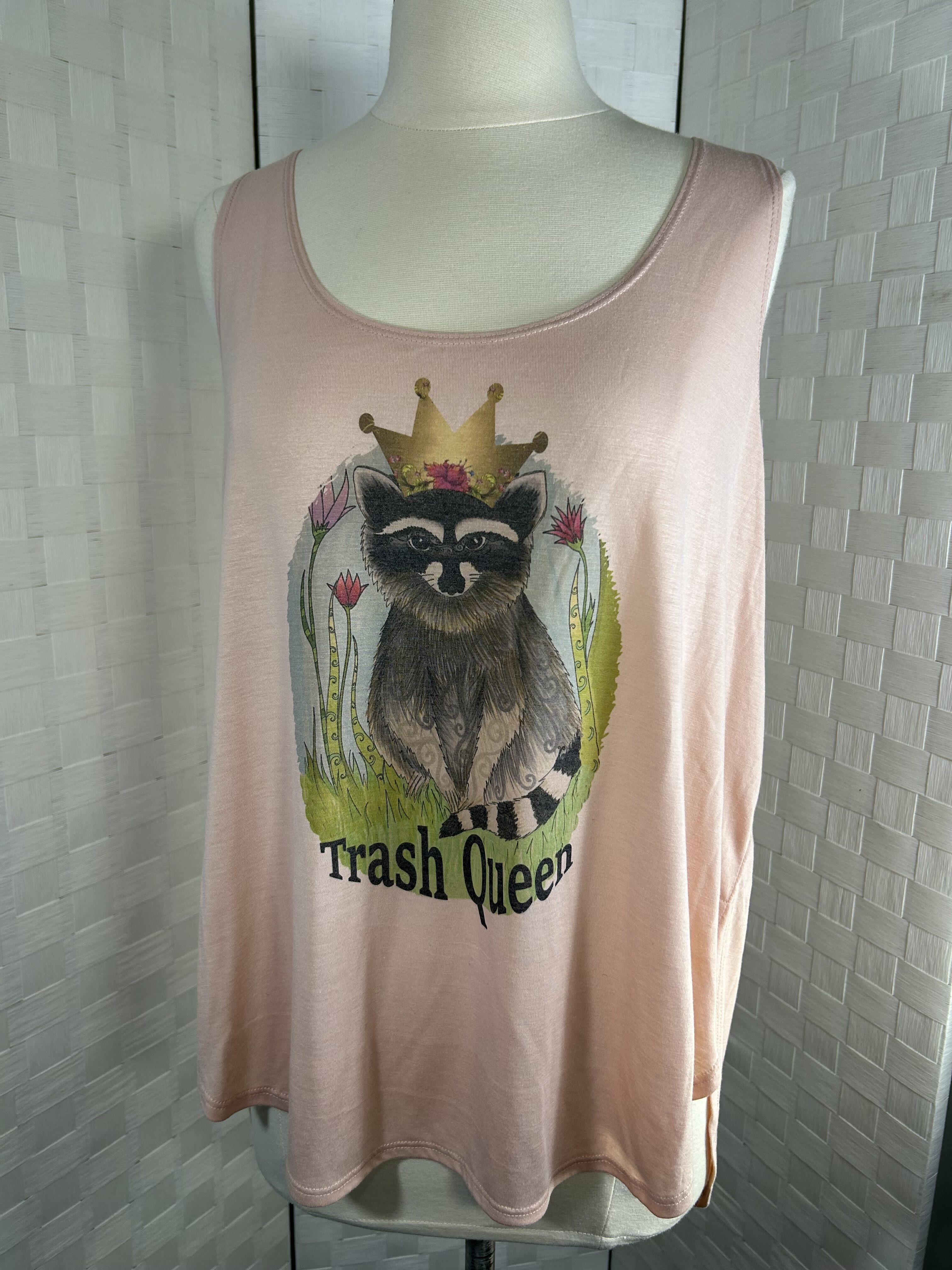Peach tank top with “Trash Queen” Raccoon print (XL)