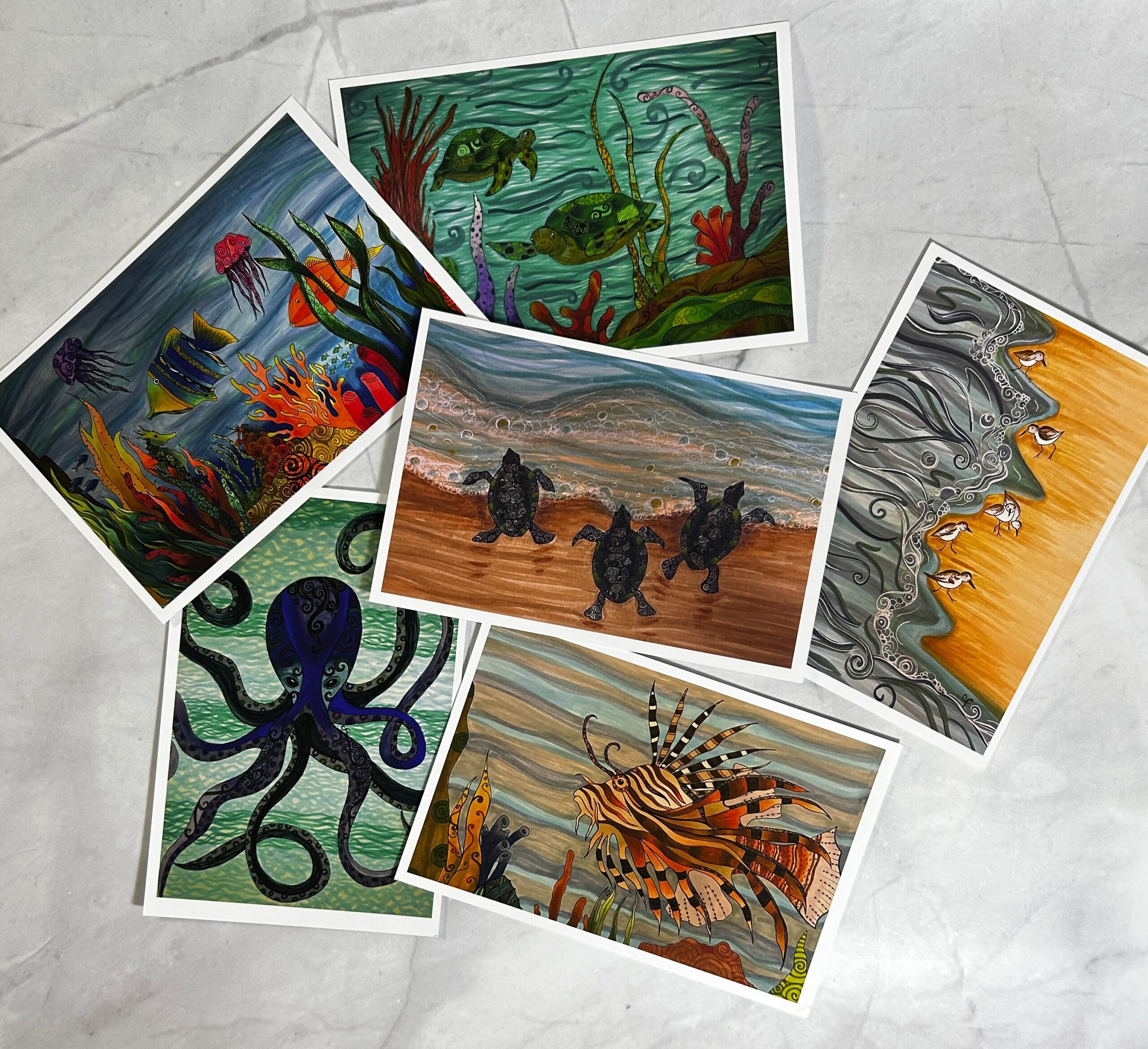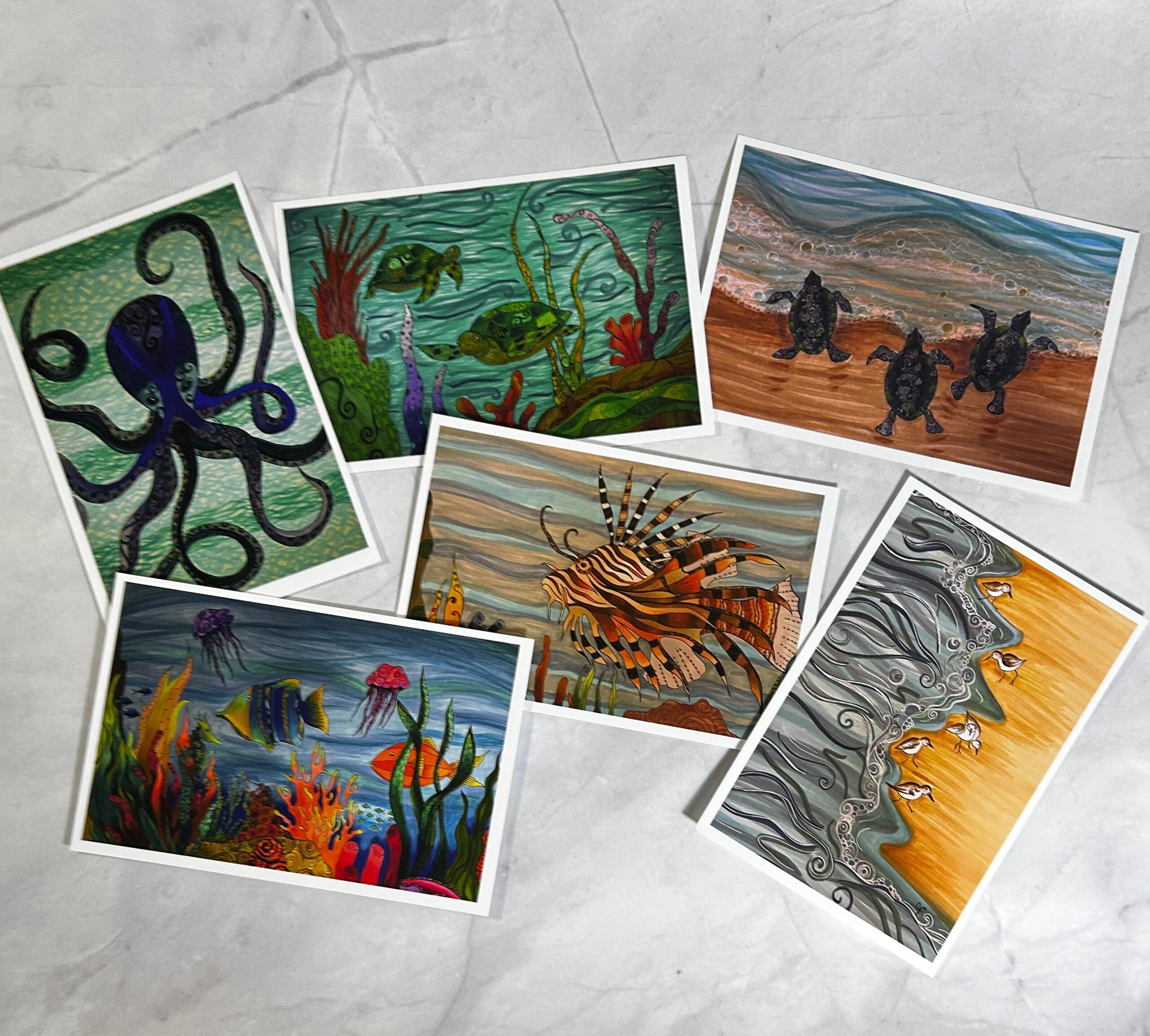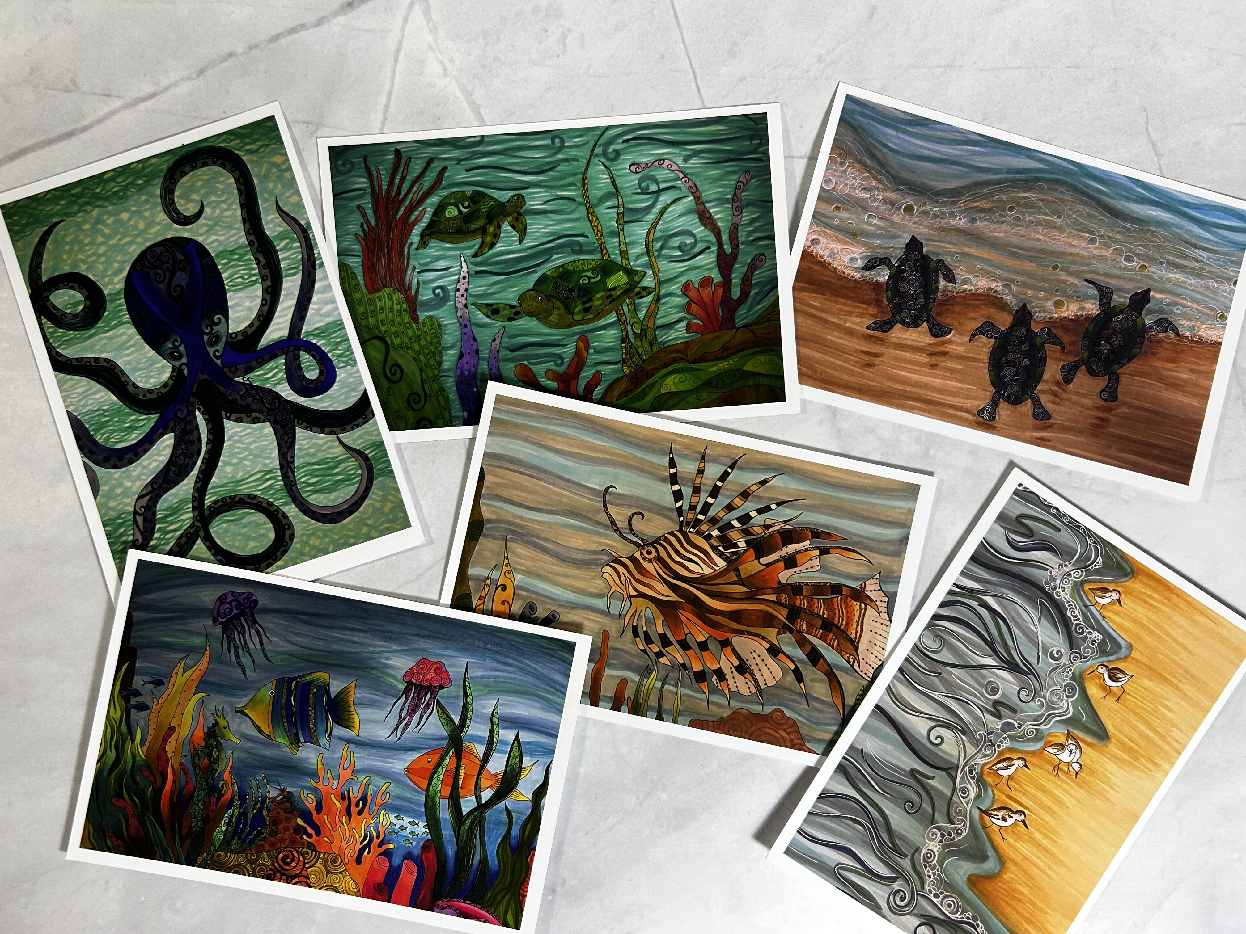 Set of 6 sea art post cards, 4’x6′ postcards these are printed on high quality matte art paper.