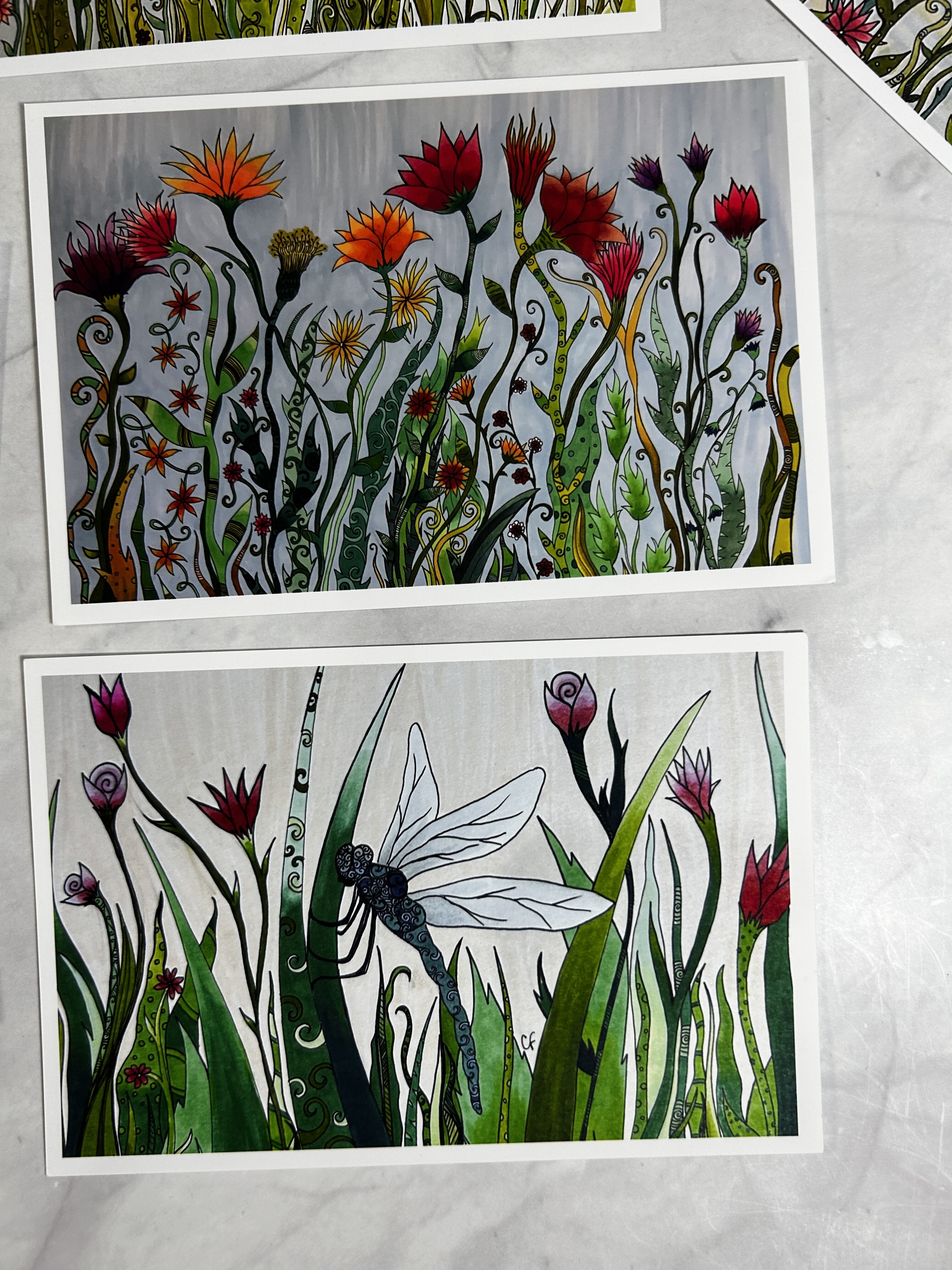 Set of (6) post cards with flowers/nature art prints