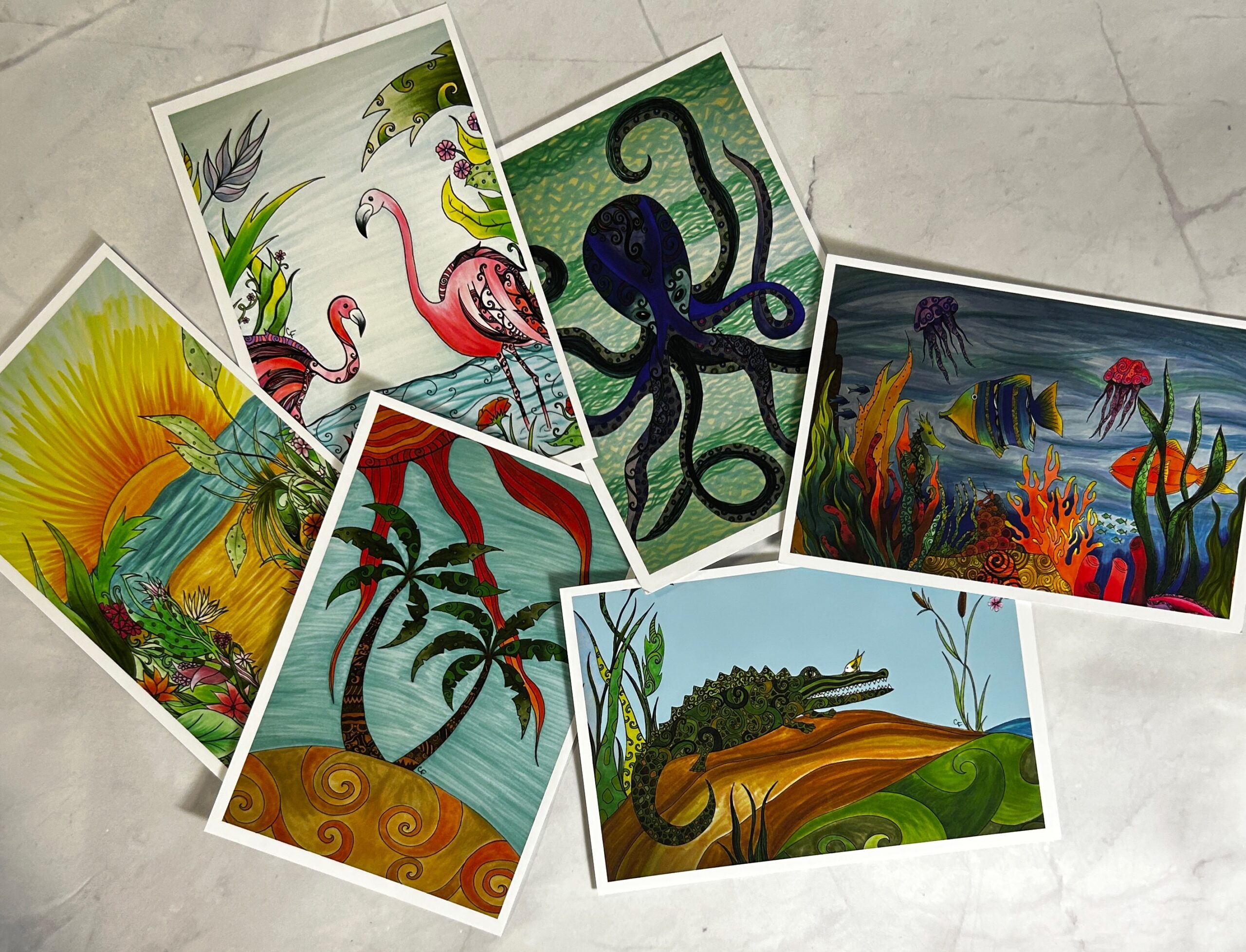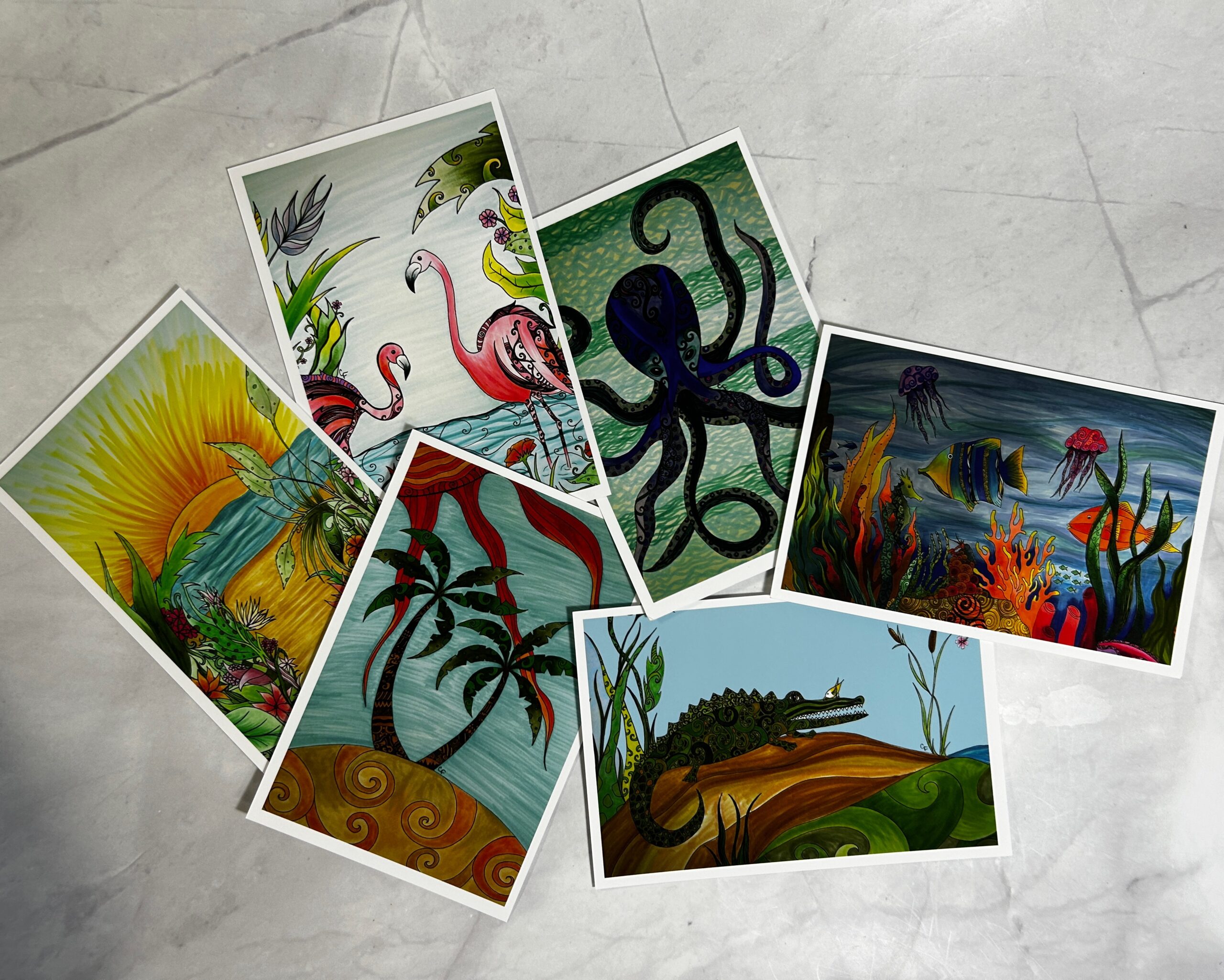 Set of 6 art print post cards, 4’x6′ postcards these are printed on high quality matte art paper.