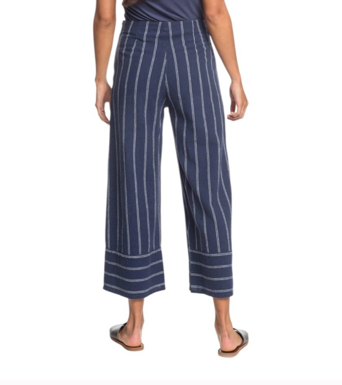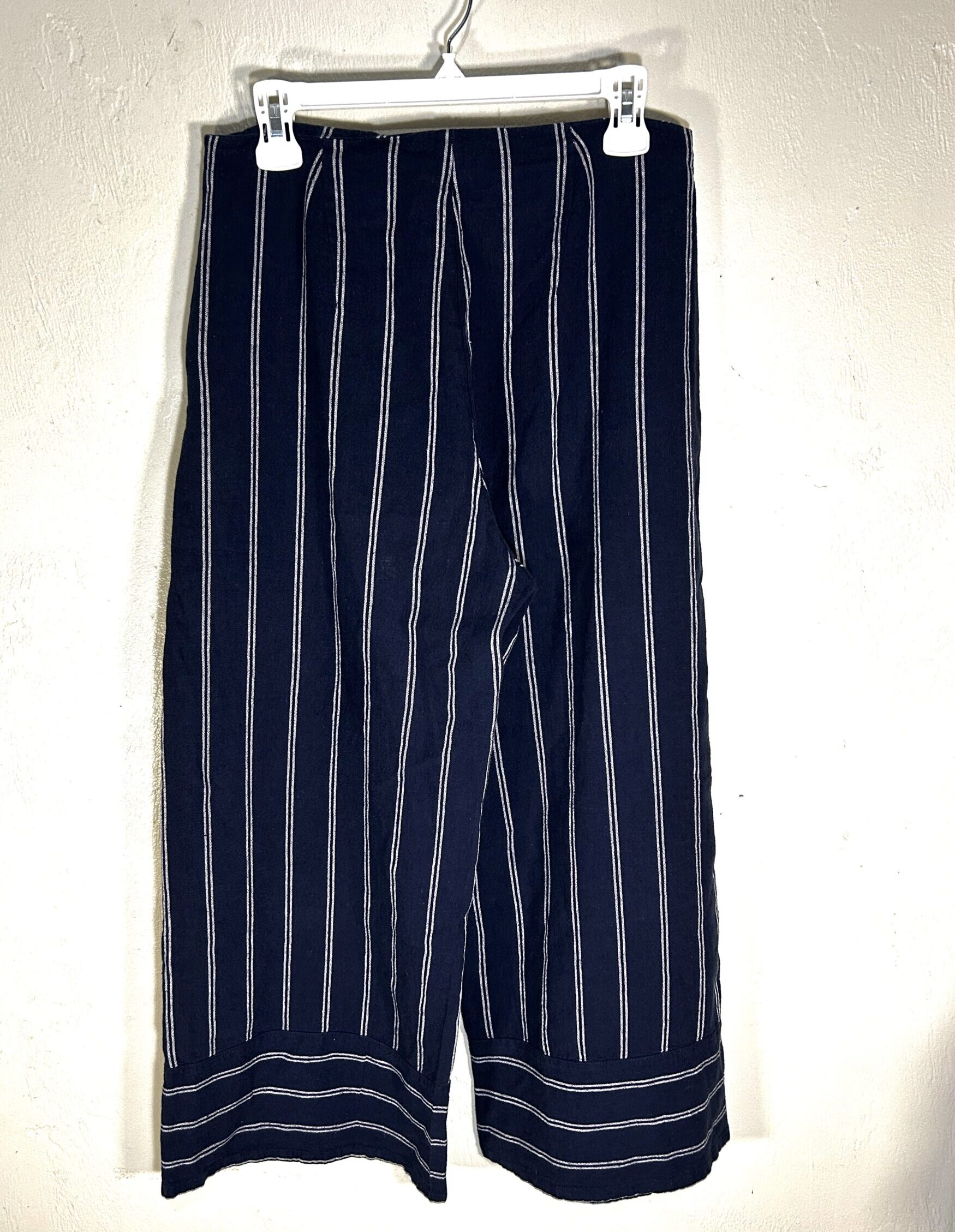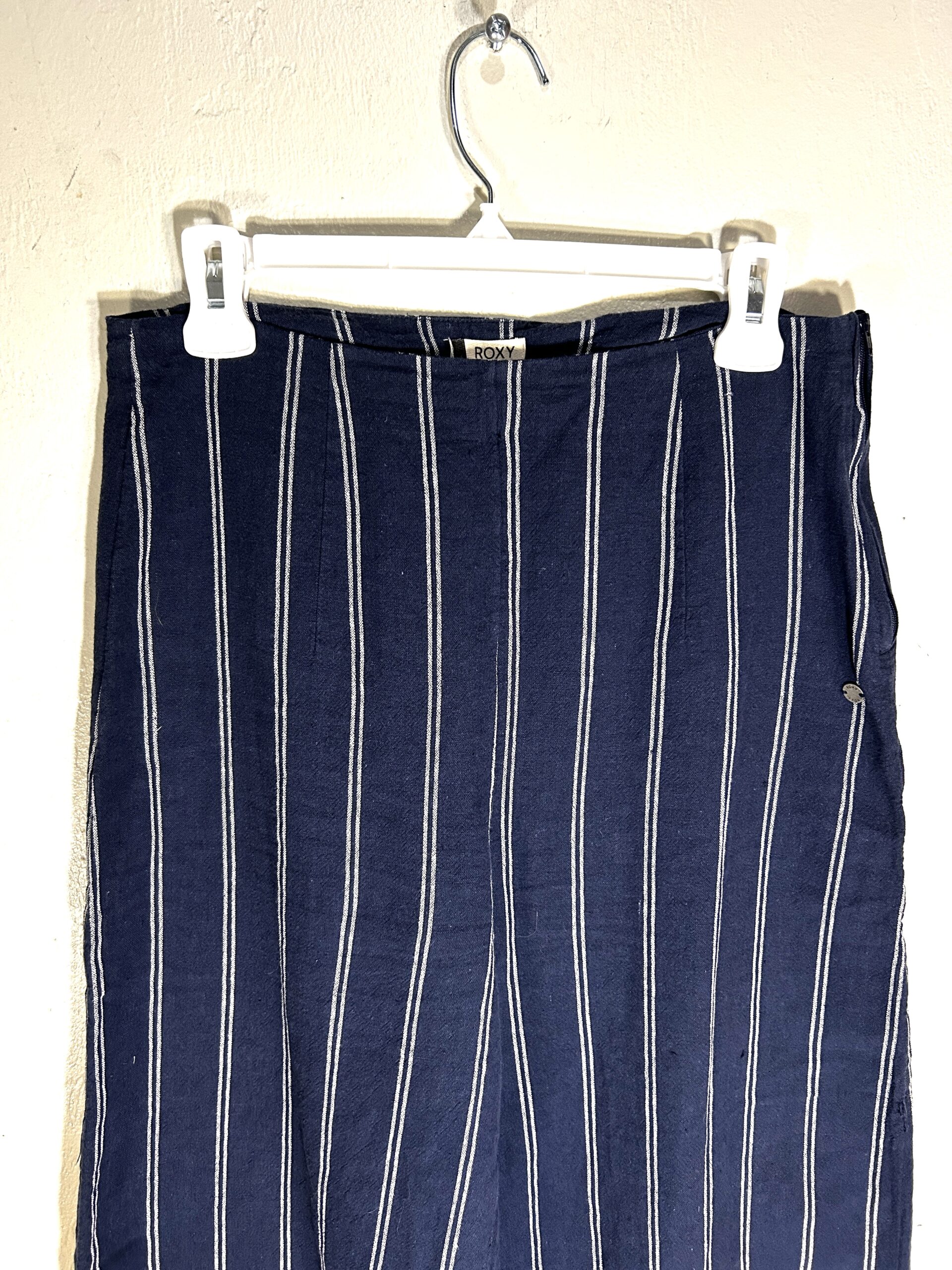 Roxy Blue White Striped High Waisted Wide Leg Linen Blend Pants Women’s Size size M