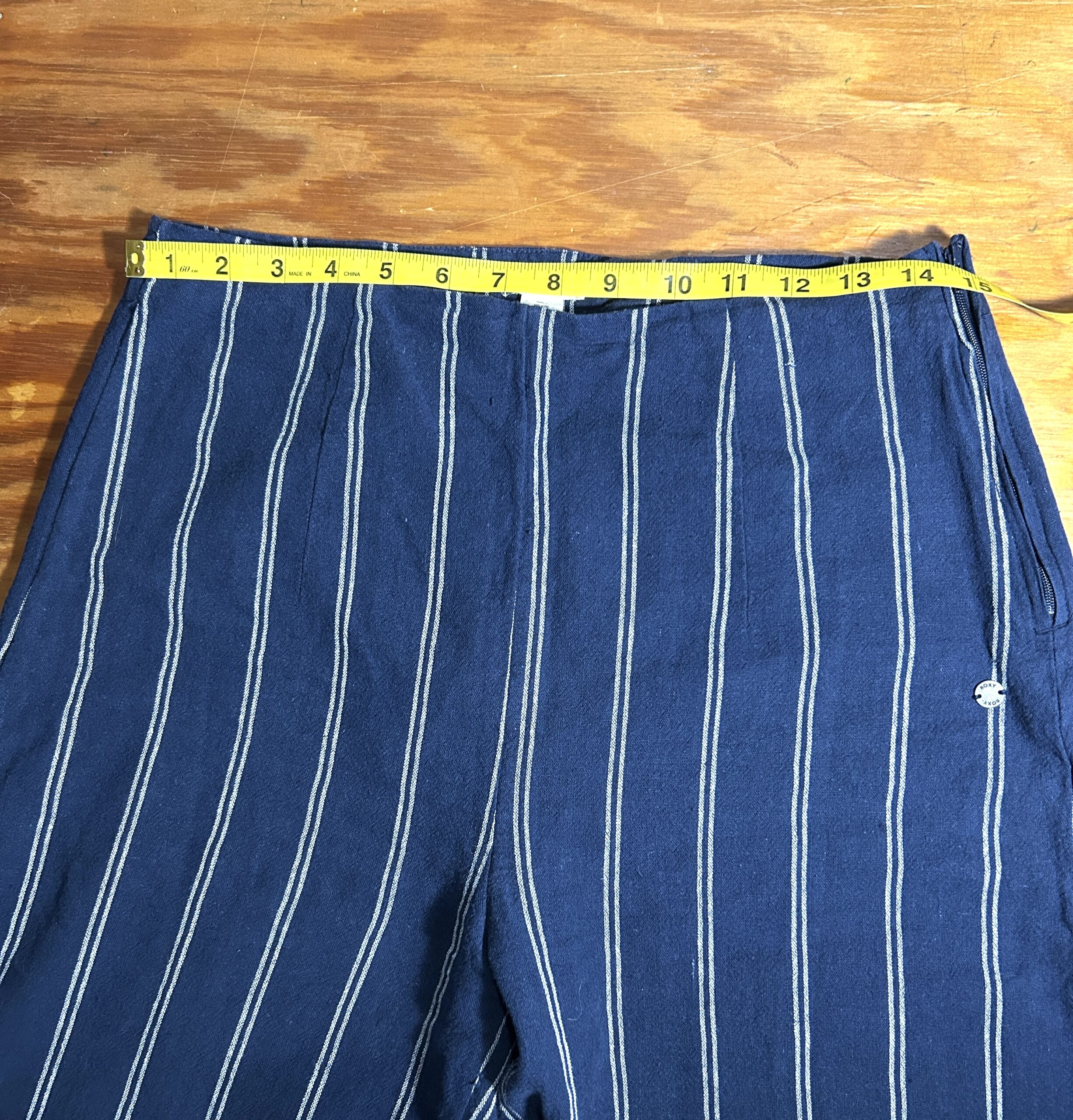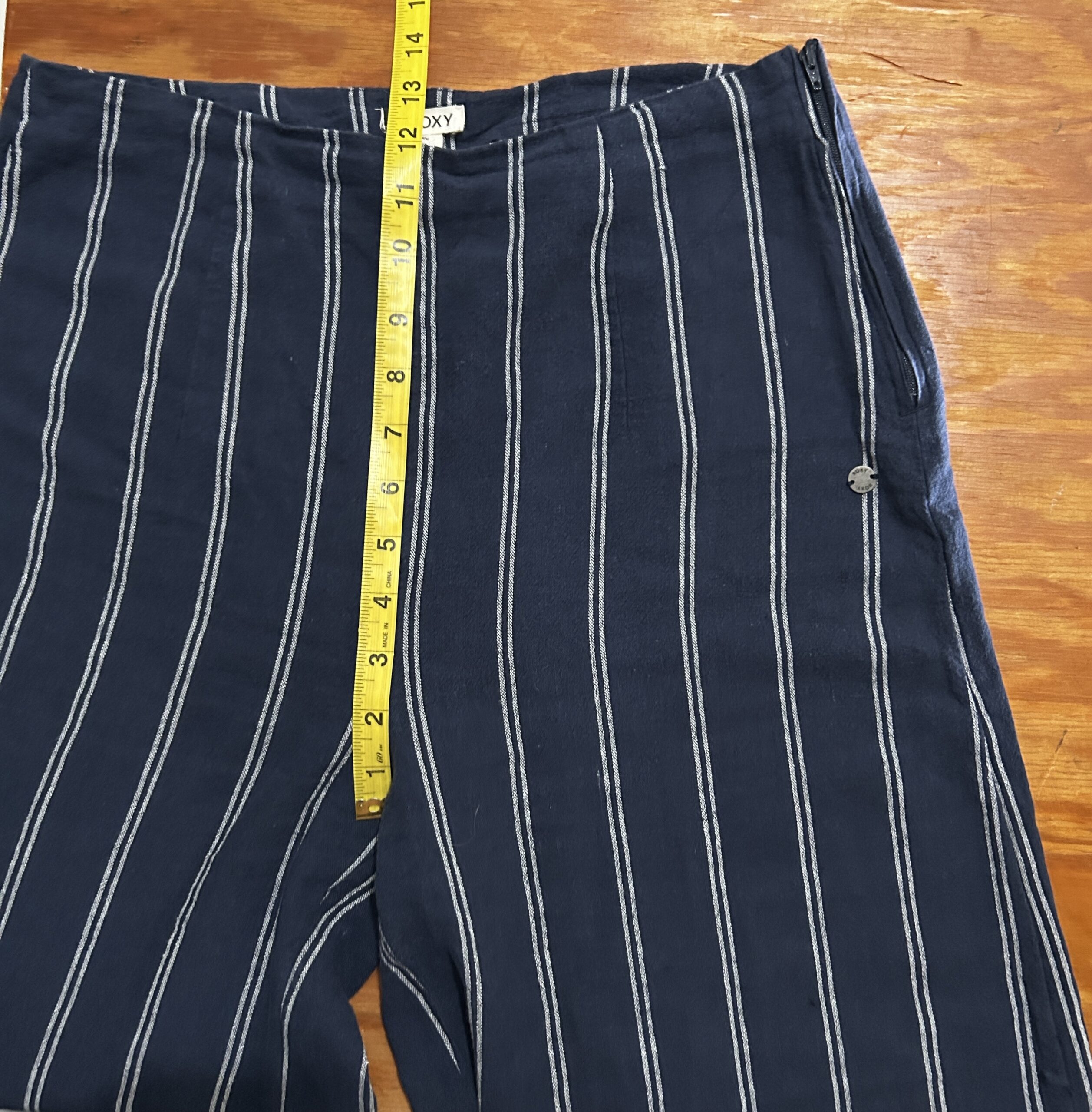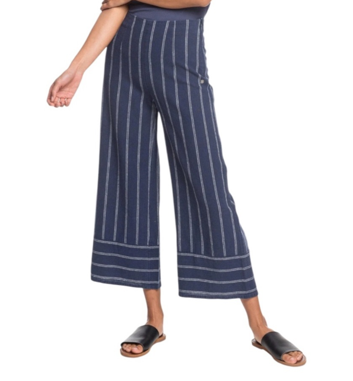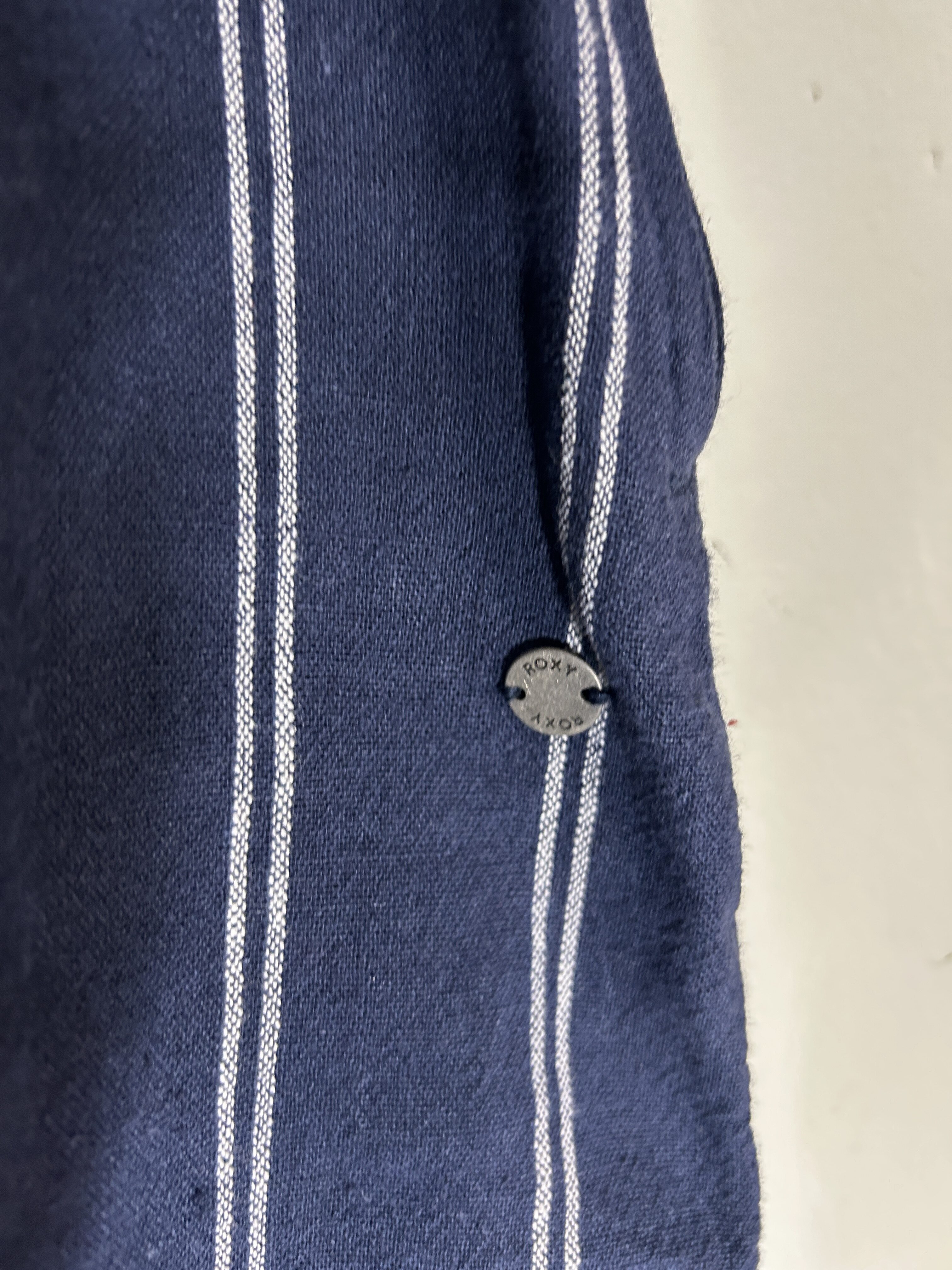 Roxy Blue White Striped High Waisted Wide Leg Linen Blend Pants Women’s Size size M