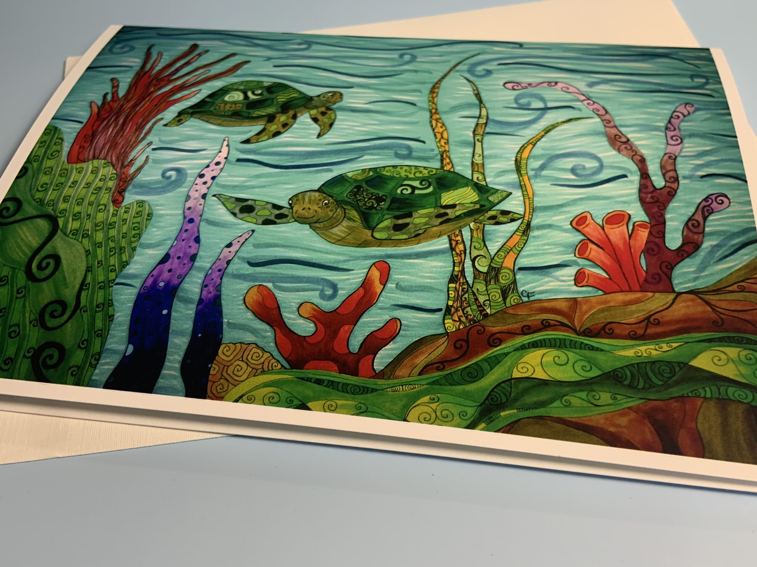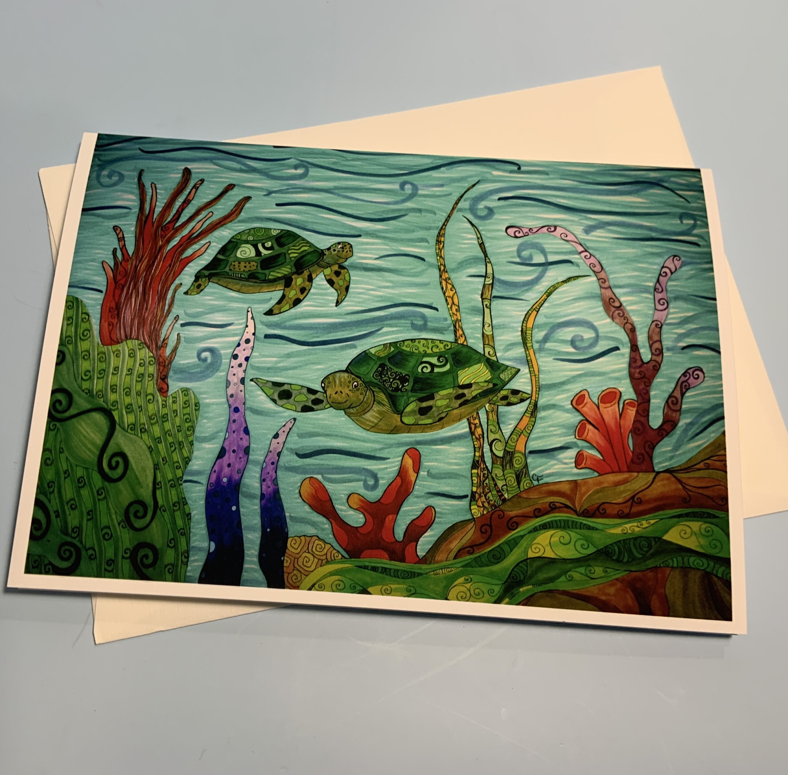 Sea Life Greeting card with Sea Turtles and coral 5″x7″