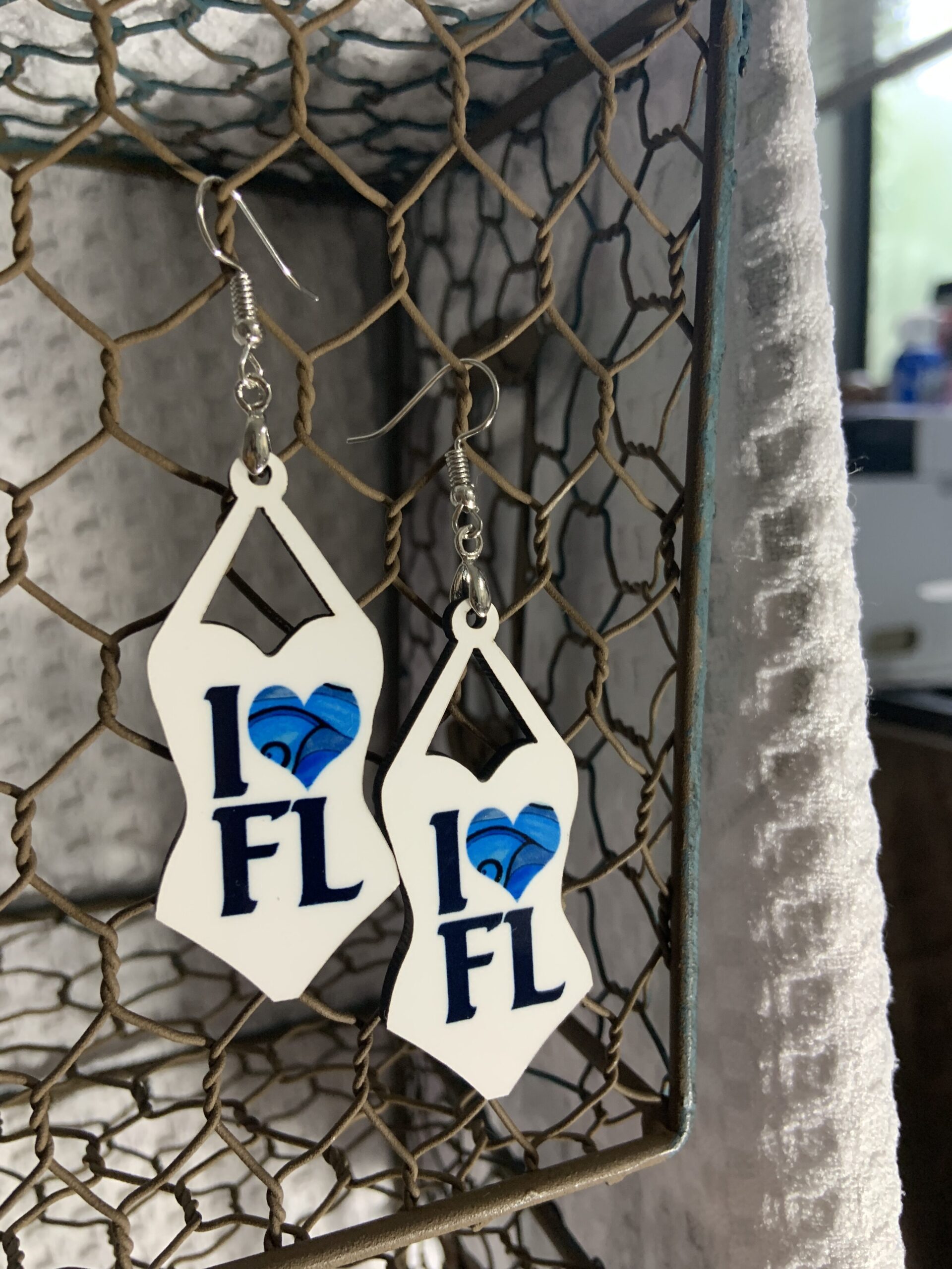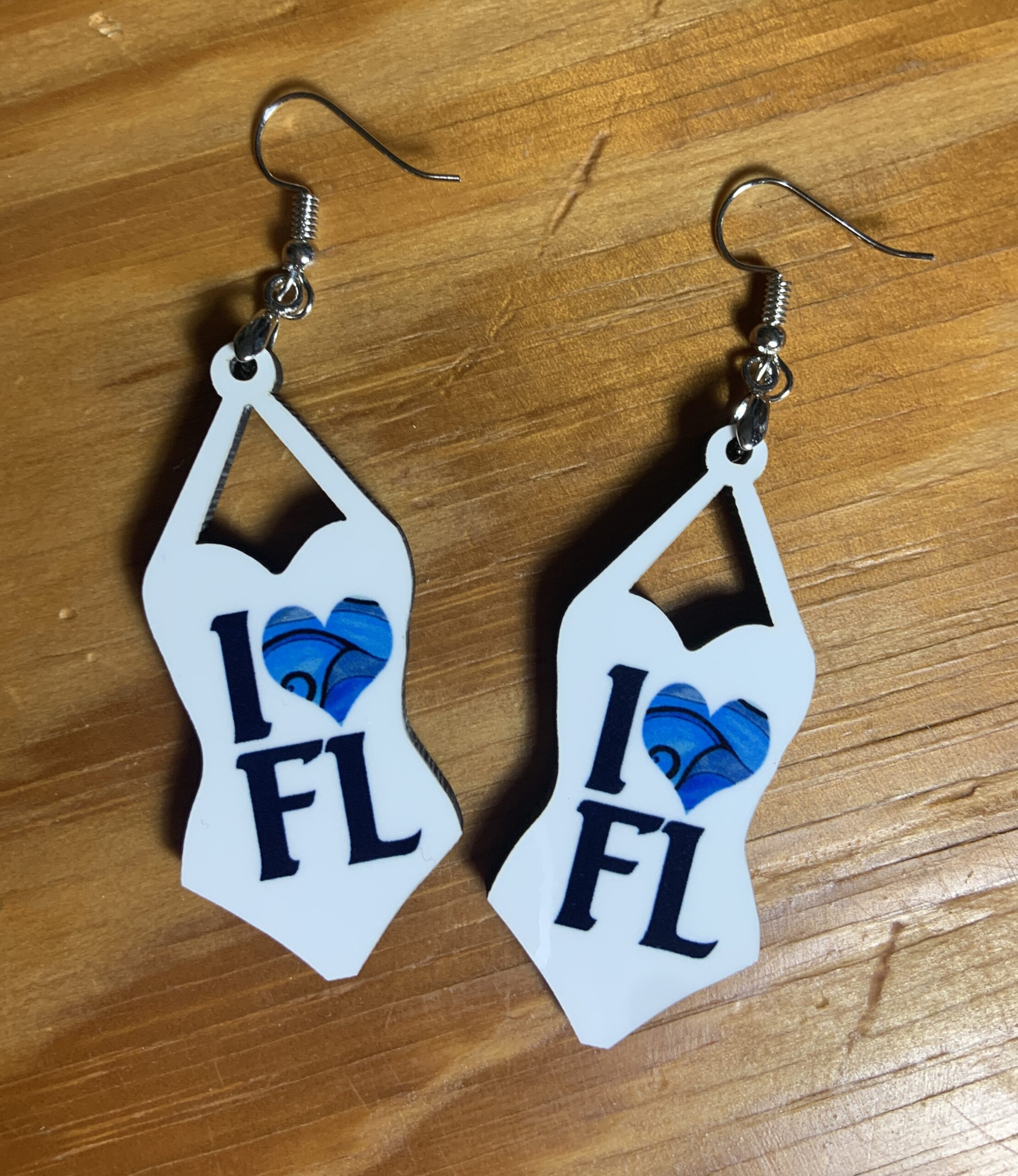 Swimsuit earrings-I heart FL. Silver hardware