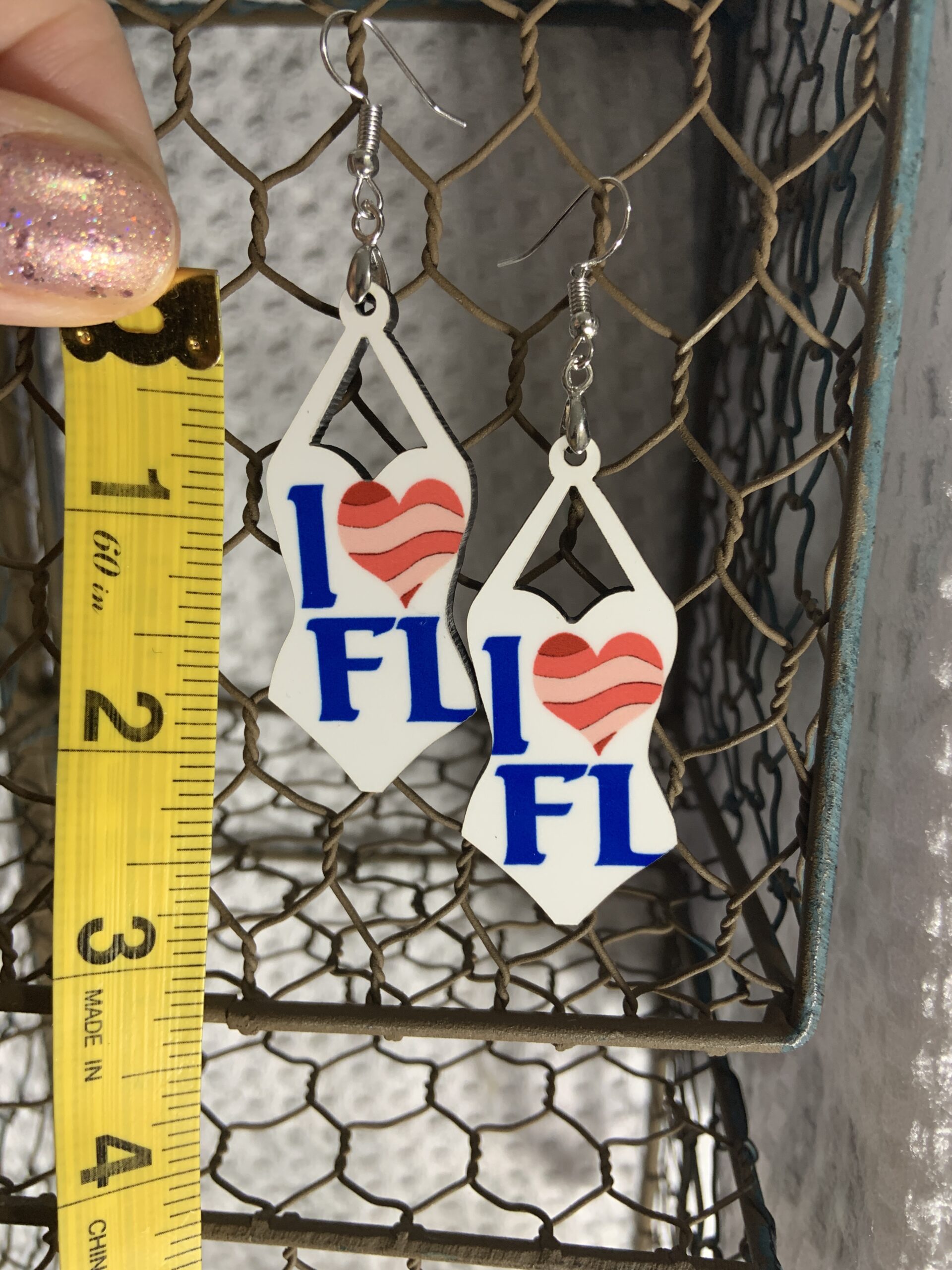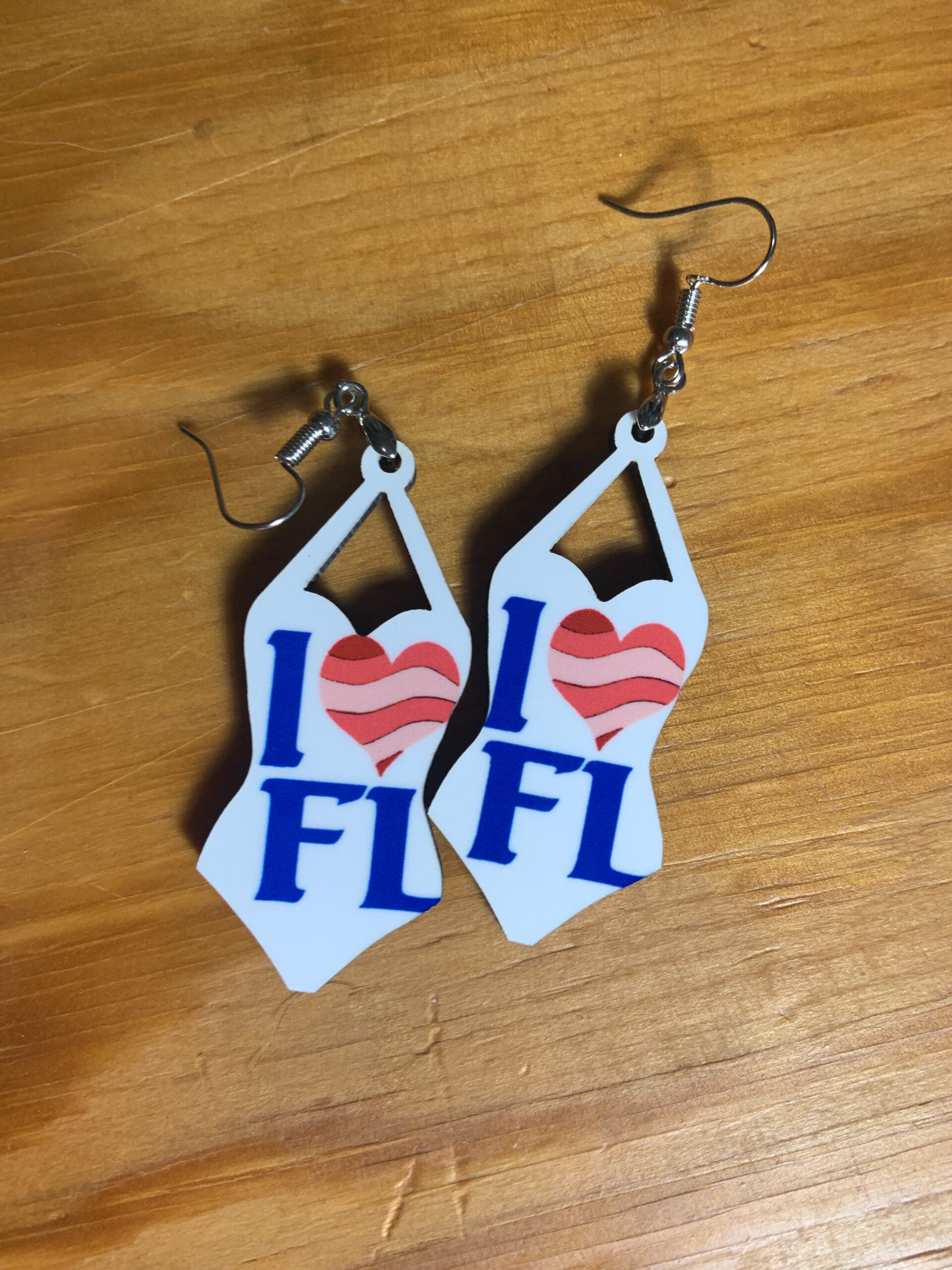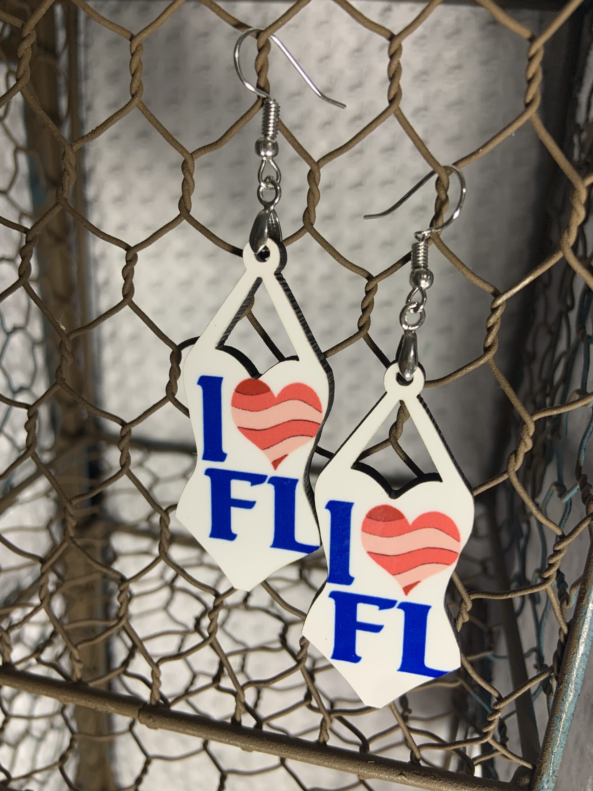 Swimsuit earrings-I heart FL. Silver hardware