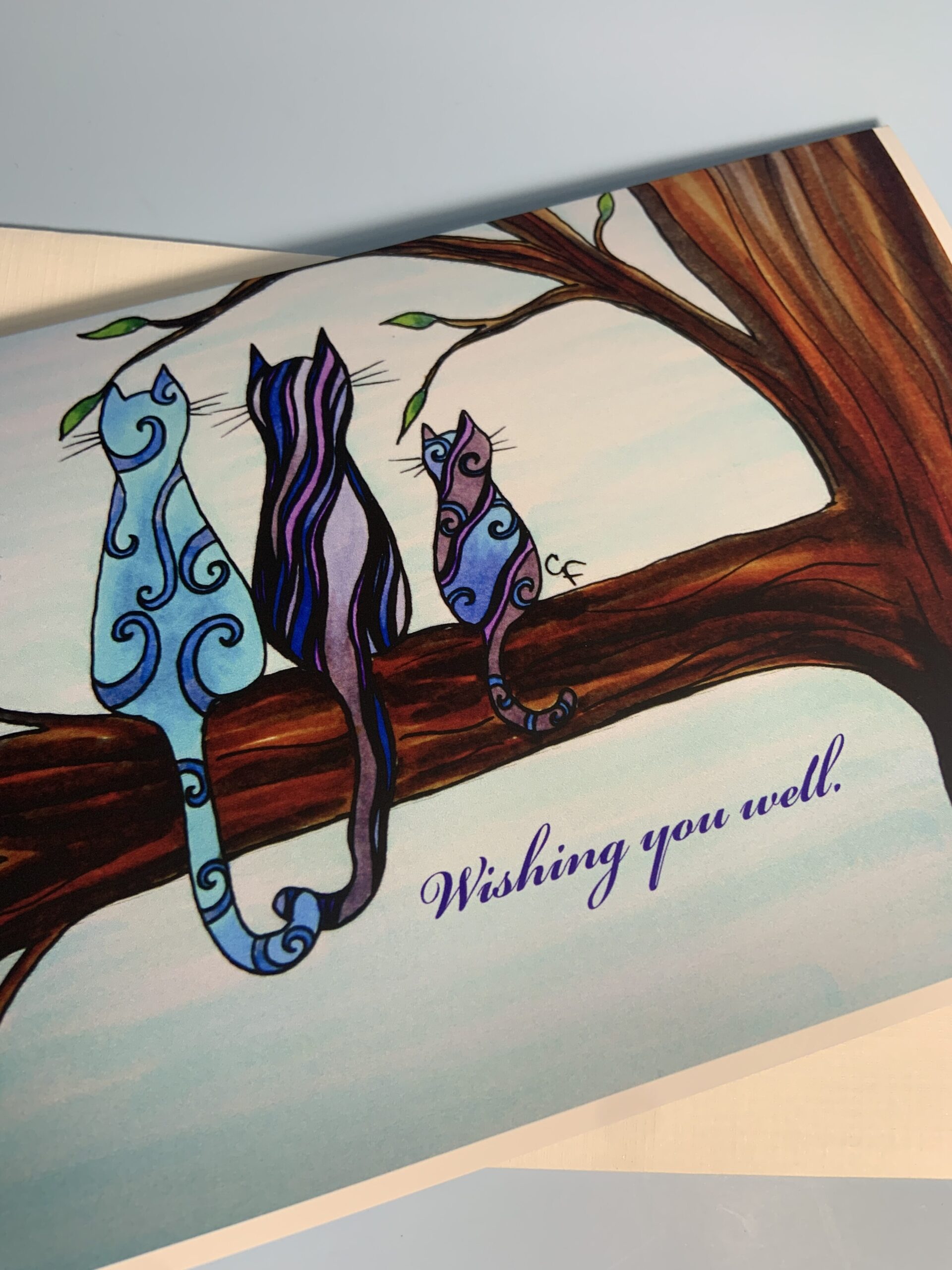 “Wishing you well” Greeting card with cats 5″x7″