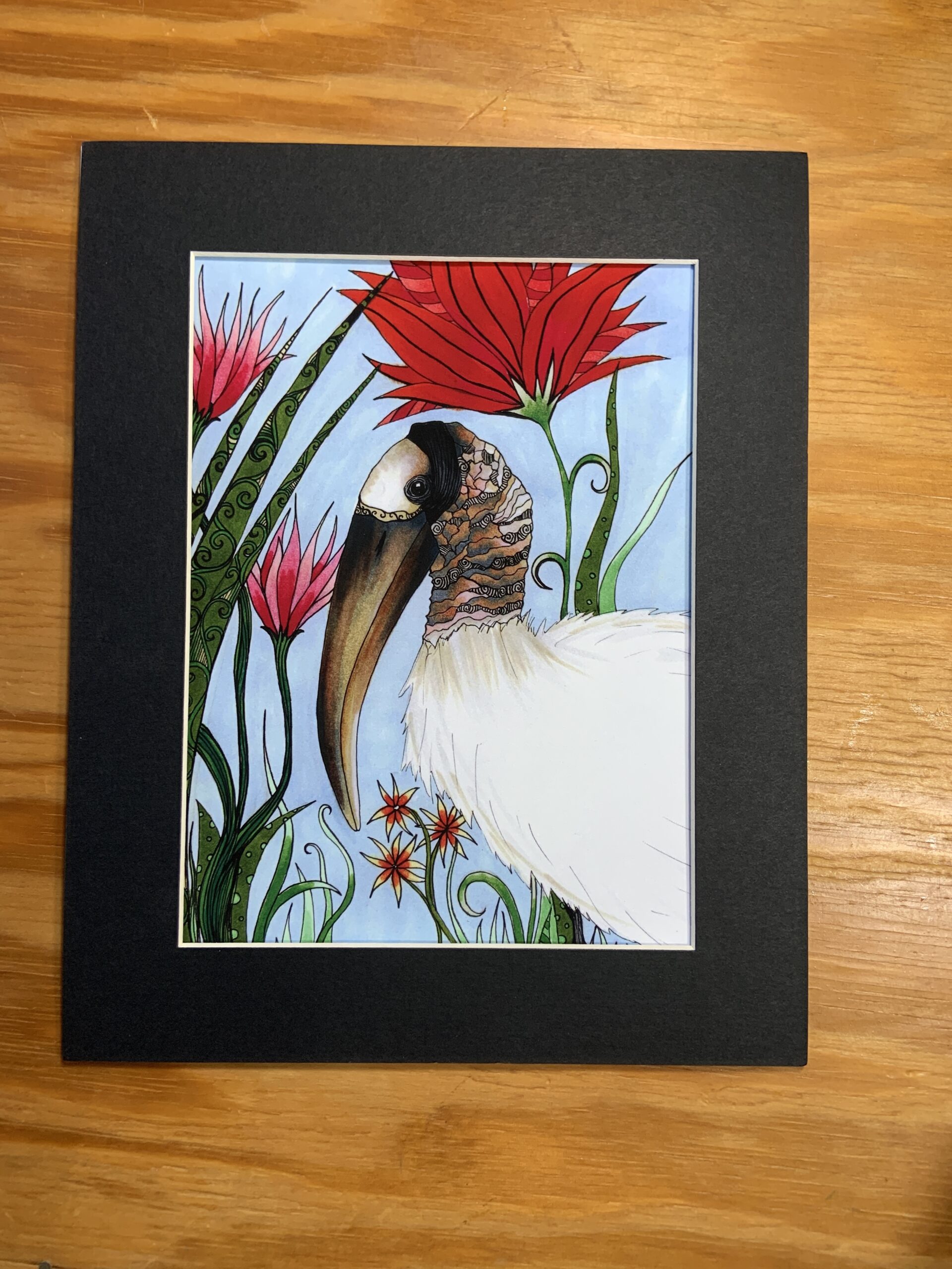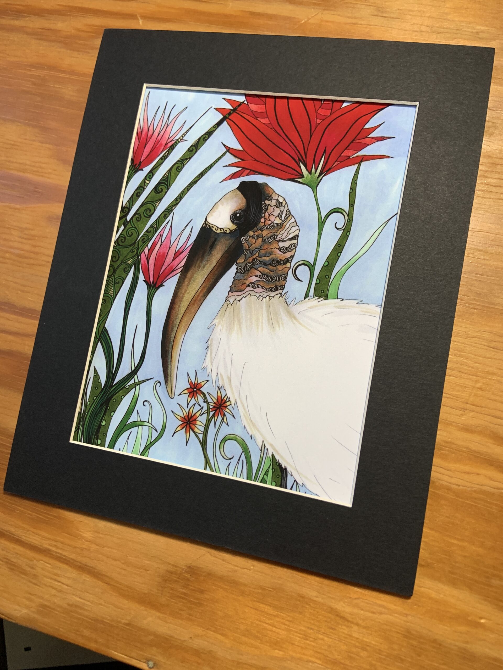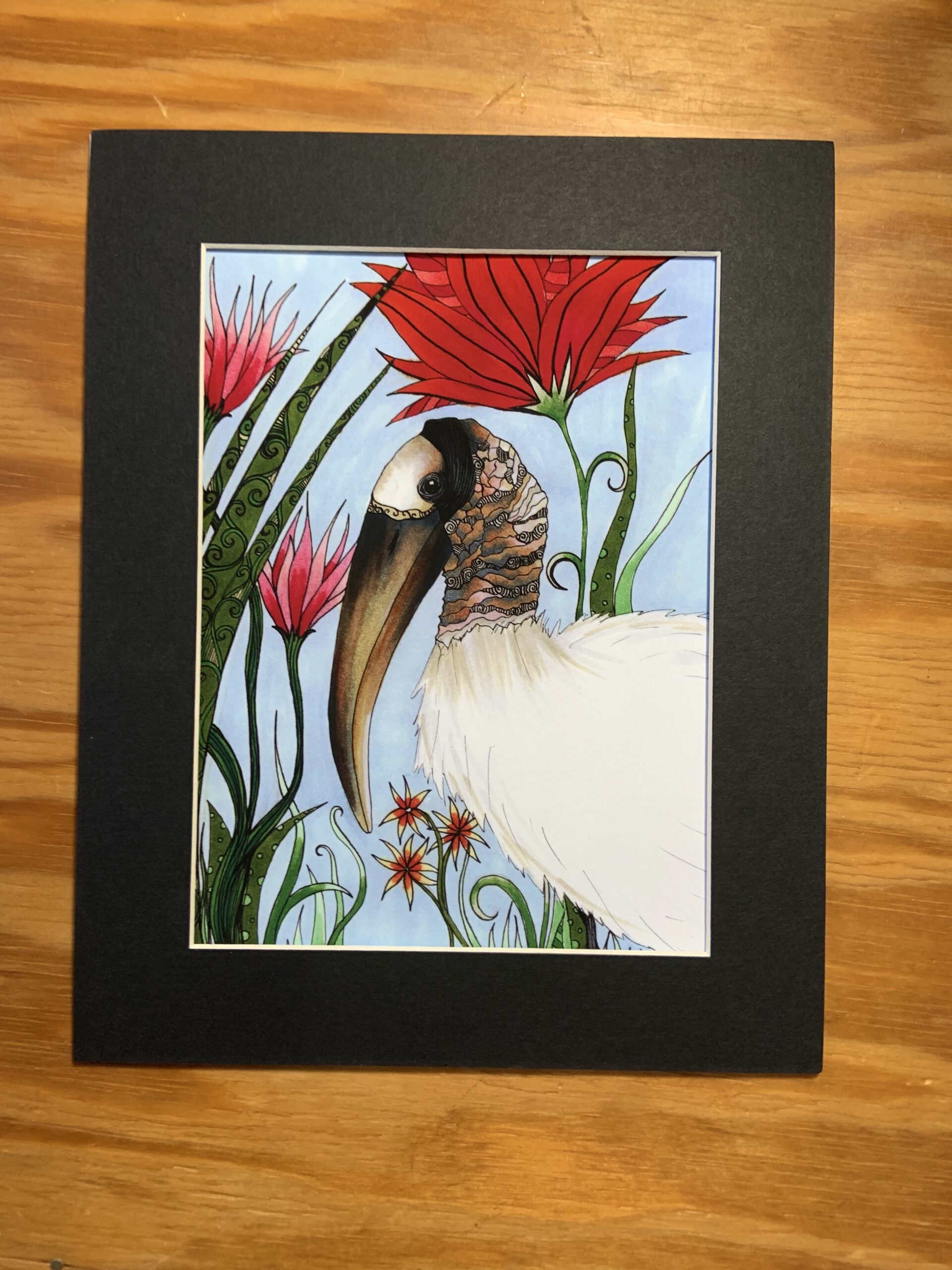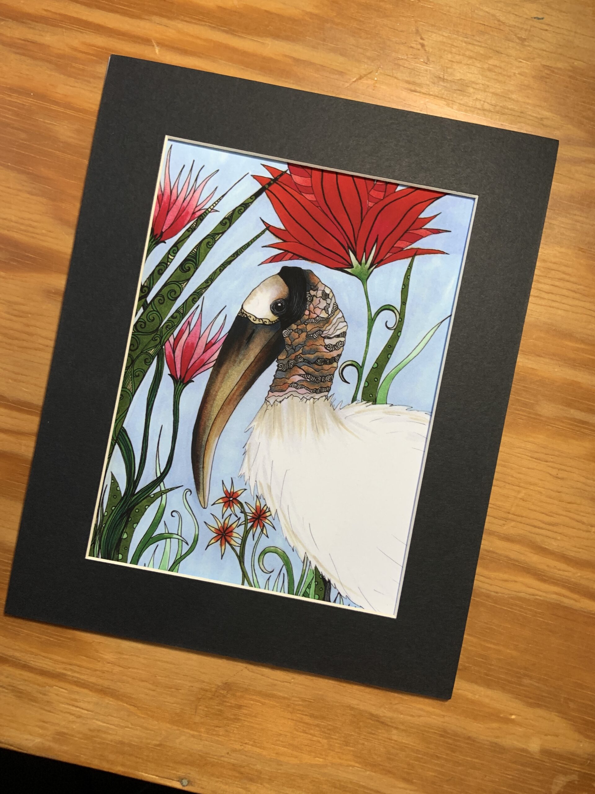 Wood Stork Art Print, 6×8 artwork matted to 8×10